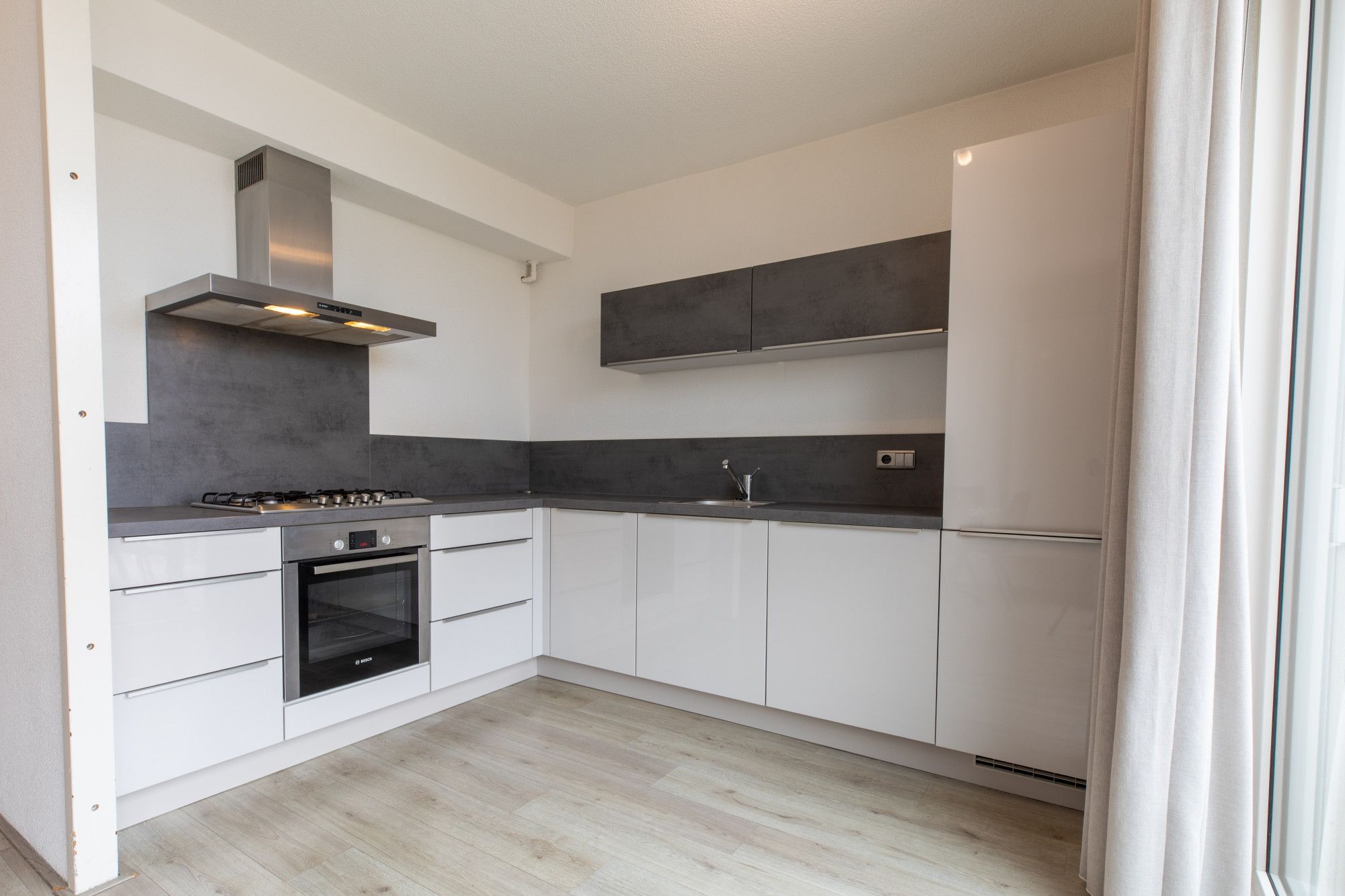 Half open keuken (3.15 x 2.48 m) met keurige keukeninrichting en apparatuur te weten: 5 pits gaskookplaat, afzuigkap, koelkast, vriezer en vaatwasser.