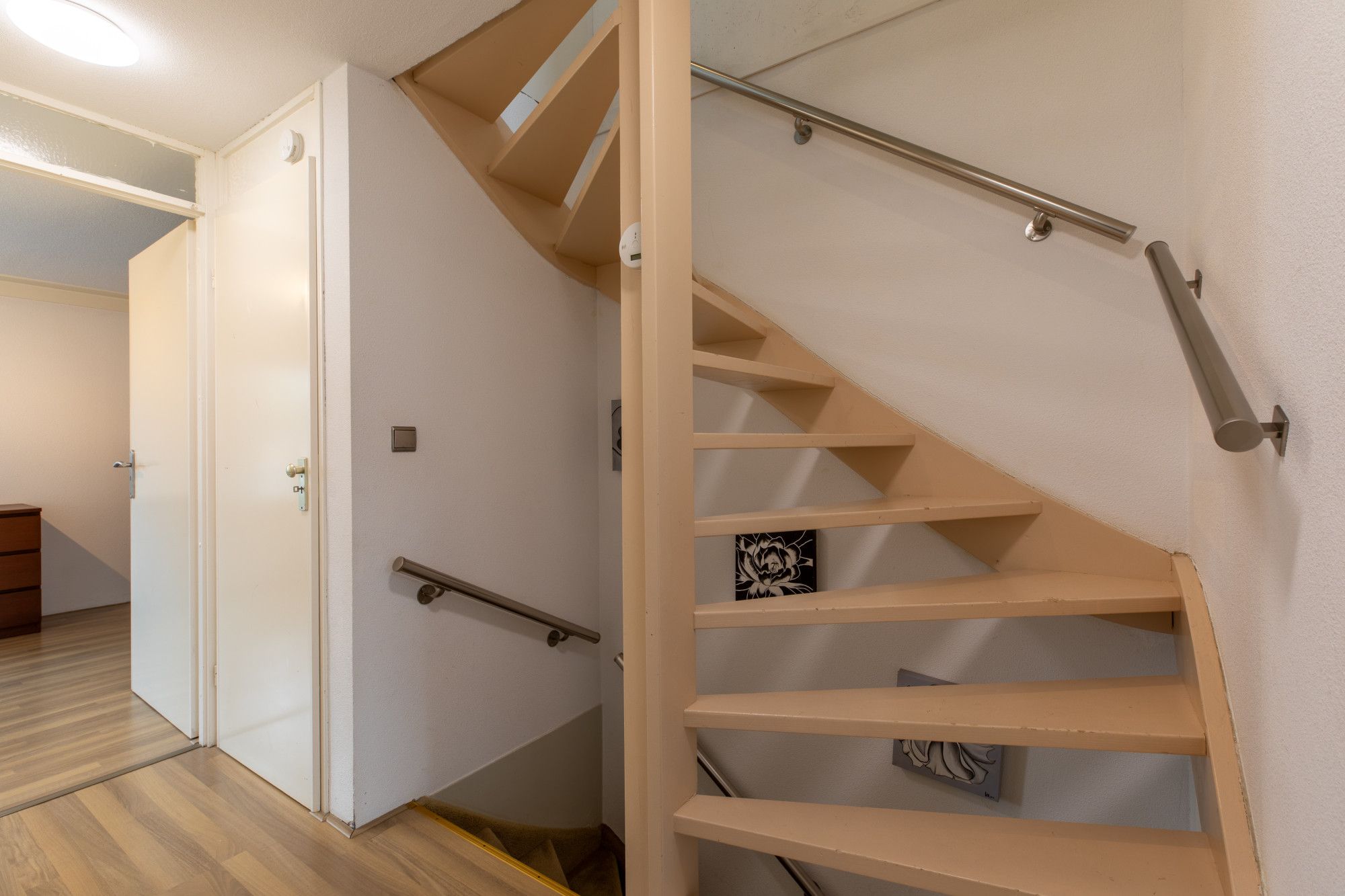 Middels vaste trap te bereiken tweede verdieping met laminaatvloer.