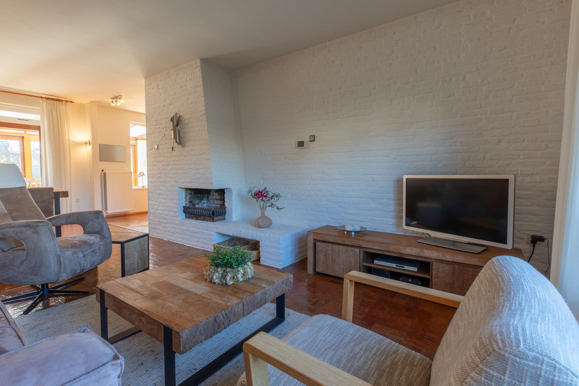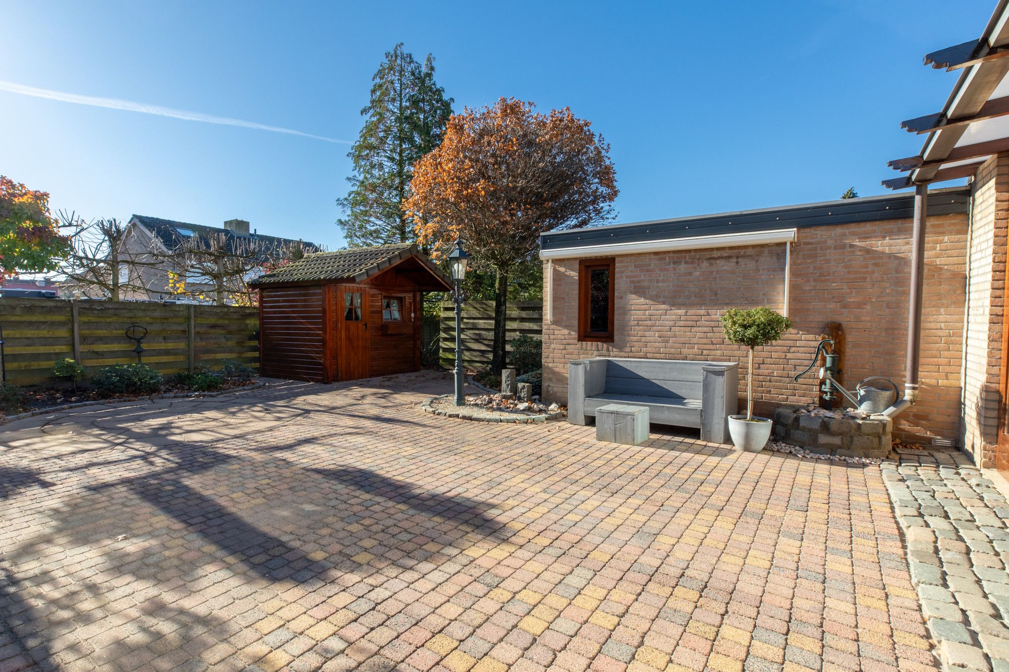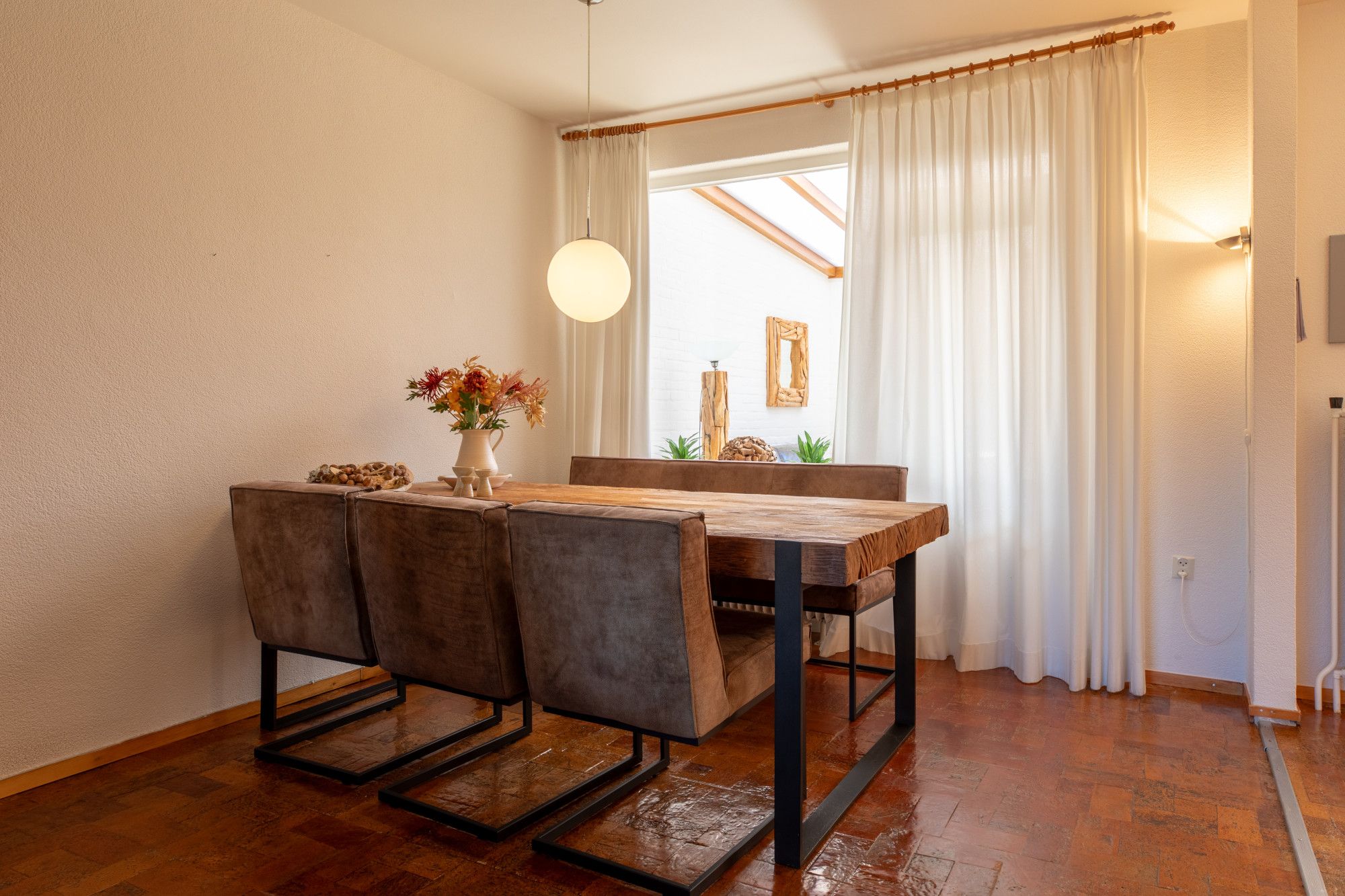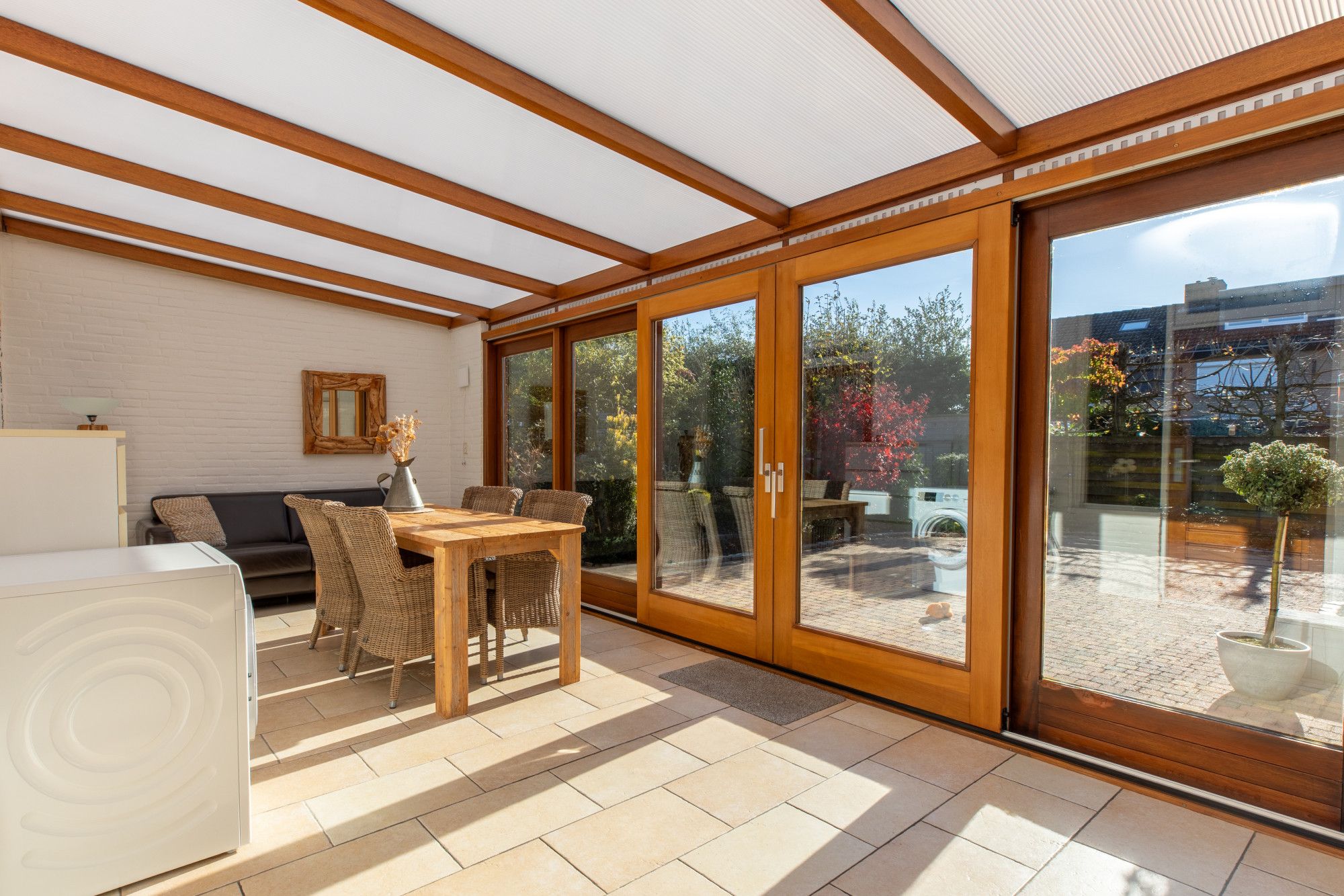 Doorzonwoonkamer met schouwpartij. Halfopen keuken ruimte voorzien van een keukeninstallatie met diverse inbouwapparatuur. Vanuit de keuken is er een toegangsdeur naar de riante serre. De serre heeft een doorloop naar de garage, de oprit en middels een schuifpui naar de achtertuin. De achtertuin is op het zuiden gesitueerd en is voorzien van terras, borderbeplantingen, enkele bomen en een groot tuinhuis. Naast de woning is de oprit met toegang naar de garage.