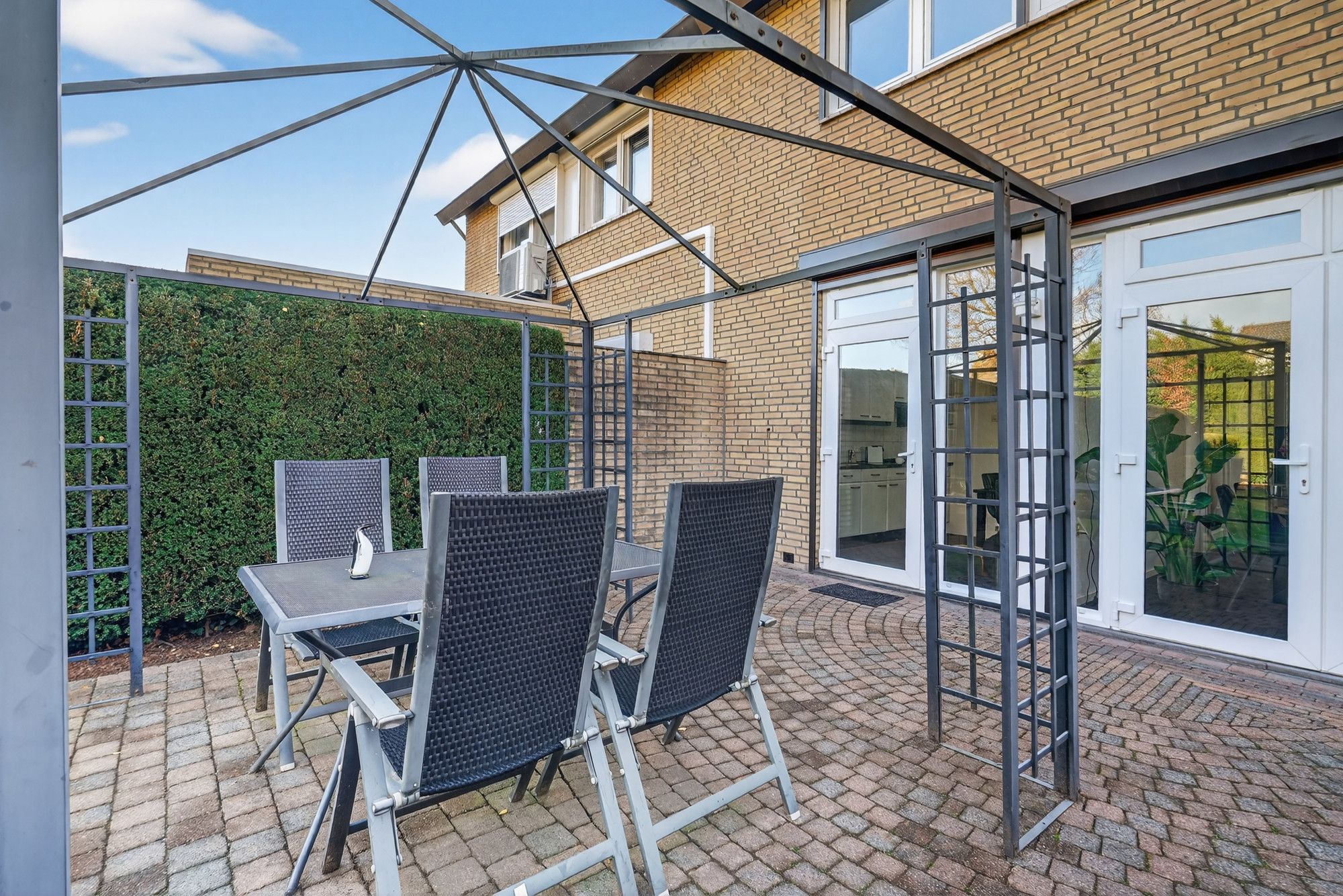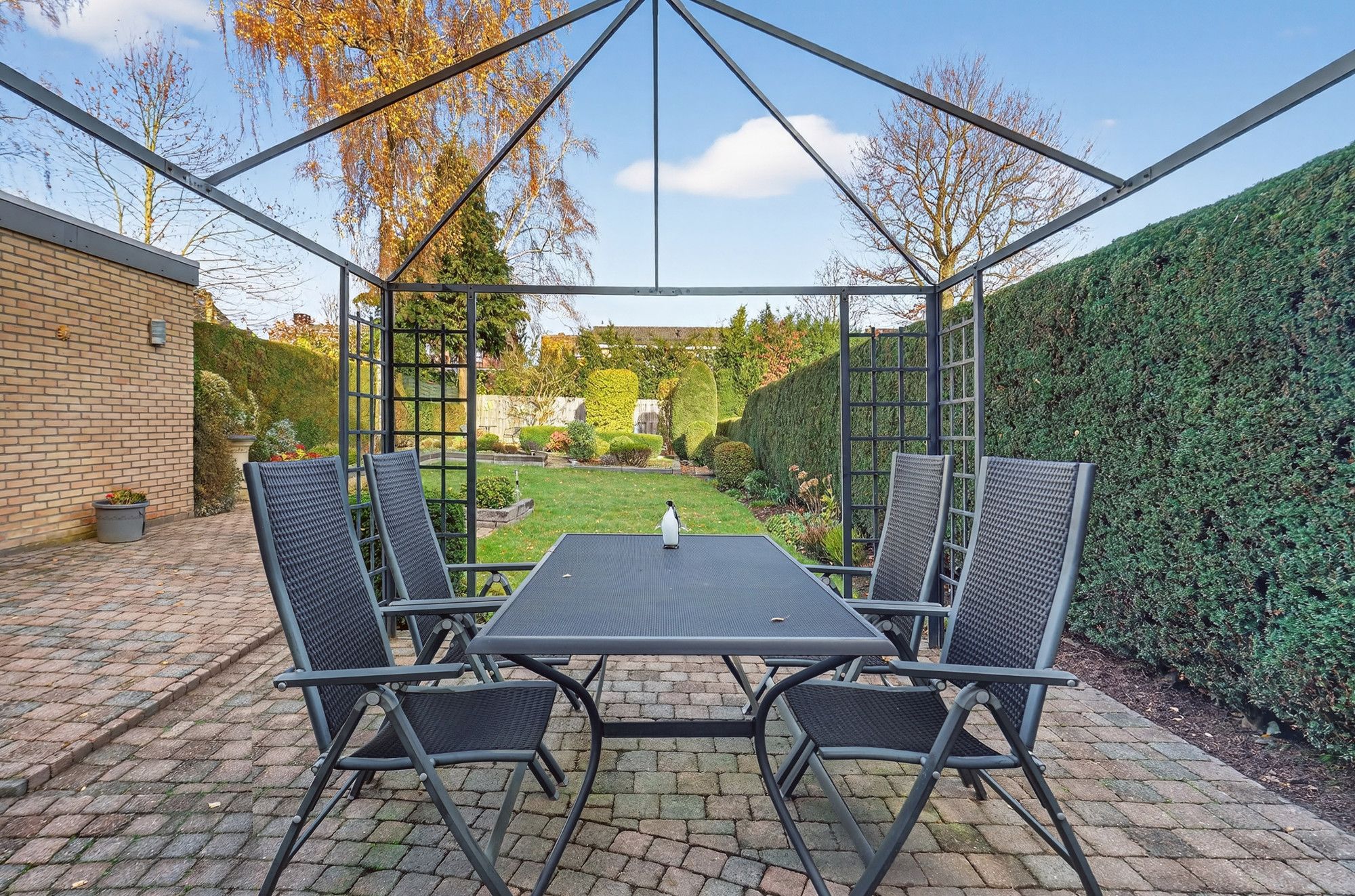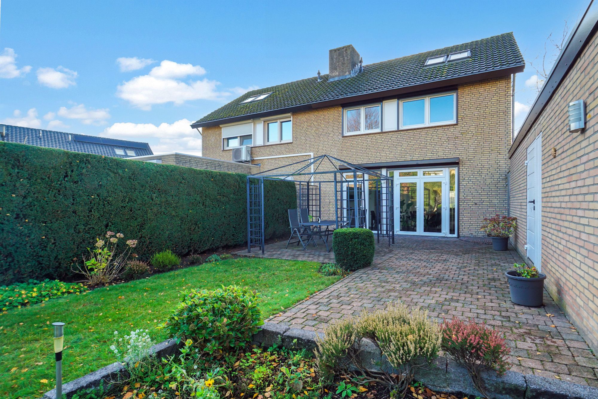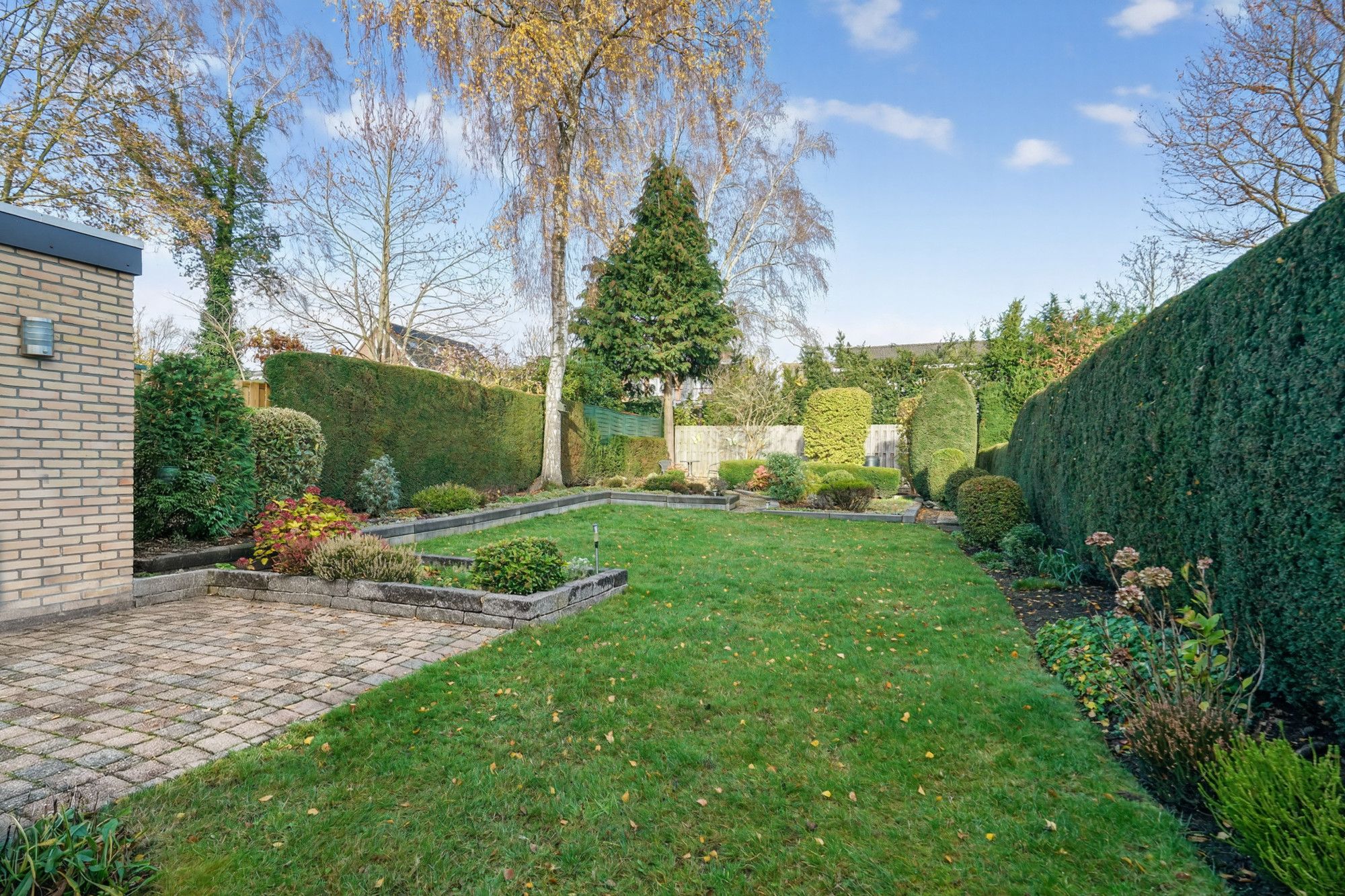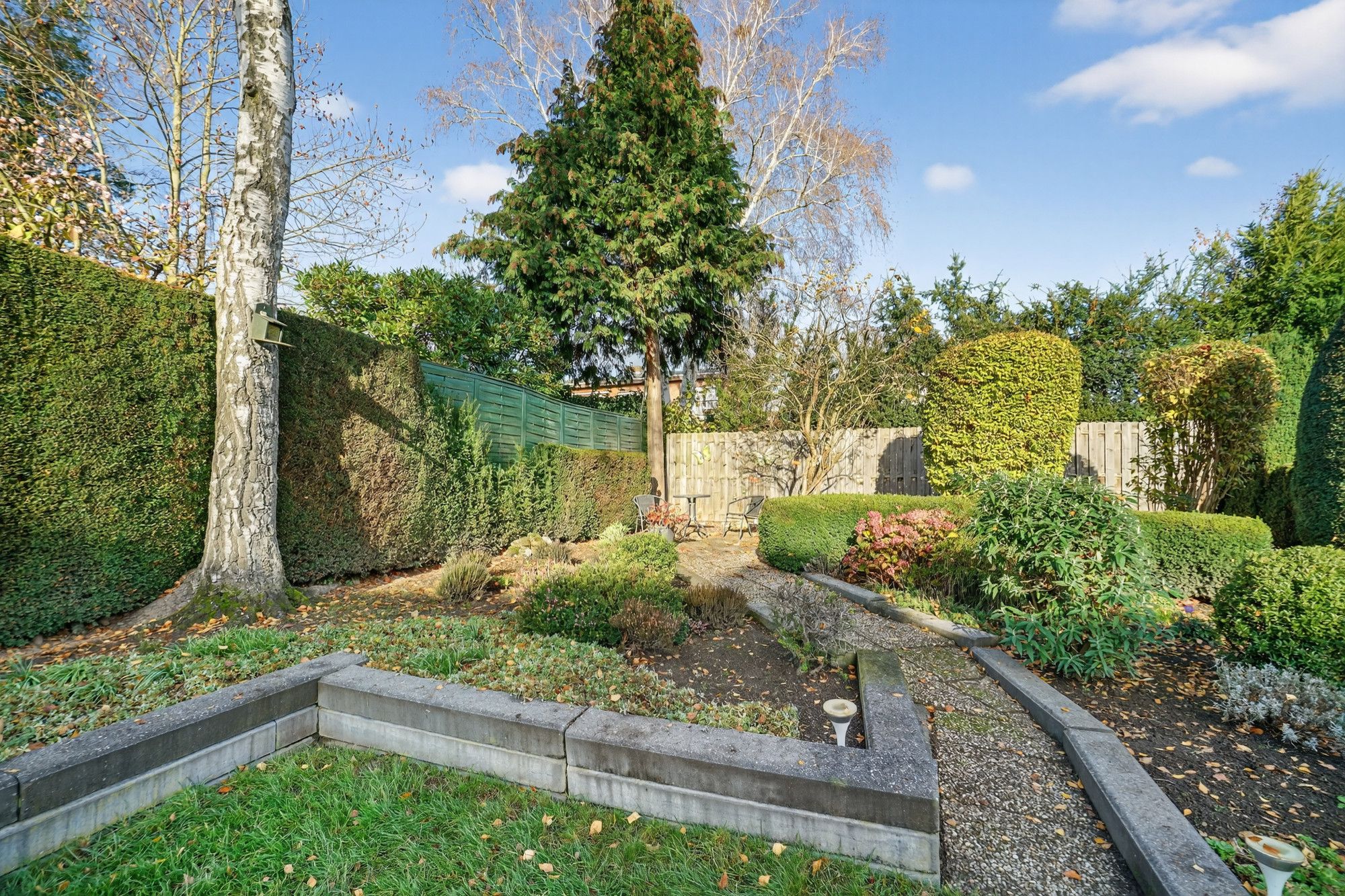 De royale achtertuin is een fijne mix van bestrating en groen. Het terras biedt een heerlijke plek om te zitten, omringd door een groene heg die veel privacy biedt. Via de tuin is tevens de garage bereikbaar. De voortuin is netjes aangelegd met bestrating en diverse struiken en beplanting.