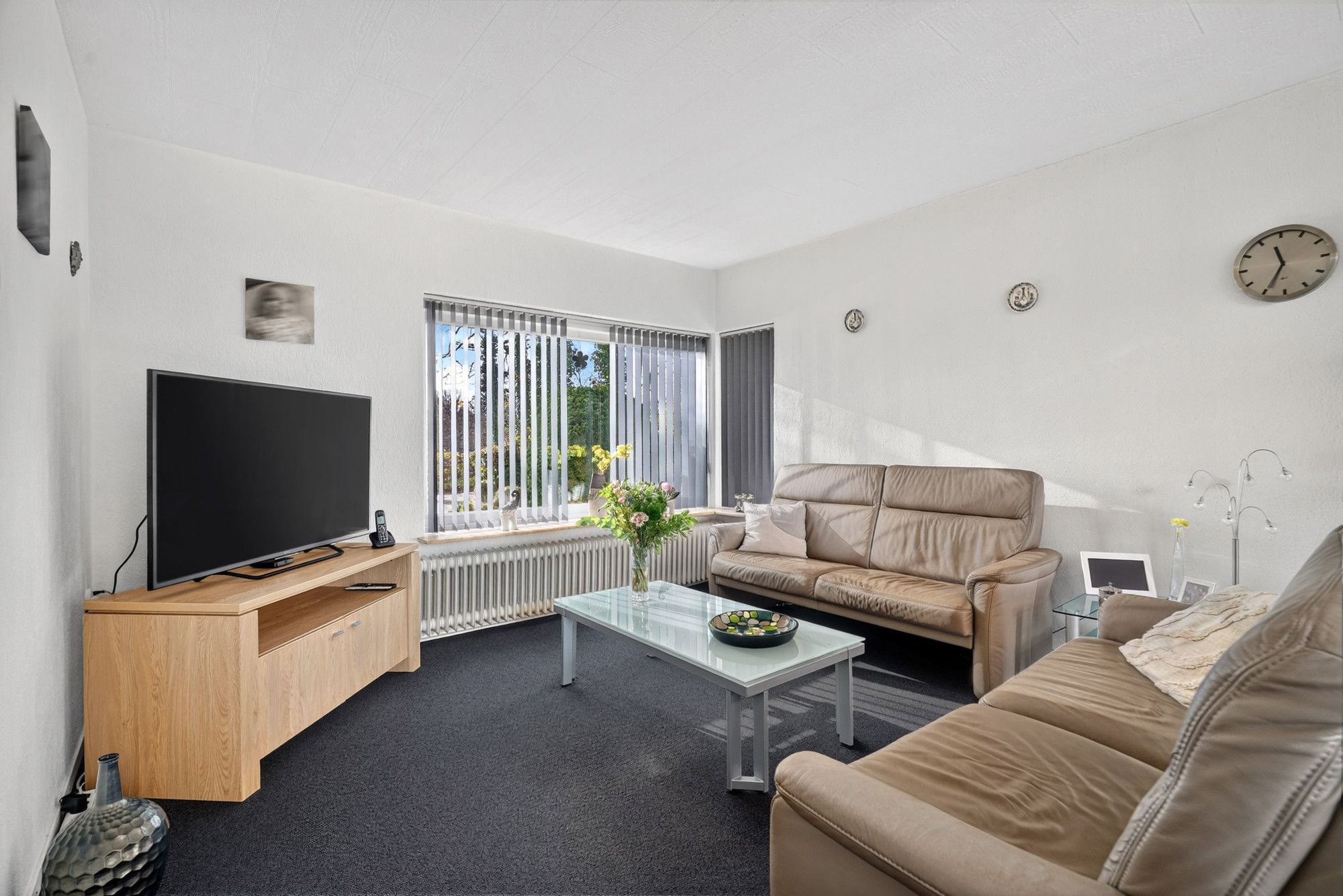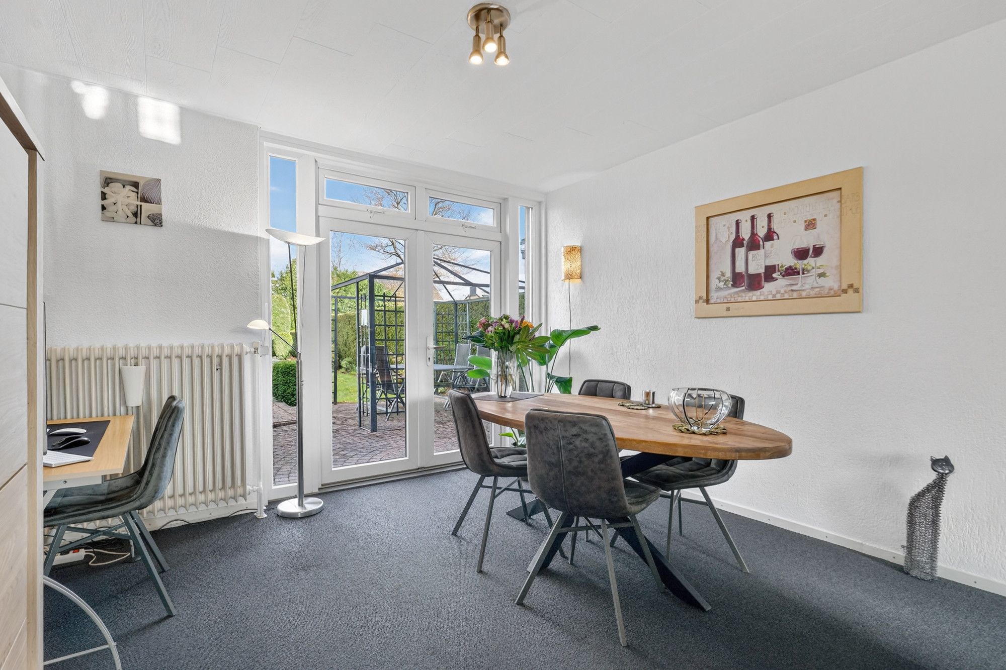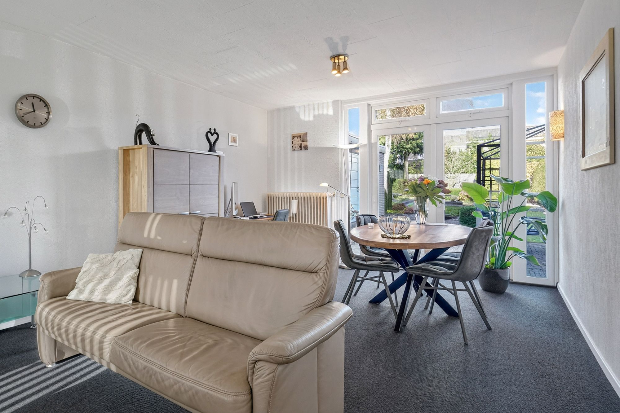 De woonkamer is heerlijk licht dankzij de grote ramen. De woonkamer staat in open verbinding met de eetkamer, waar openslaande deuren direct toegang geven tot de tuin. Vanuit de eetkamer loop je ook door naar de keuken.