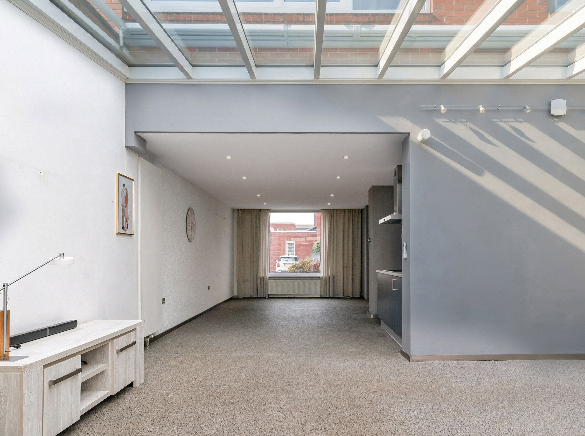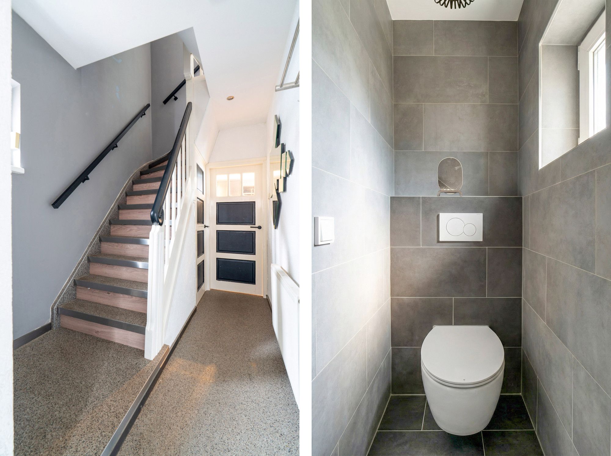 De gehele begane grond is voorzien van grindvloer en sfeervolle spotverlichting. Het toilet is volledig betegeld en voorzien van een hangend closet.