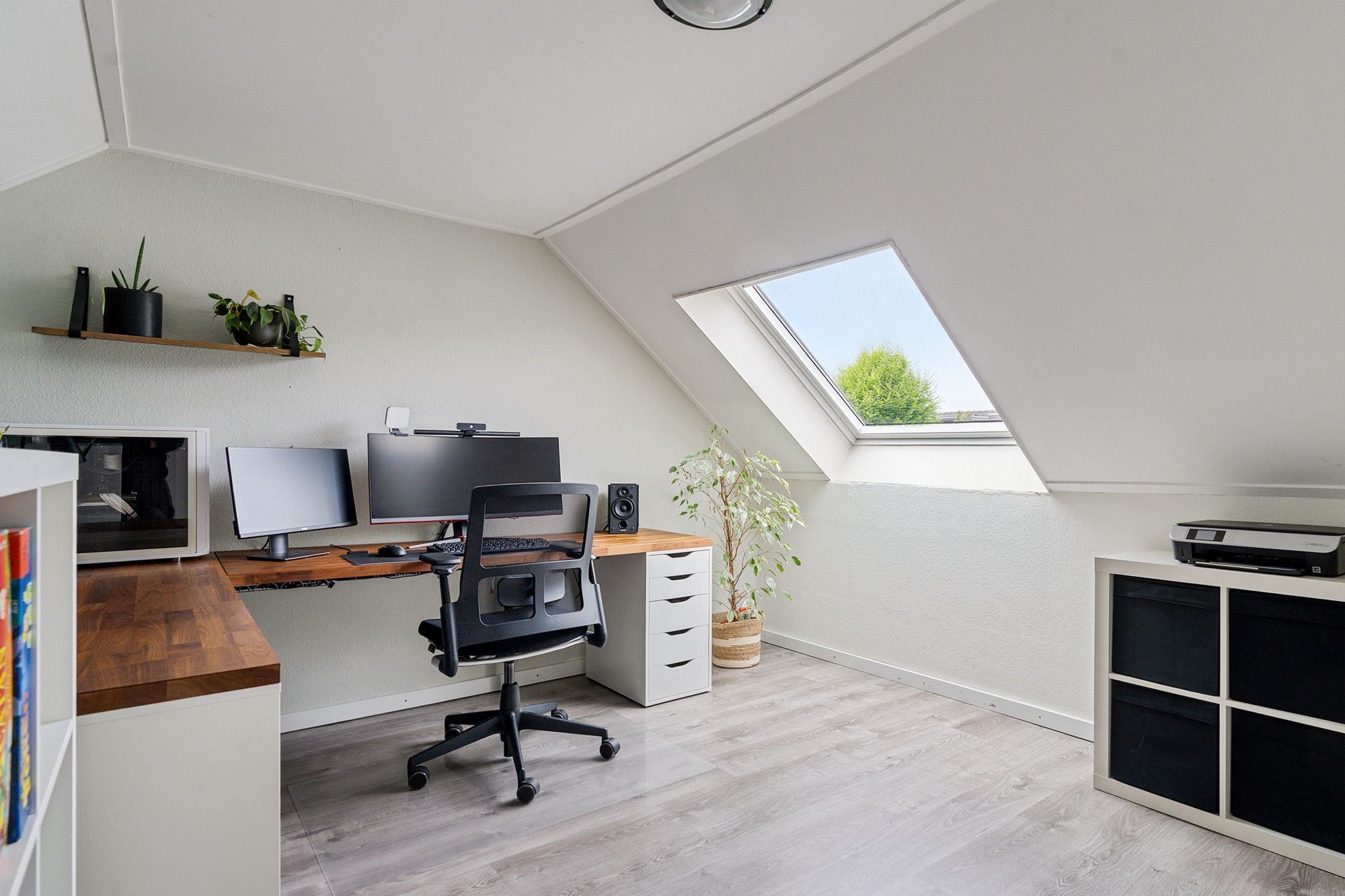 Via een vaste trap kom je op de zolder met twee bergingsruimtes. Ook is er een ruime kamer die geschikt is als werk-, hobby- of extra slaapkamer. Ook deze ruimte is voorzien van een airco.