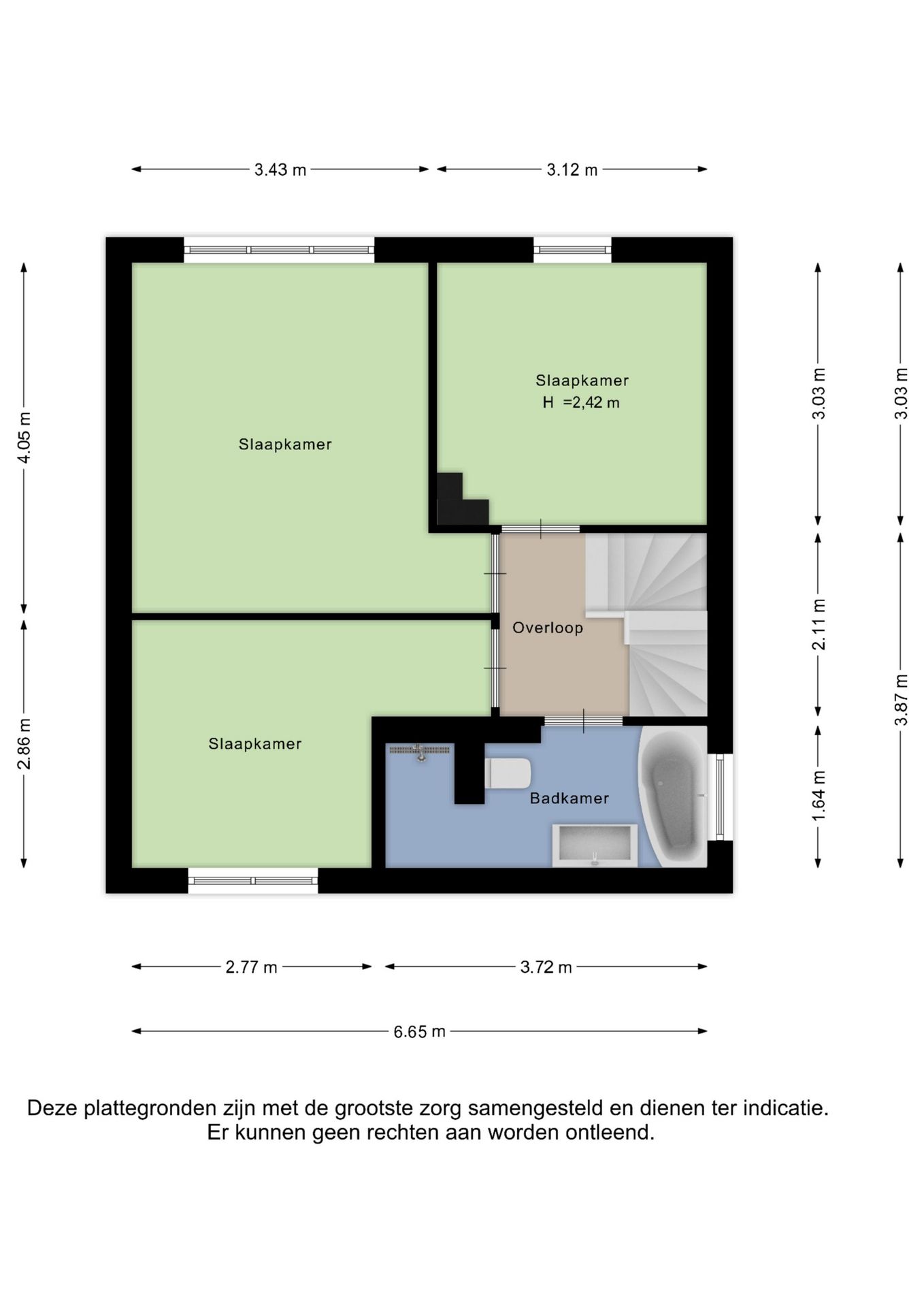 - Slaapkamer 2: ca. 4,05 x 3,43 m;