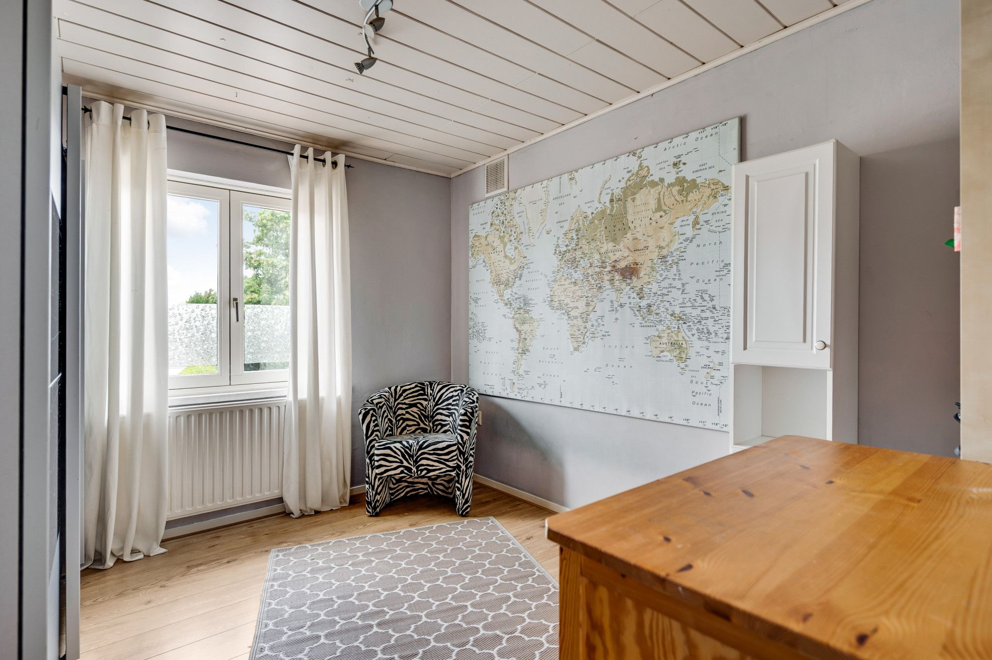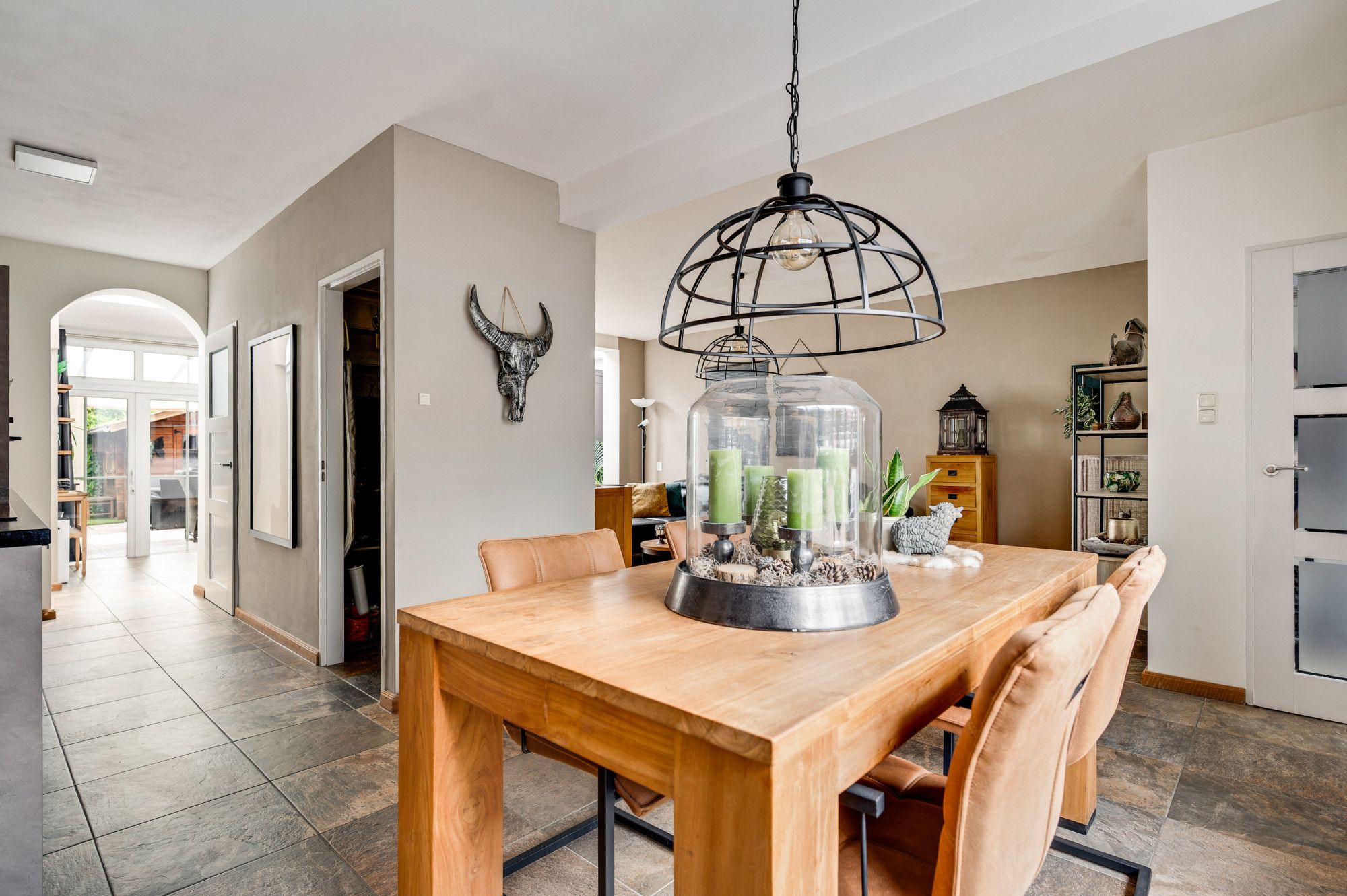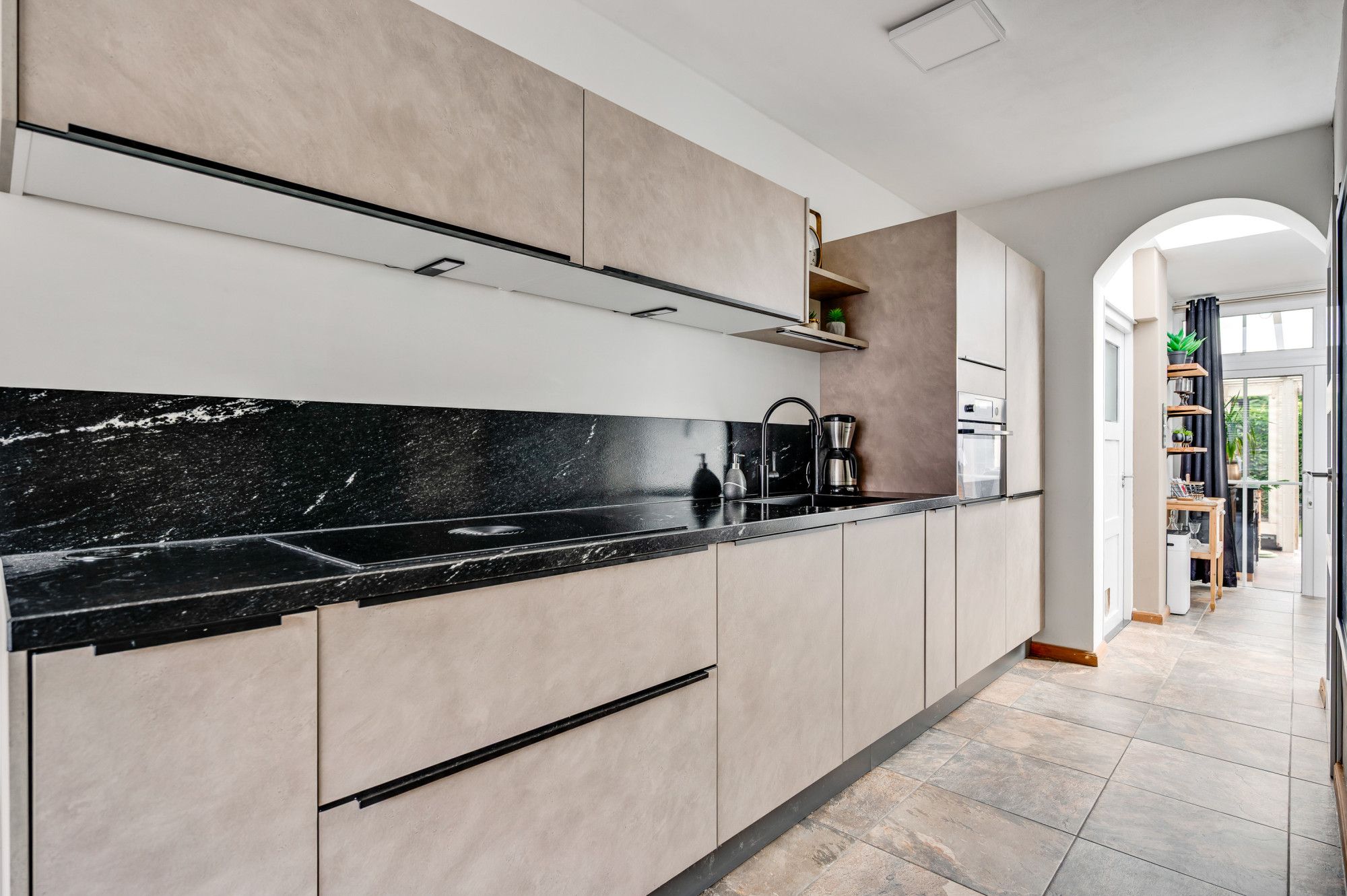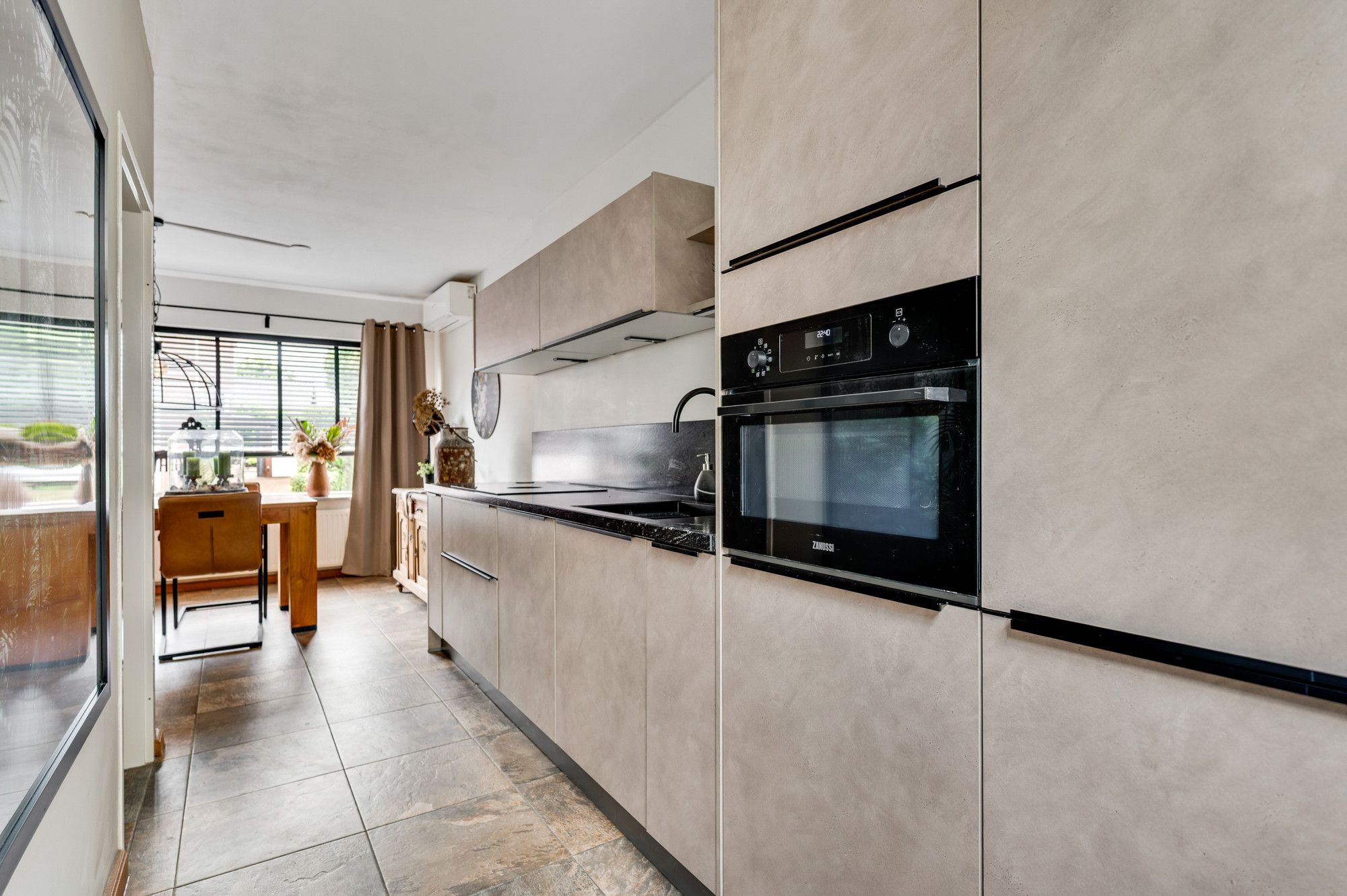 Je komt binnen in de hal met meterkast en moderne toiletruimte. De ruime woonkamer is aangenaam licht en voorzien van een airco en vloerverwarming; ideaal voor elk seizoen. De woonkamer staat in directe verbinding met de serre; een sfeervolle uitbreiding met een lichtstraat en openslaande tuindeuren richting de overkapping. Dit is een echte eyecatcher én een verlengstuk van je leefruimte! De halfopen keuken (2023) is functioneel ingericht en van alle gemakken voorzien, zoals een Bora-inductiekookplaat met geïntegreerde afzuigkap, combi-oven, koelkast en een vaatwasser. Ook vanuit de keuken is er toegang tot de serre, wat de leefruimtes mooi met elkaar verbindt. In de keuken bevinden zich bovendien een praktische trapkast en de trapopgang naar boven. Vanuit de serre heb je toegang tot de inpandige, volledig geïsoleerde garage met elektrische poort. Aansluitend bevindt zich de gelijkvloerse slaapkamer; perfect voor levensloopbestendig wonen, maar ook ideaal als hobbyruimte of thuiskantoor.