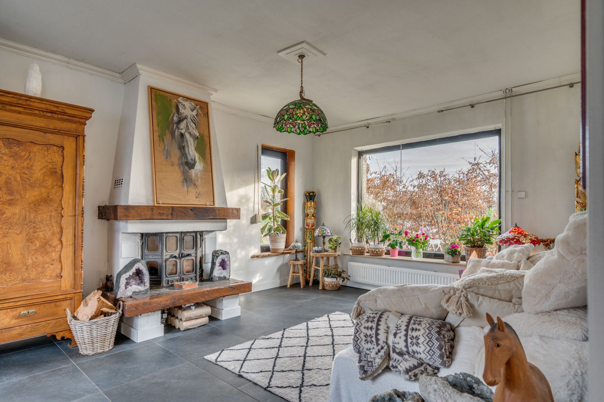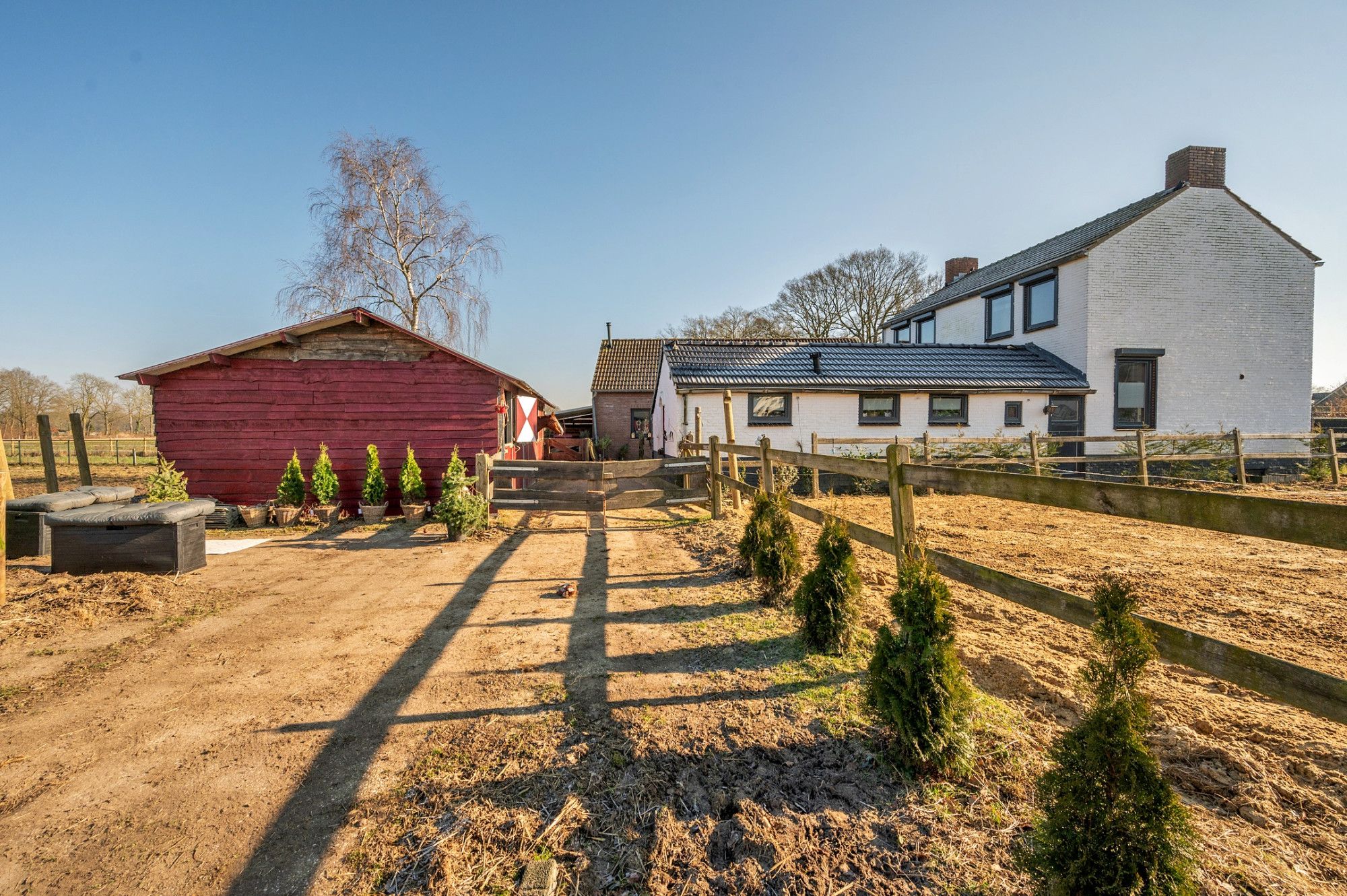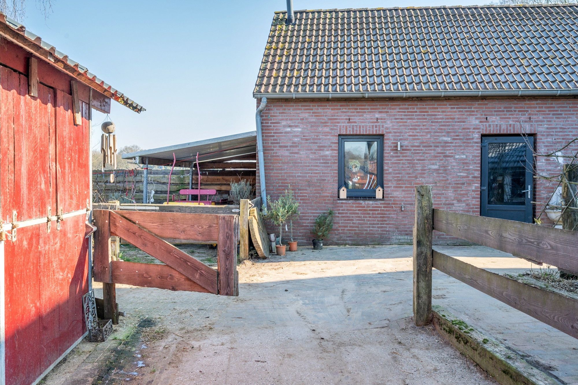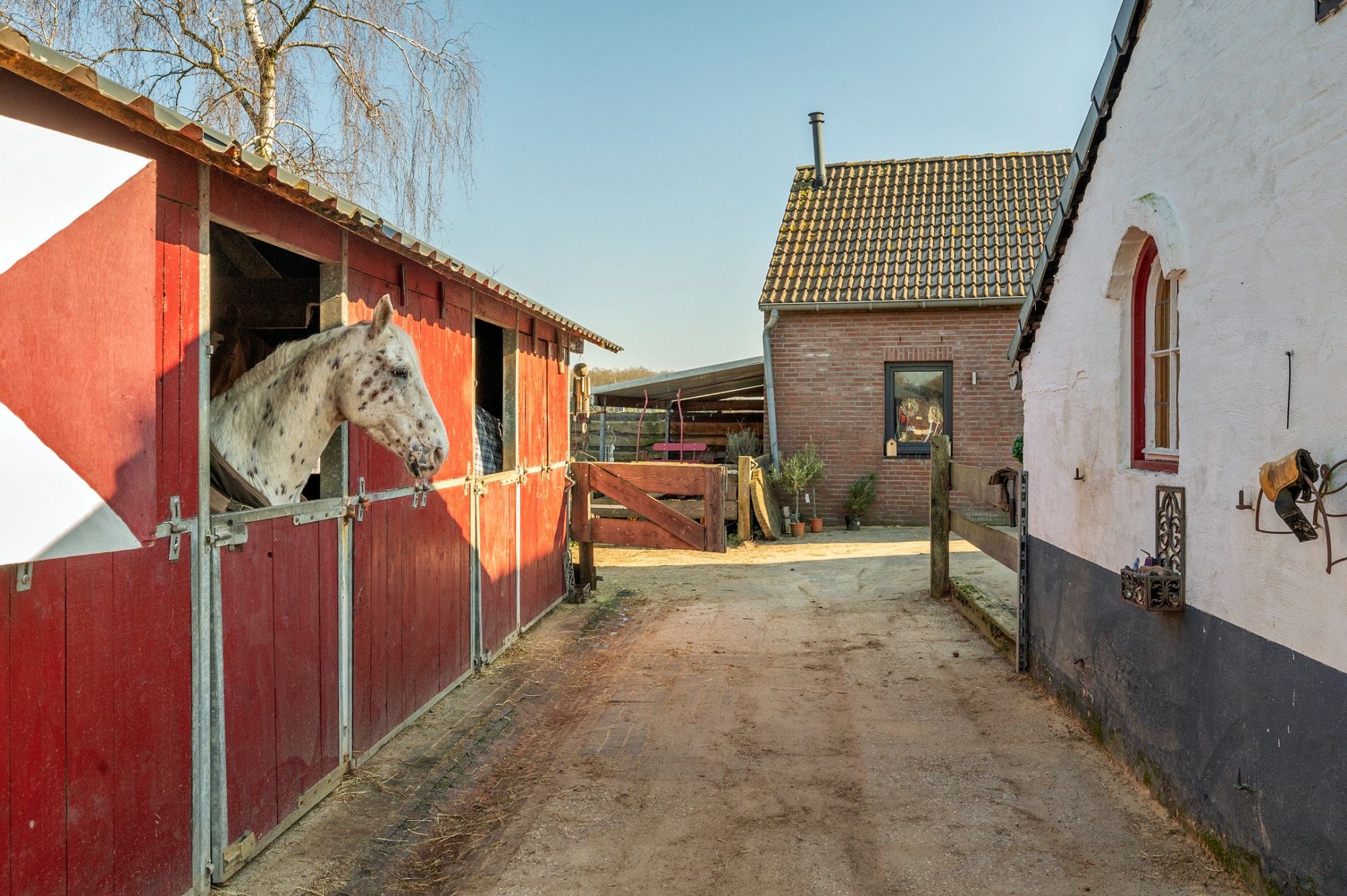 Voor de echte paardenliefhebber is de woning ideaal. De woning beschikt over 3 paardenboxen en meerdere verdere faciliteiten in de tuin.