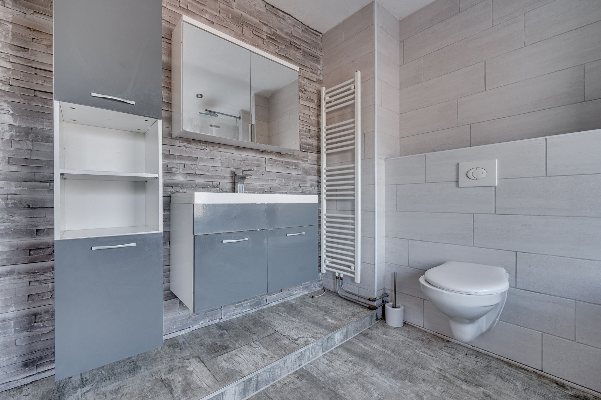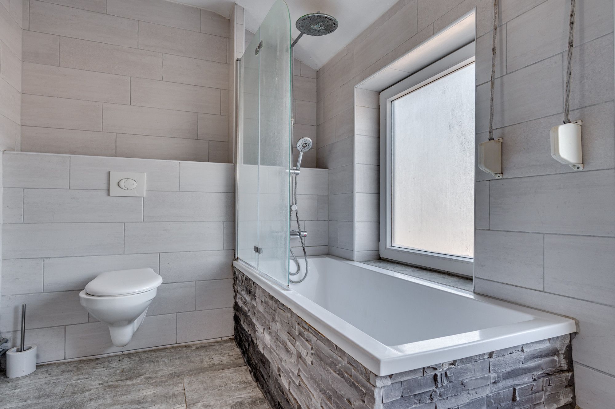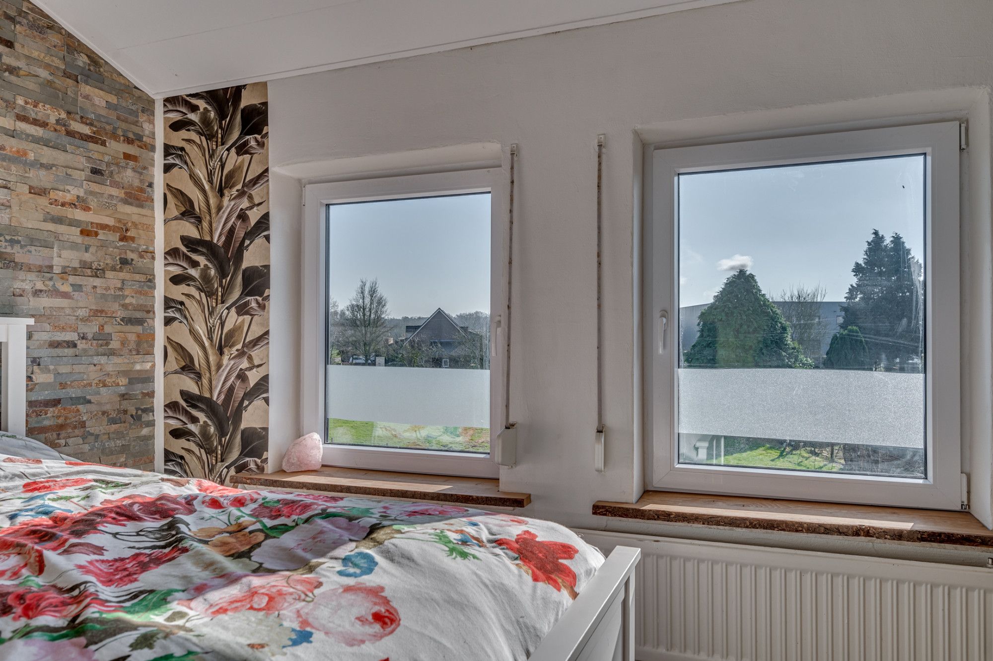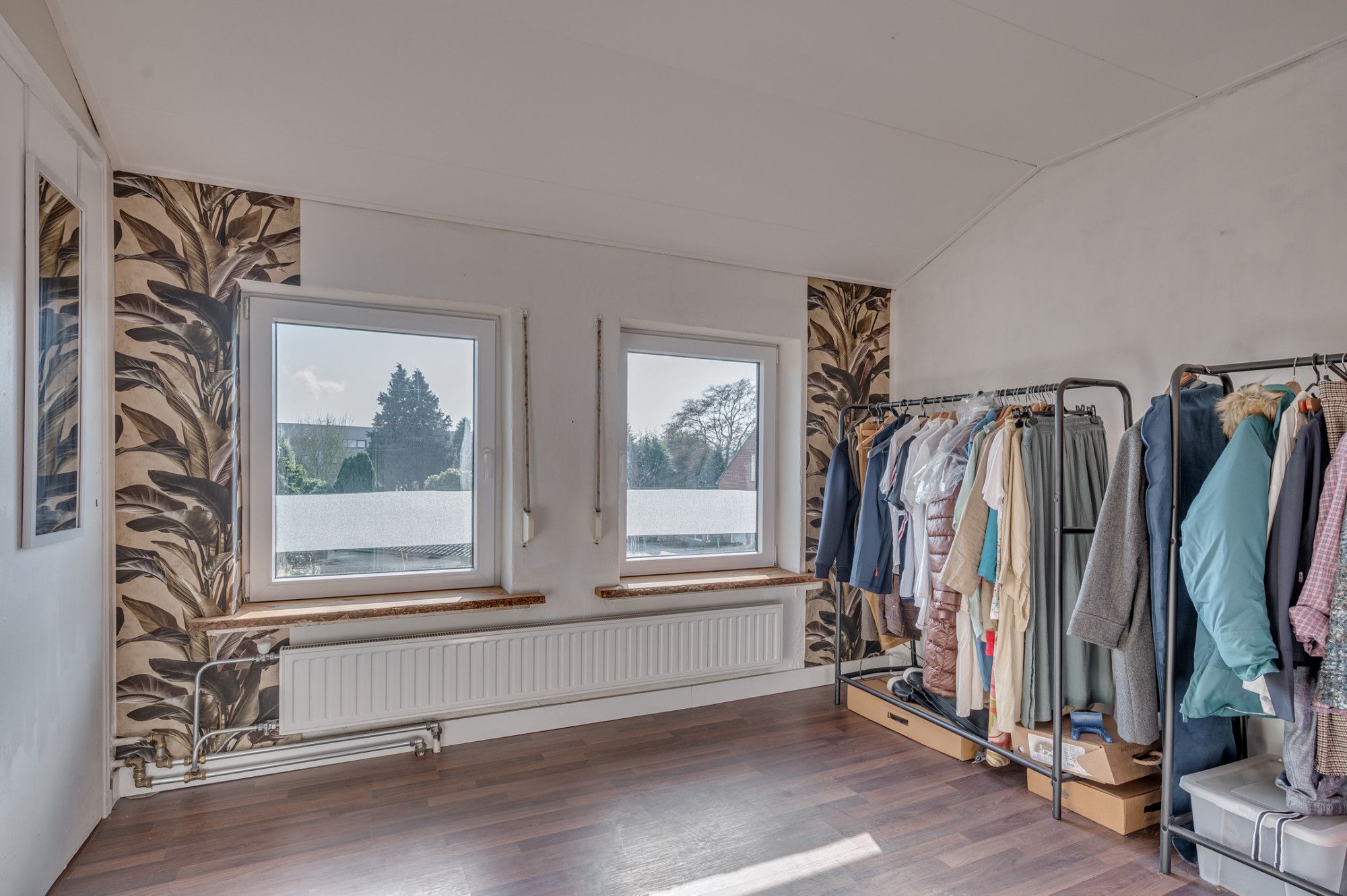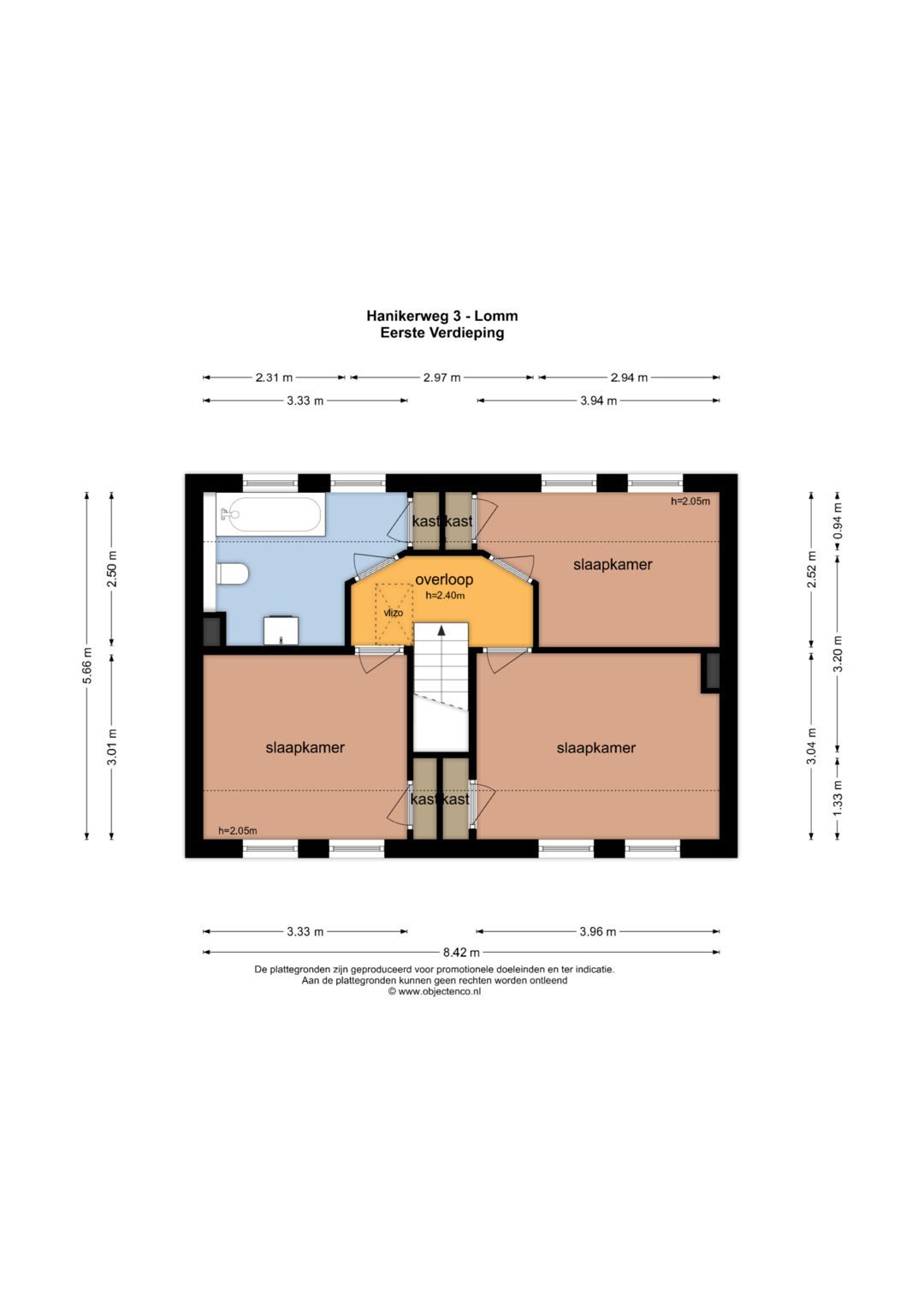 De ruime overloop geeft toegang tot 3 slaapkamers, badkamer en een vlizotrap. De slaapkamers zijn ca. 12m², 10m² en 8,5m² groot en allen voorzien van een laminaatvloer, muurkasten en rolluiken. De badkamer is geheel betegeld en is voorzien van een zwevend toilet, ligbad met douchefaciliteit, wastafel met meubel en designradiator.