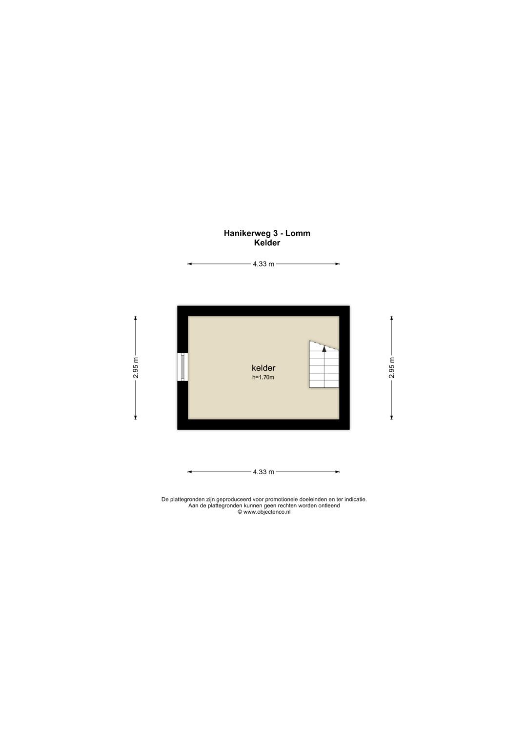 De woning beschikt over een kelder van ca. 13 m² welke vanuit de woonkamer te bereiken is.