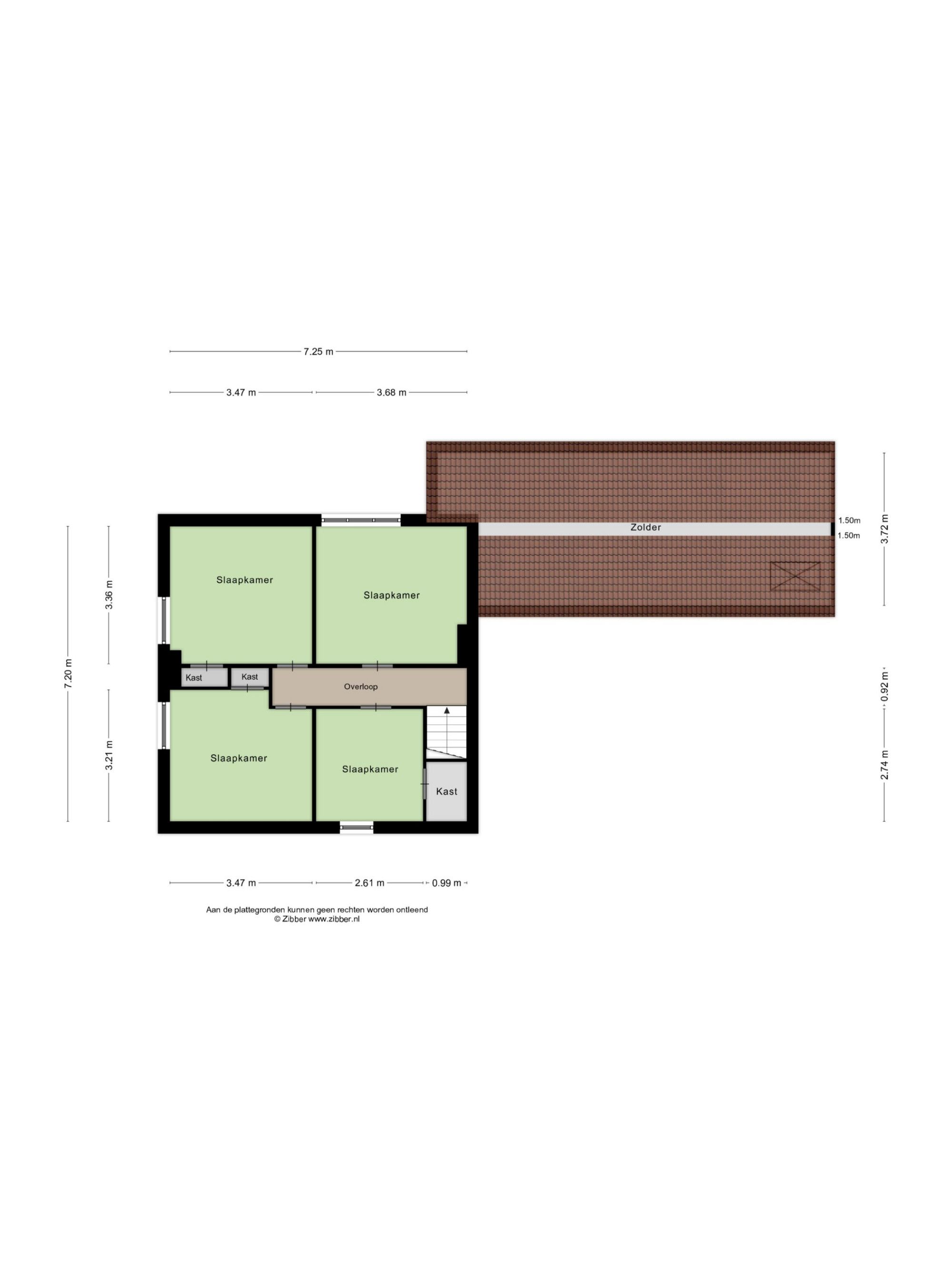 In de gang bevindt zich een luik naar een bergzolder boven de badkamer en bijkeuken.