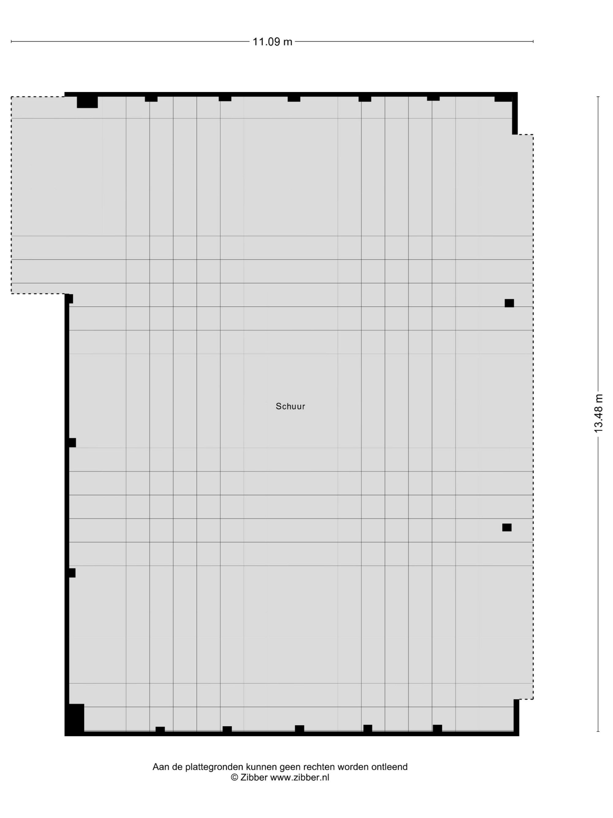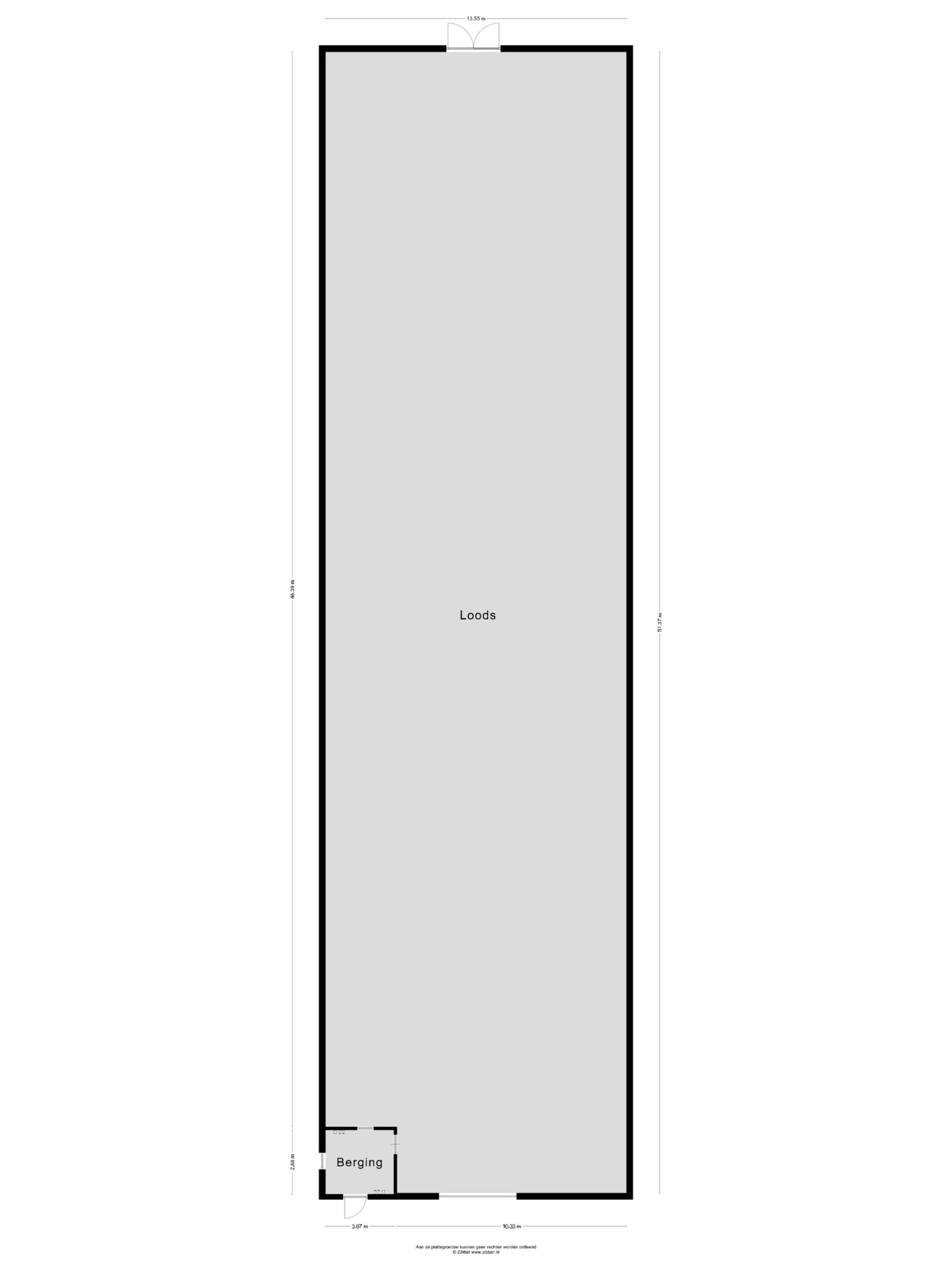 2. Een voormalige kippenstal die nu verhuurd wordt t.b.v. opslag (circa 48m x 14m)