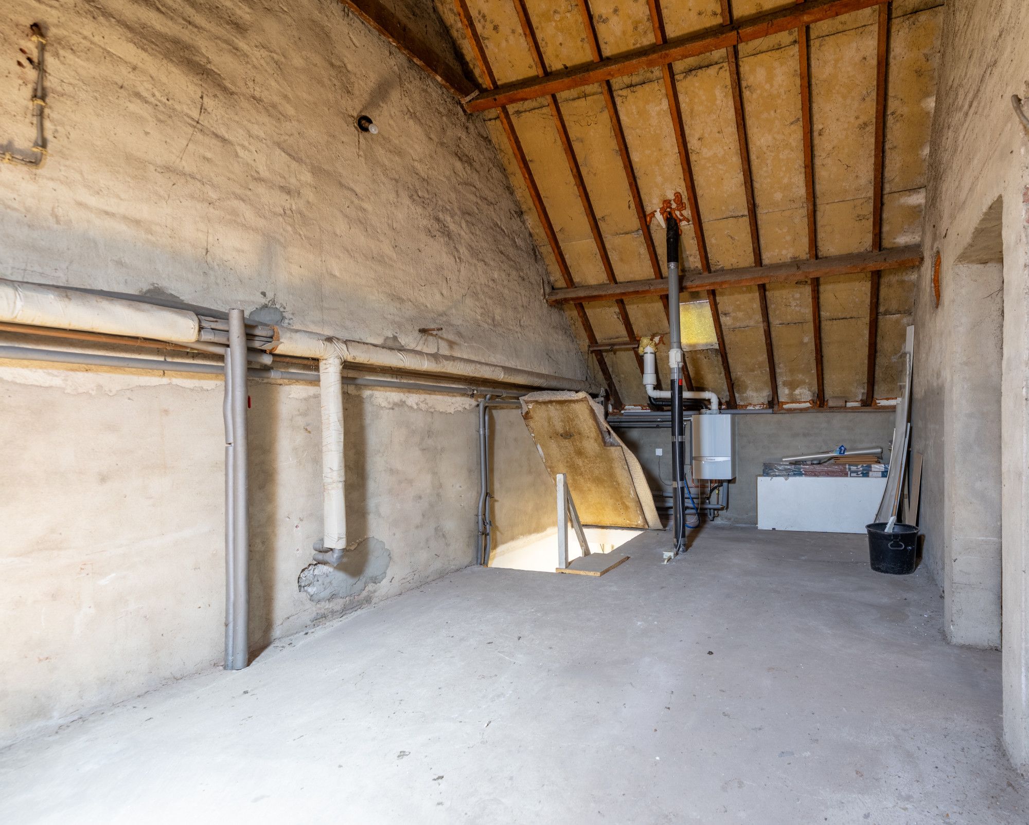Boven de inpandige bergingen/stallen bevindt zich een zolder, deze is toegankelijk middels een trapopgang in de bijkeuken.