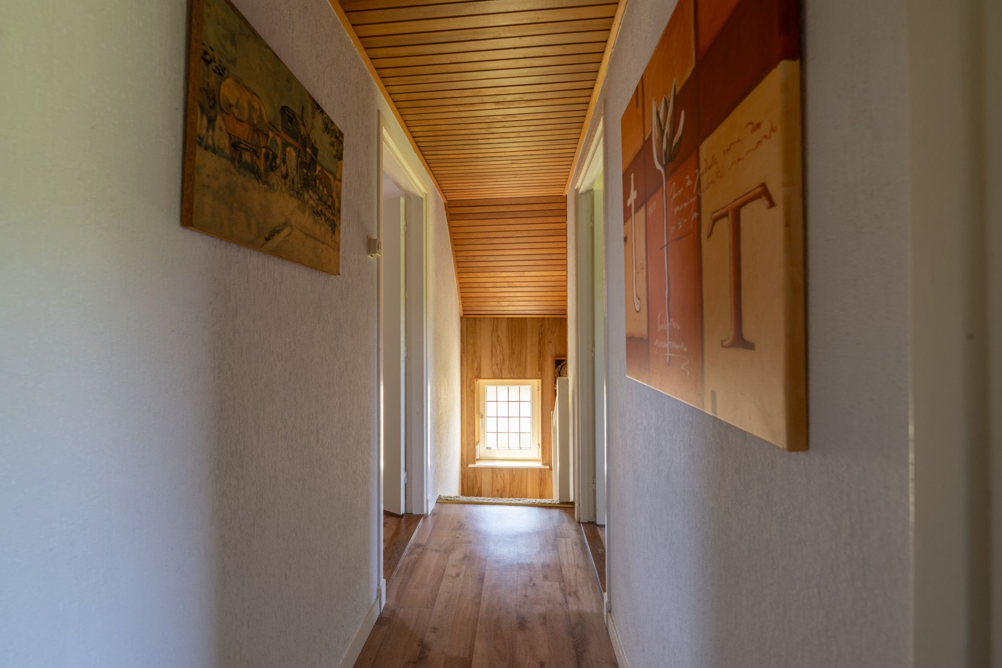 De overloop is voorzien van granolwanden, zeilvloer en houten schroten plafond. De slaapkamers zijn voorzien van vaste kasten, gestukte wanden en plafonds en zeilvloer.