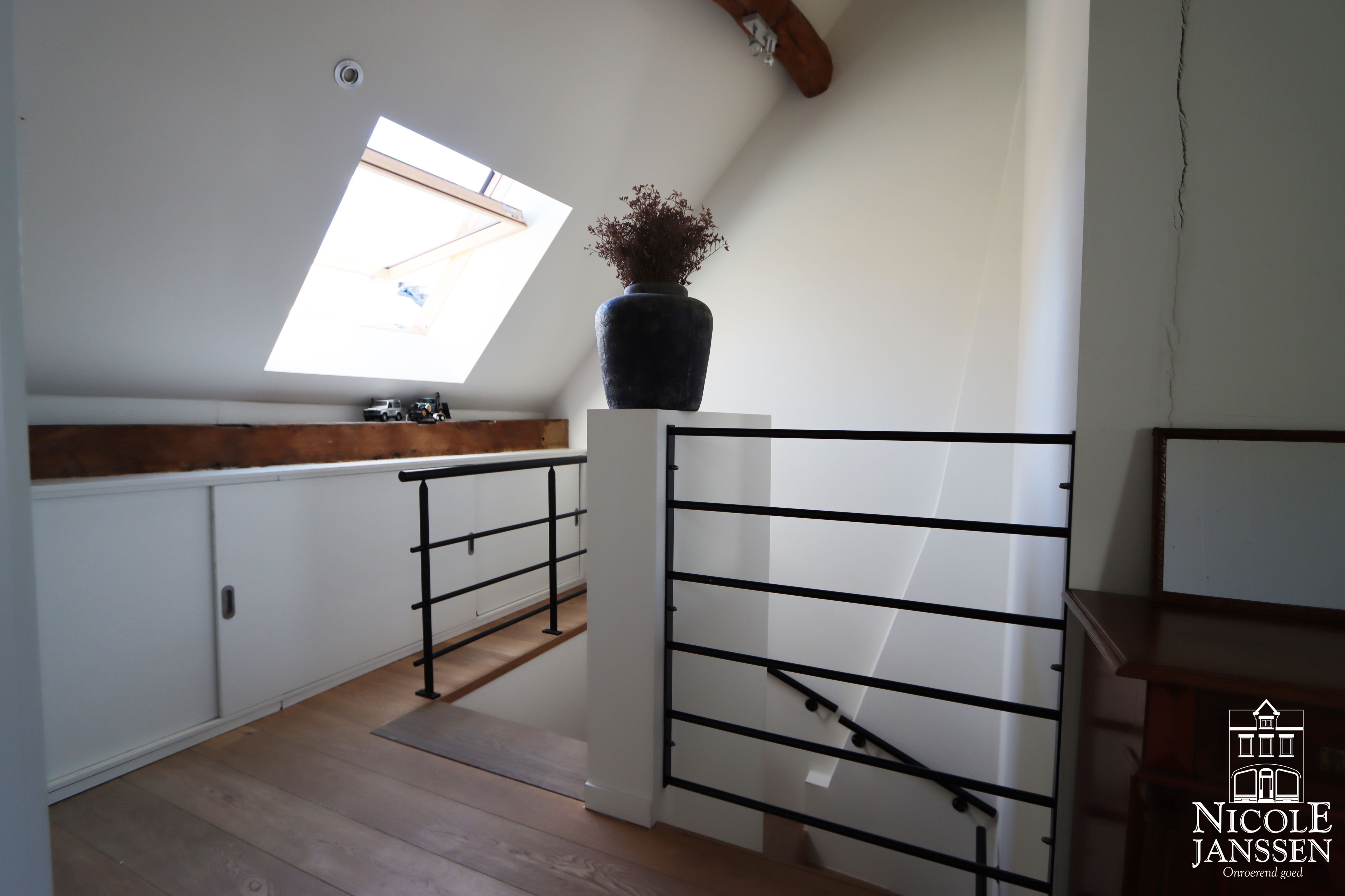 - Derde verdieping +1: toegankelijk via verplaatsbare ladder, open zolderruimte voor extra opbergruimte