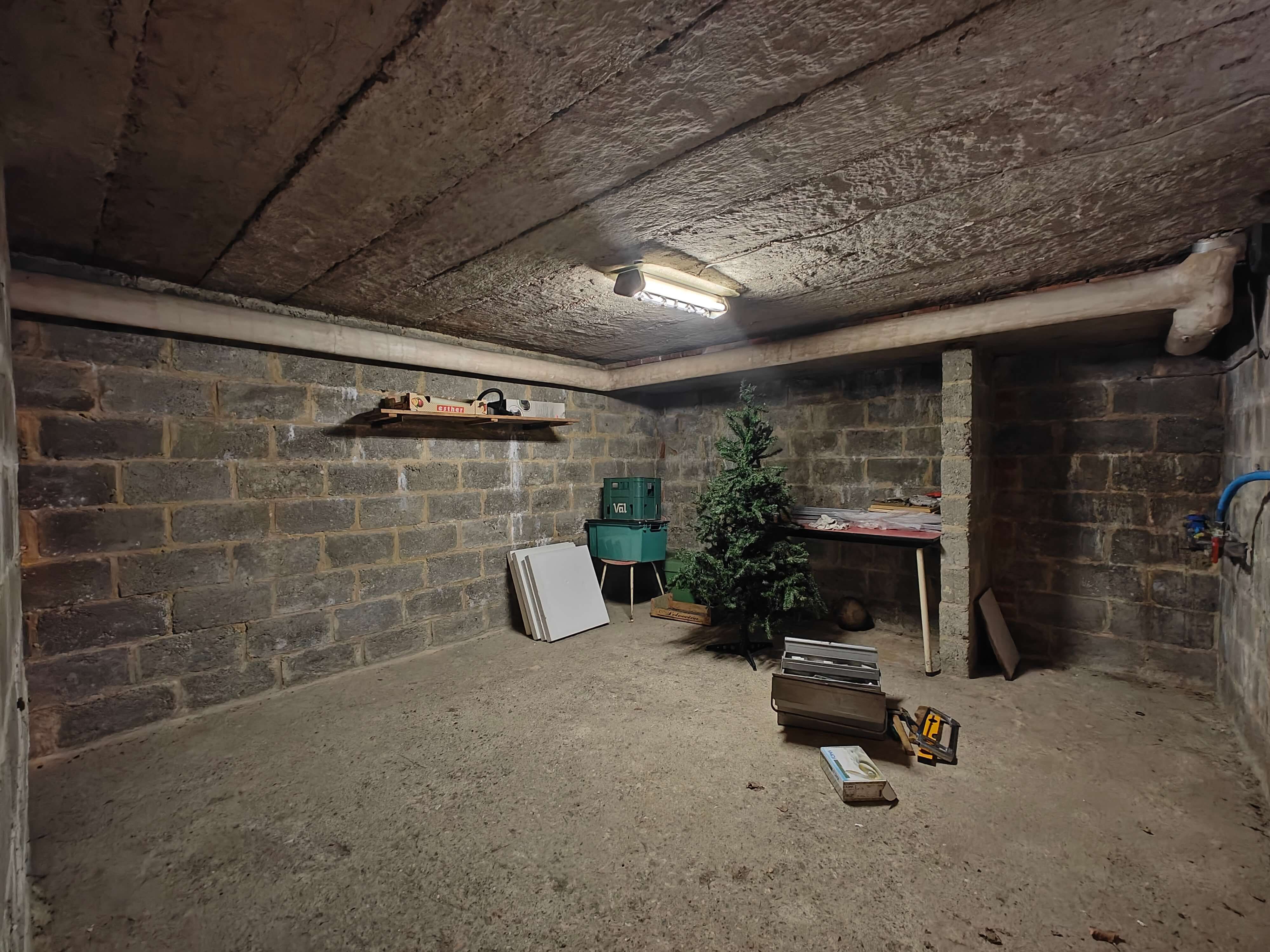 Grenzend aan de keuken vinden we een handige opslagruimte en een sas dat leidt naar een apart toilet, de tuin en de inpandige garage. Hoewel deze momenteel niet geschikt is voor een wagen, biedt ze wél de mogelijkheid om omgevormd te worden tot een extra leefruimte, hobbykamer of een uitbreiding van de keuken.