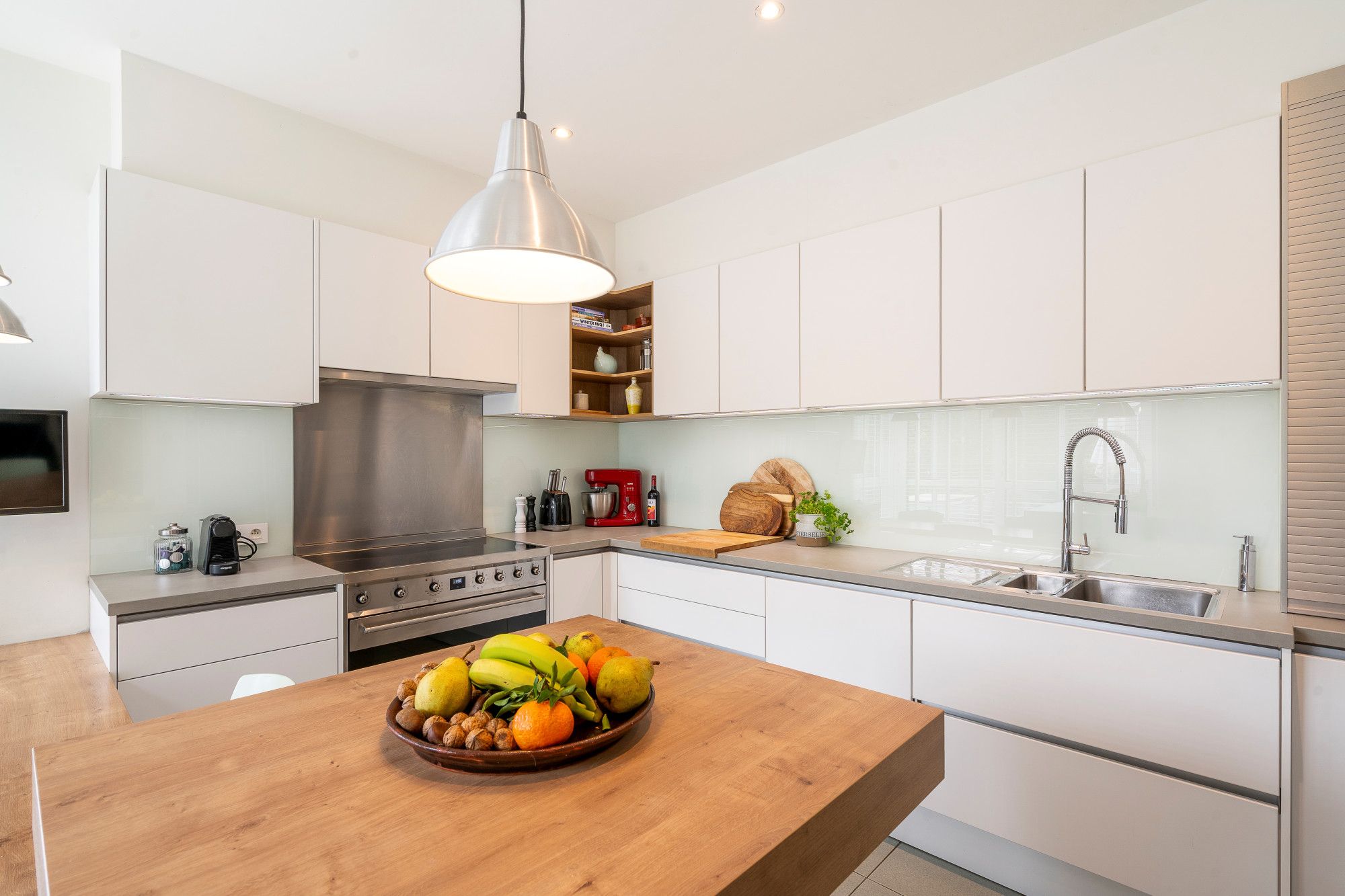 The renovated custom kitchen (2016) has a ceramic worktop and high-quality appliances, including an American refrigerator, a Smeg stove with induction hob and integrated oven, extractor hood, dishwasher, one and a half sinks, and a practical coffee corner.