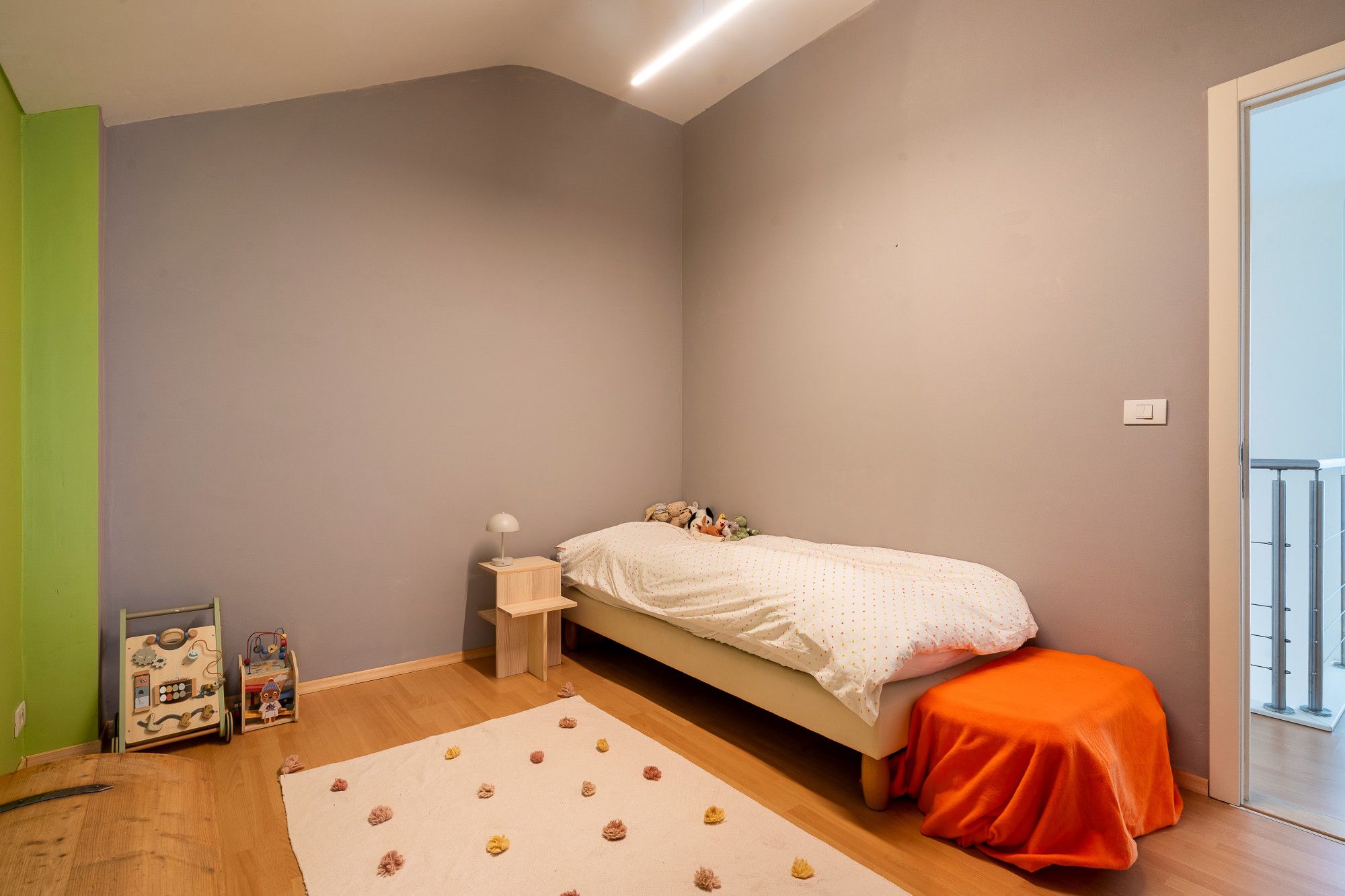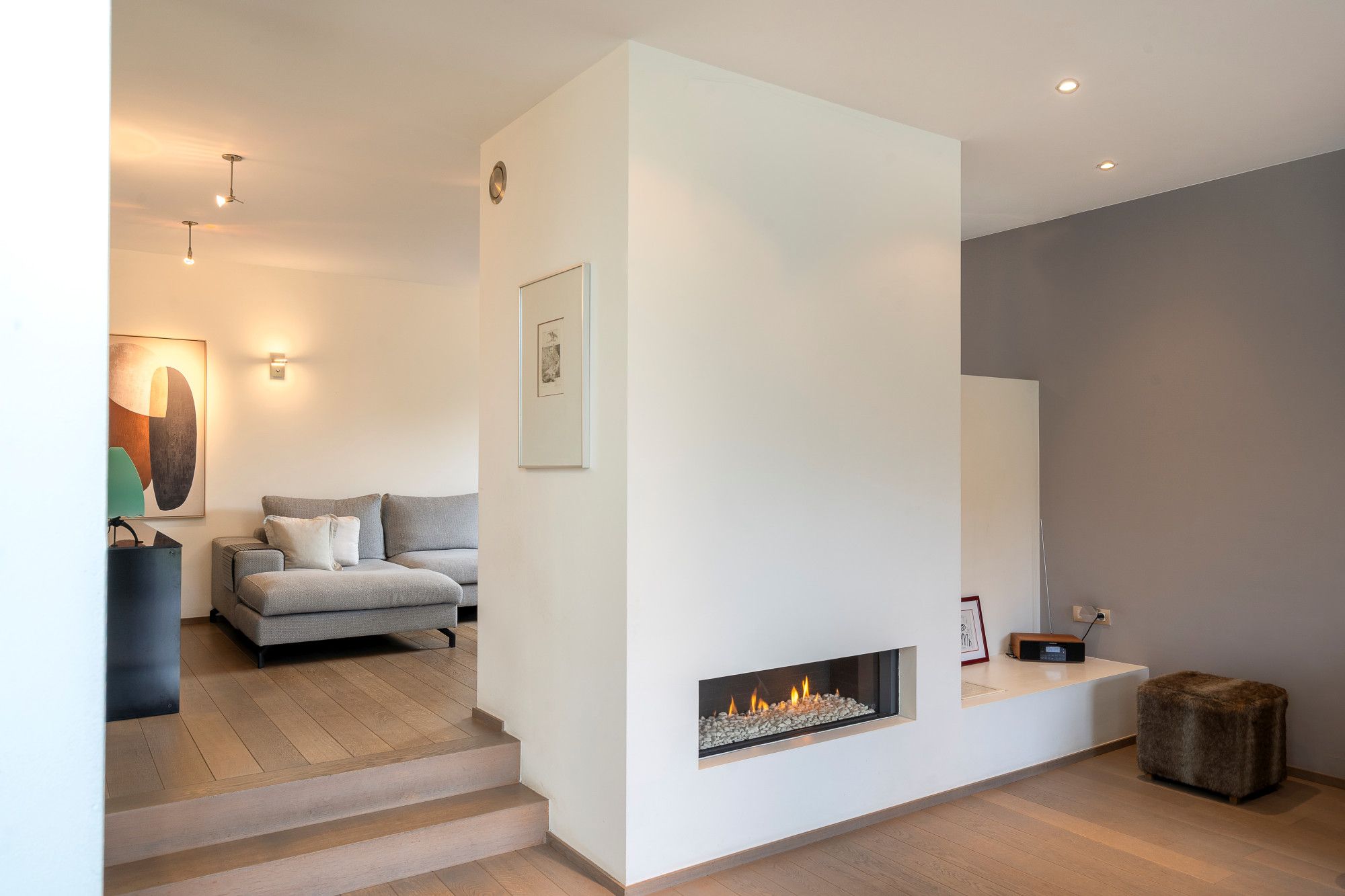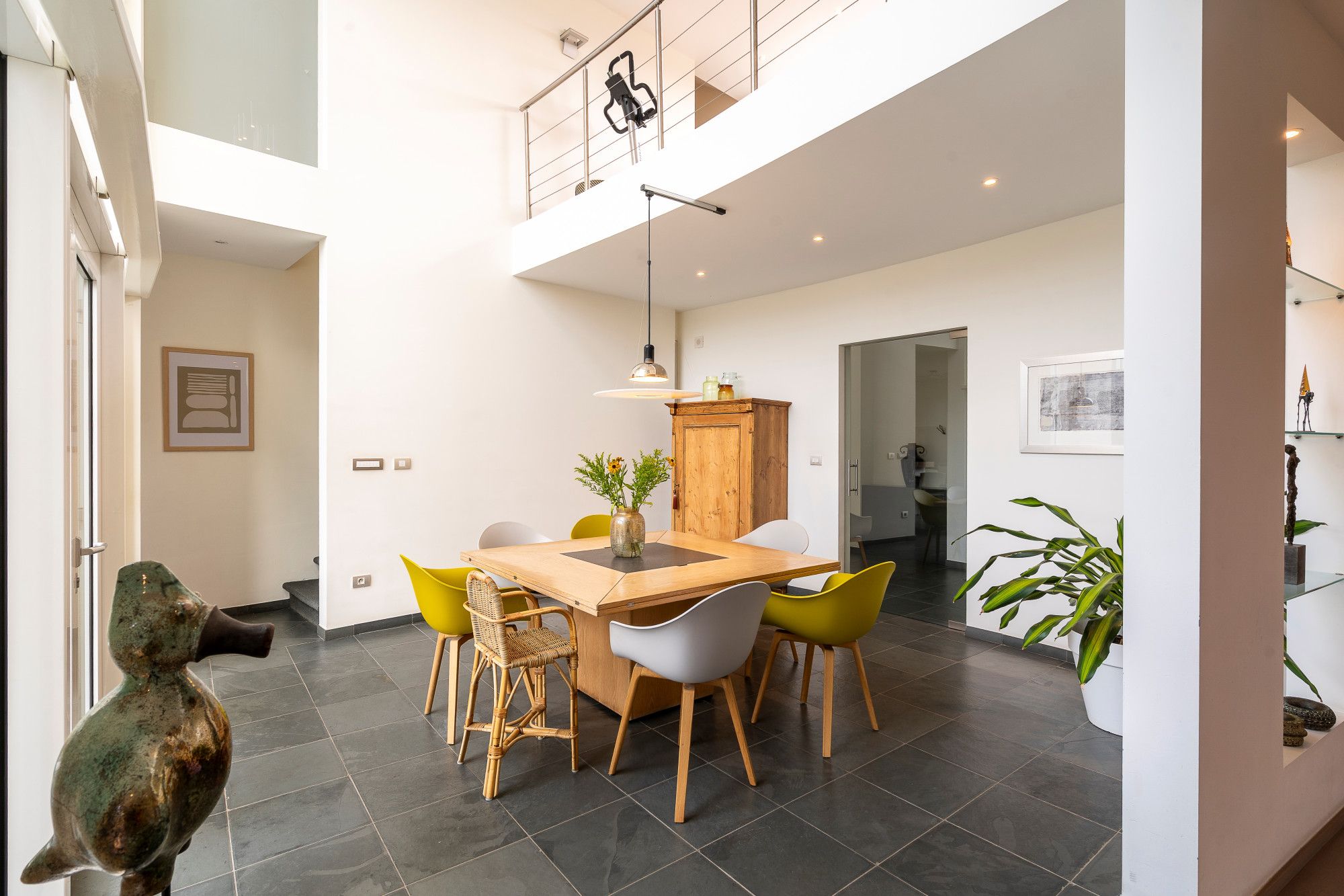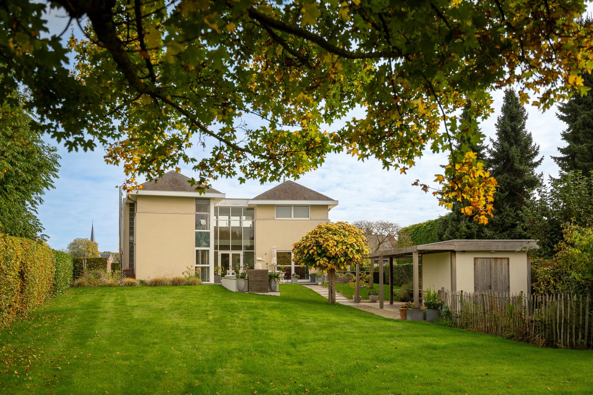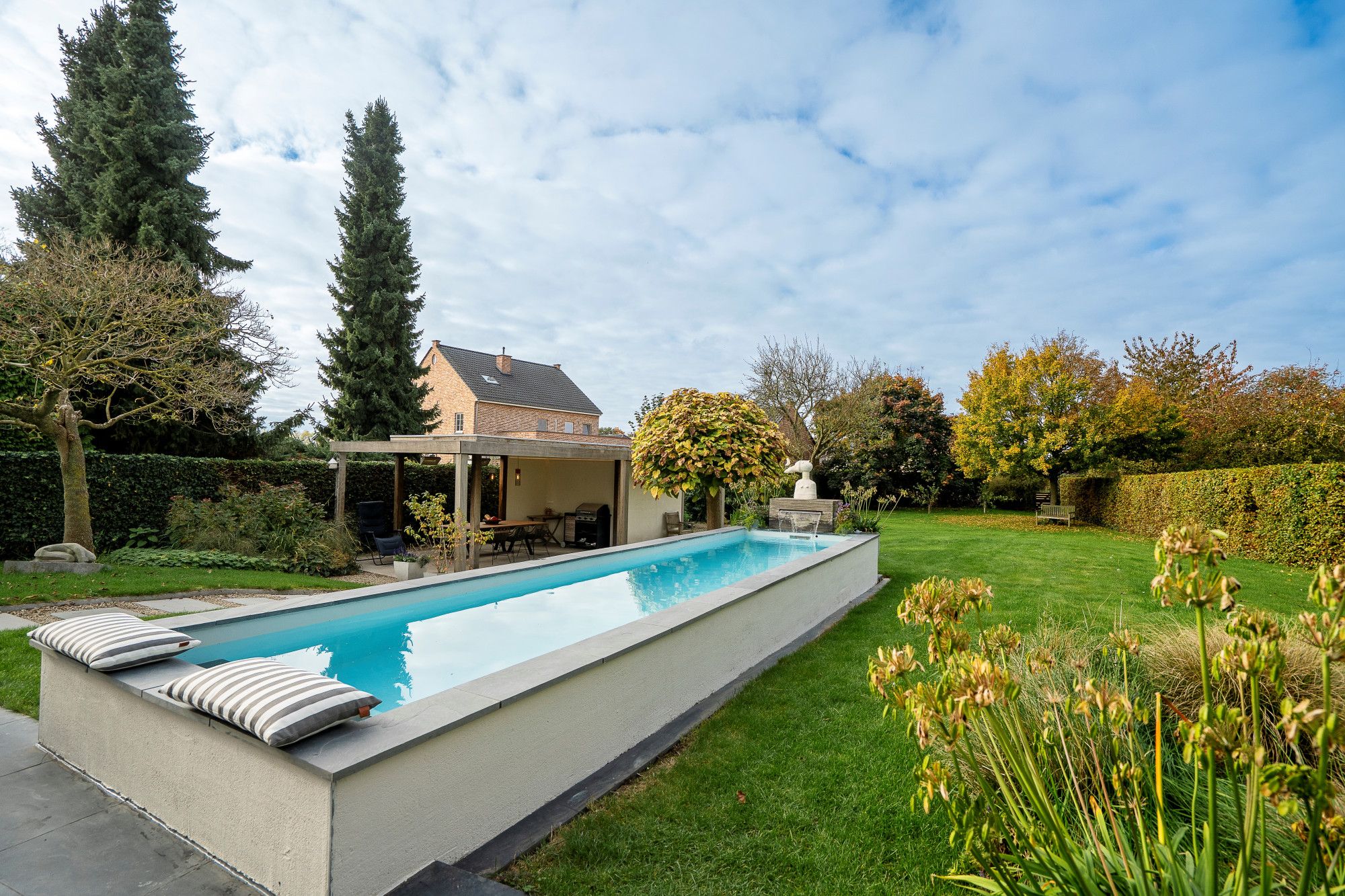 This sleek and timeless villa is located on a beautiful 1,439 m² plot in picturesque Leut (Maasmechelen). The house (1999) was designed with an eye for light, space, and living comfort: the impressive loft with large windows connects the dining area with two cozy sitting areas, separated by a stylish gas fireplace. A lot of attention was also paid to energy efficiency, and the house is very well insulated, all windows are fitted with HR glazing, and 19 solar panels have been installed. The garden is fully landscaped and is a real oasis of calm, with several terraces, an elongated swimming pool, and plenty of privacy. Thanks to the spacious office on the ground floor, this villa is also ideal for those who want to combine living with a freelance career or working from home.