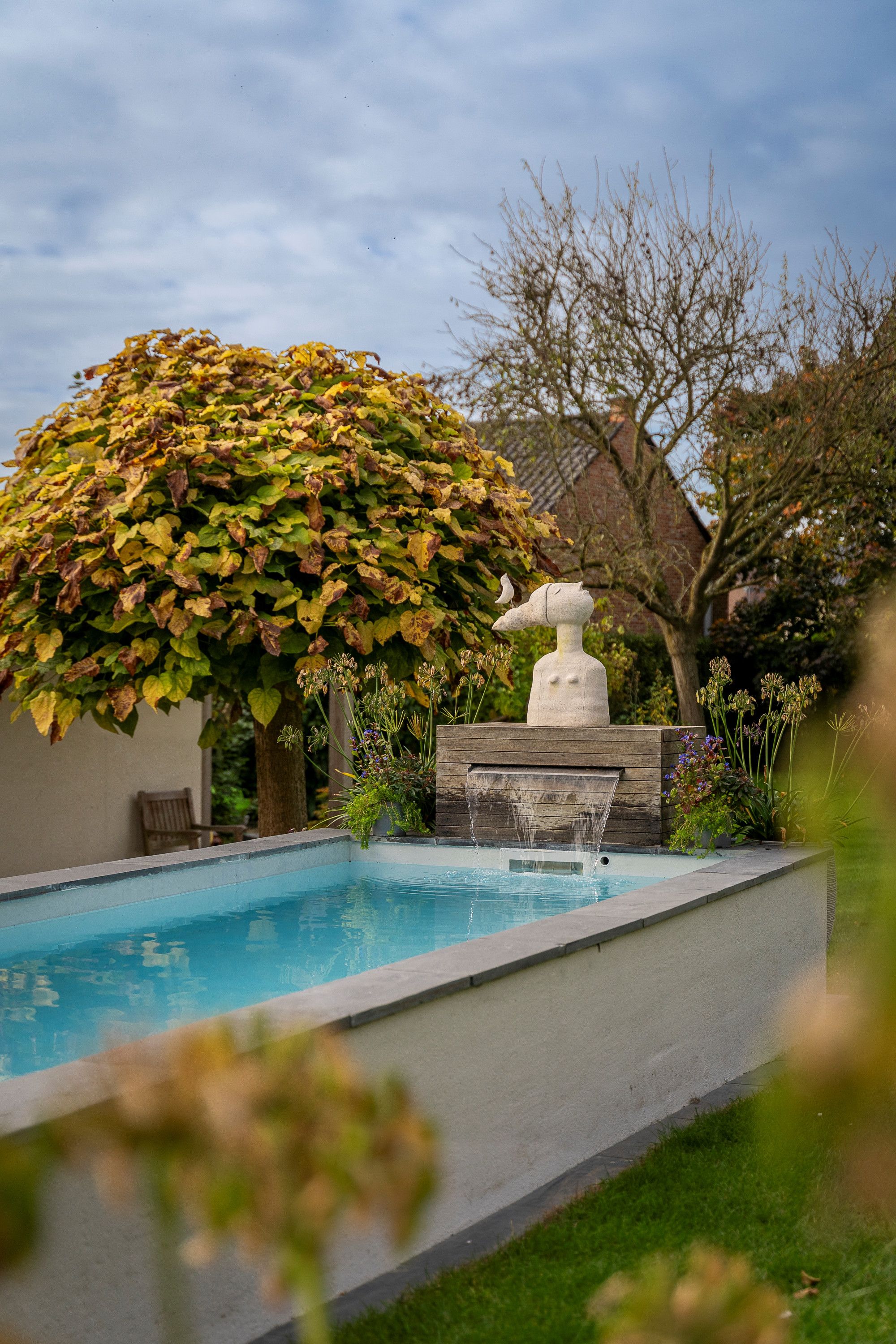 The west-facing, fully landscaped garden is completely fenced and was designed with tranquility and privacy in mind. It offers a raised terrace adjacent to the living area, a heated swimming pool with filter system, and a garden shed with an additional covered terrace with heating elements.