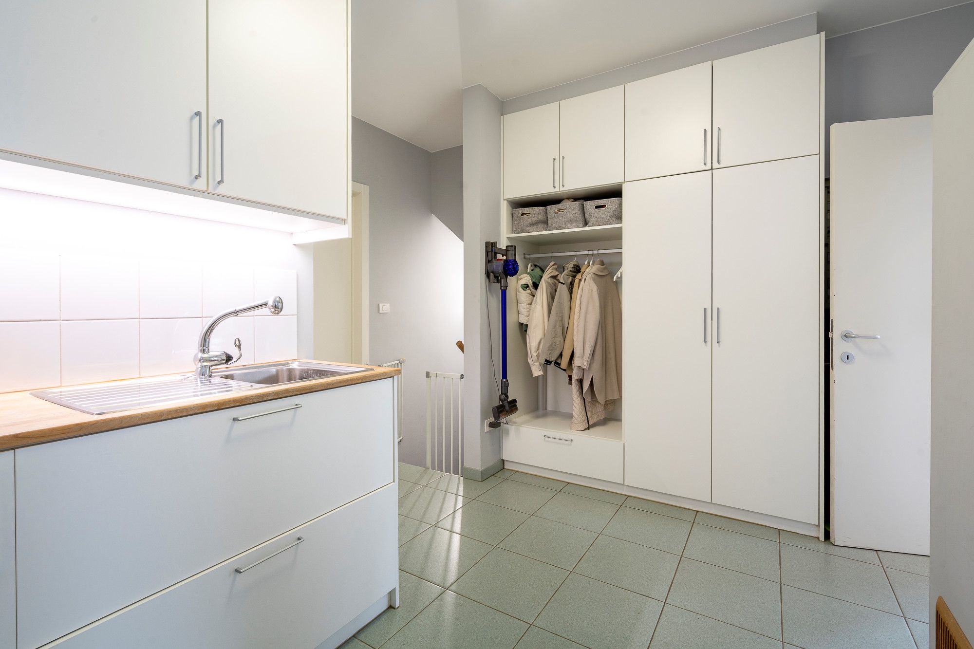 The villa was finished with high-quality materials and an eye for detail. On the ground floor, we find natural stone (slate) and solid parquet flooring, built-in custom cabinets, designer recessed lighting, and a central vacuum system.
