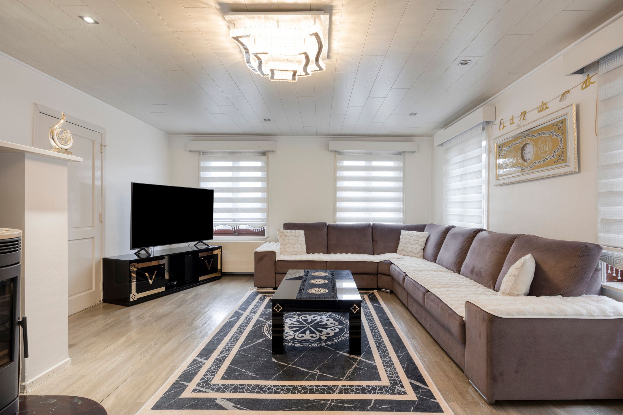 - Woonkamer: (4,53 m x 6,00 m = 40 m²) – laminaat - schuifpui naar terras en tuin
