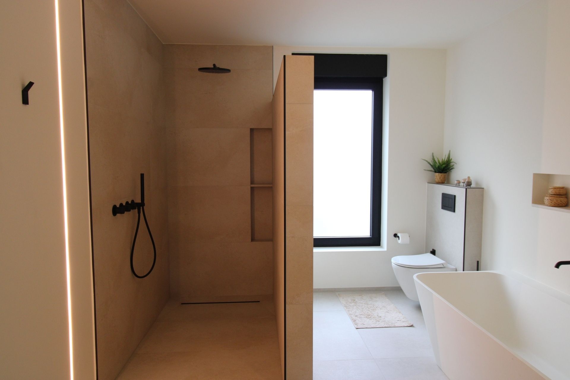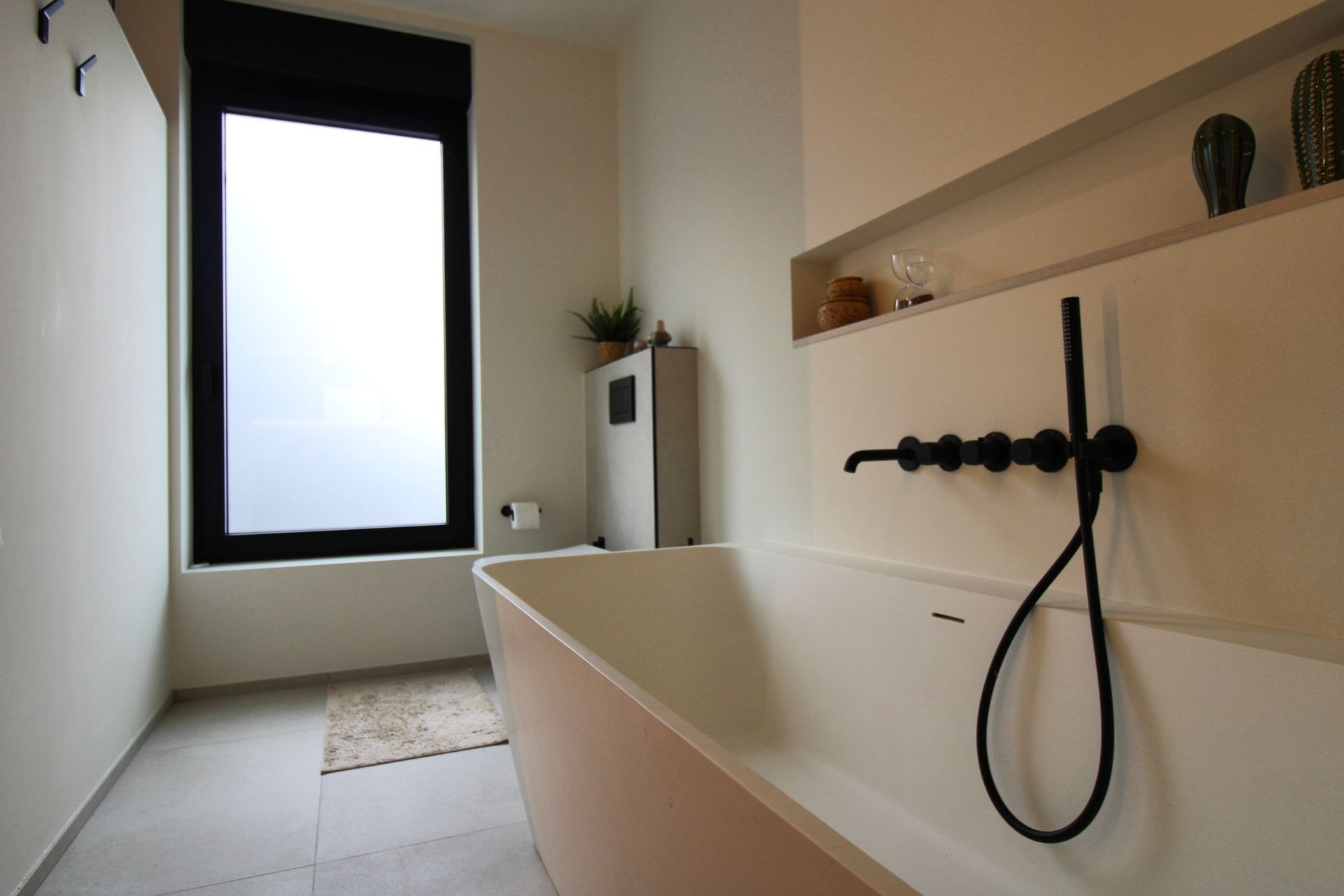 Op verdieping bevinden zich drie ruime slaapkamers, waarvan twee voorzien zijn van inbouwkasten. De ruime badkamer is uitgerust met een dubbele wastafel, een verwarmde spiegel, een grote inloopdouche, een ligbad en een toilet. Op de bovenste verdieping bevindt zich bovendien een praktische wasruimte met aansluitingen voor wasmachine en droogkast.