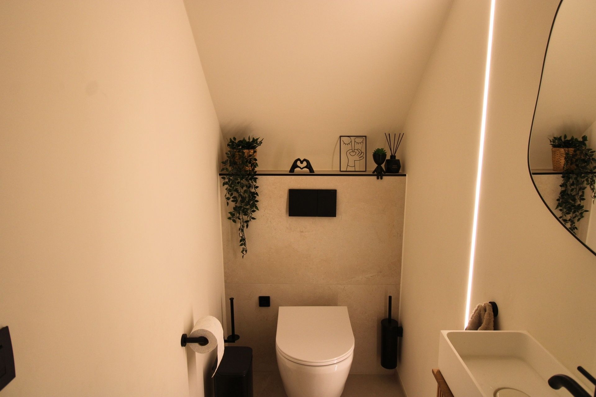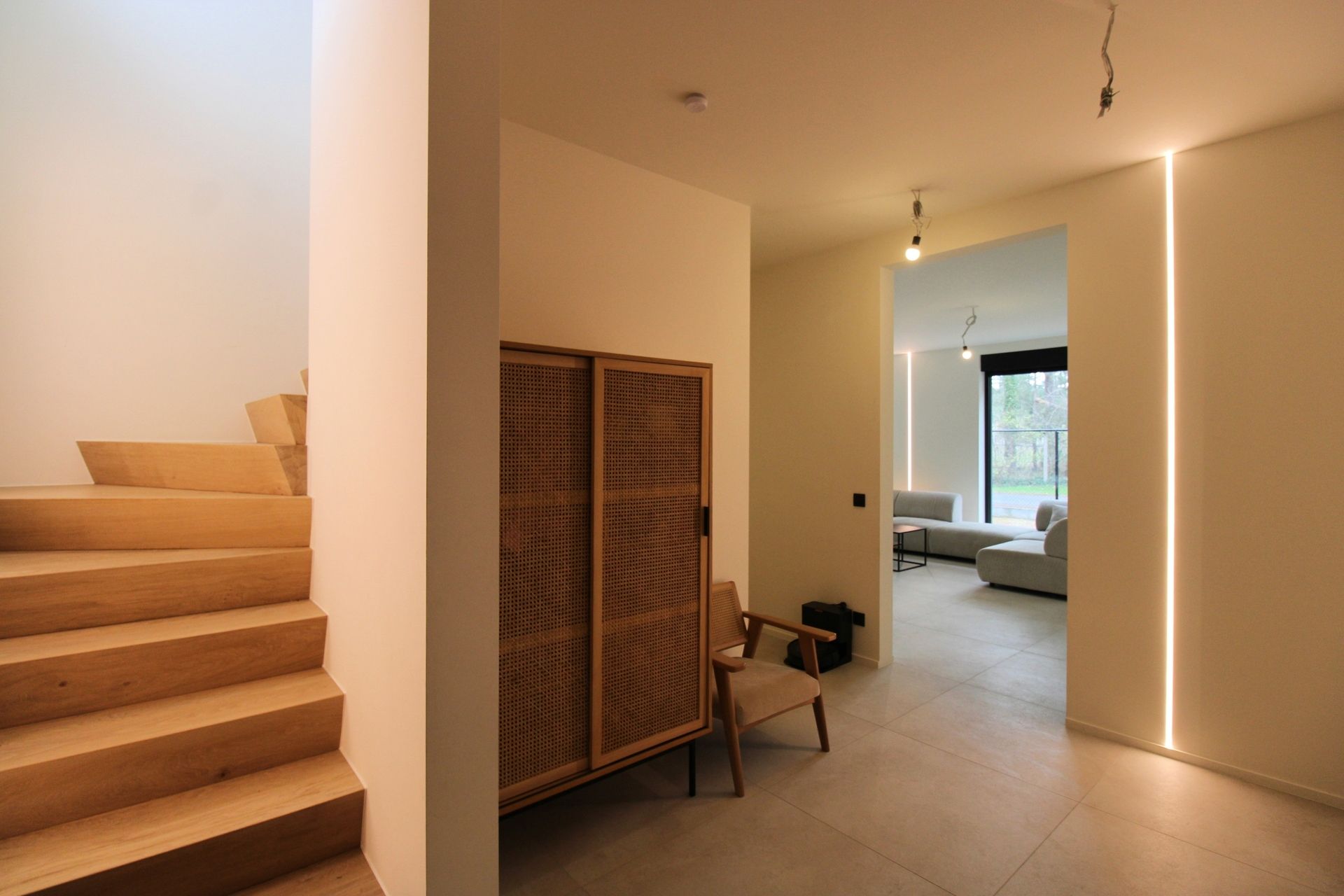 Verder vinden we op het gelijkvloers nog een technische ruimte en een apart gastentoilet. De trappenhal is stijlvol afgewerkt met geïntegreerde LED-verlichting.