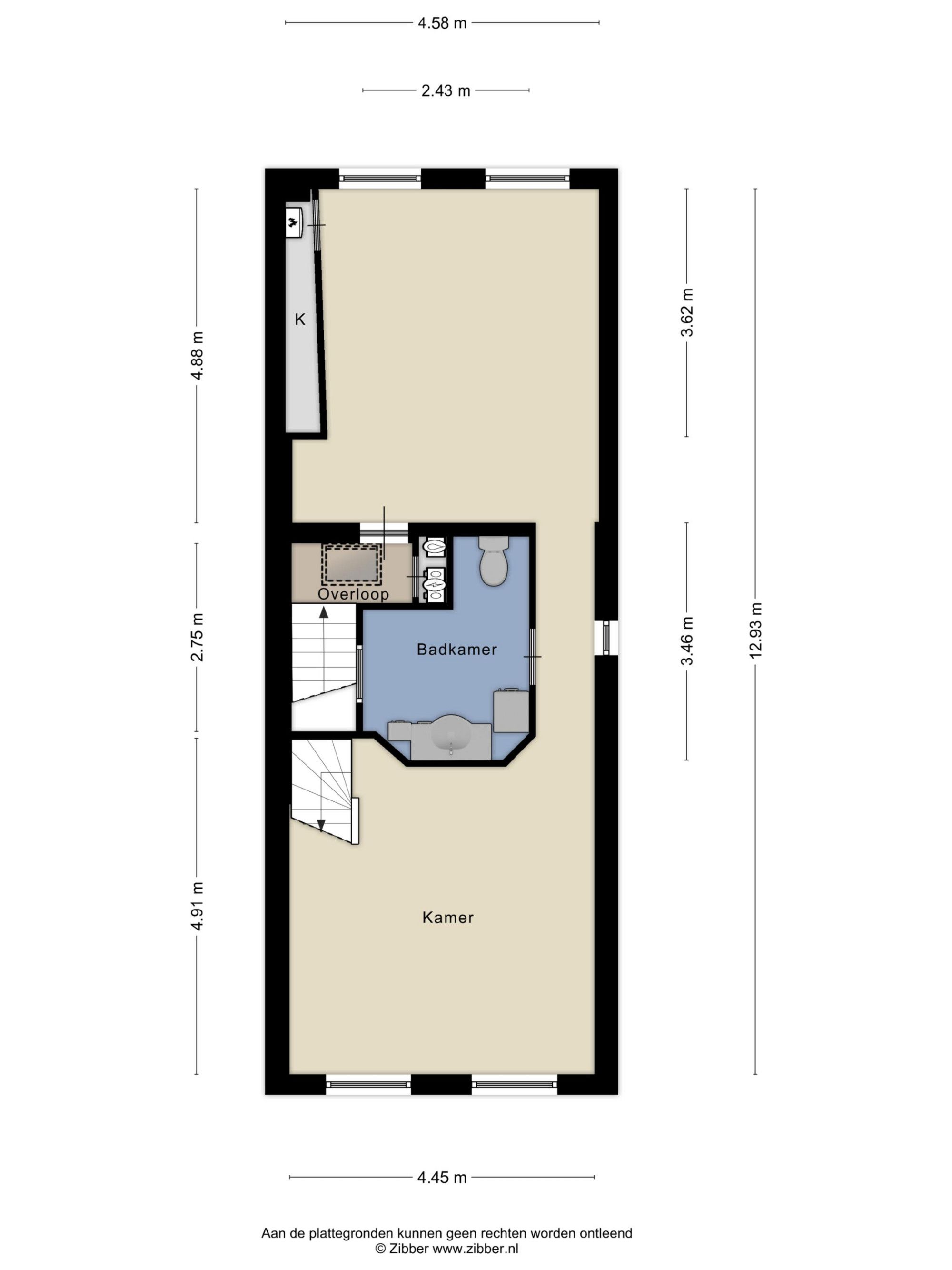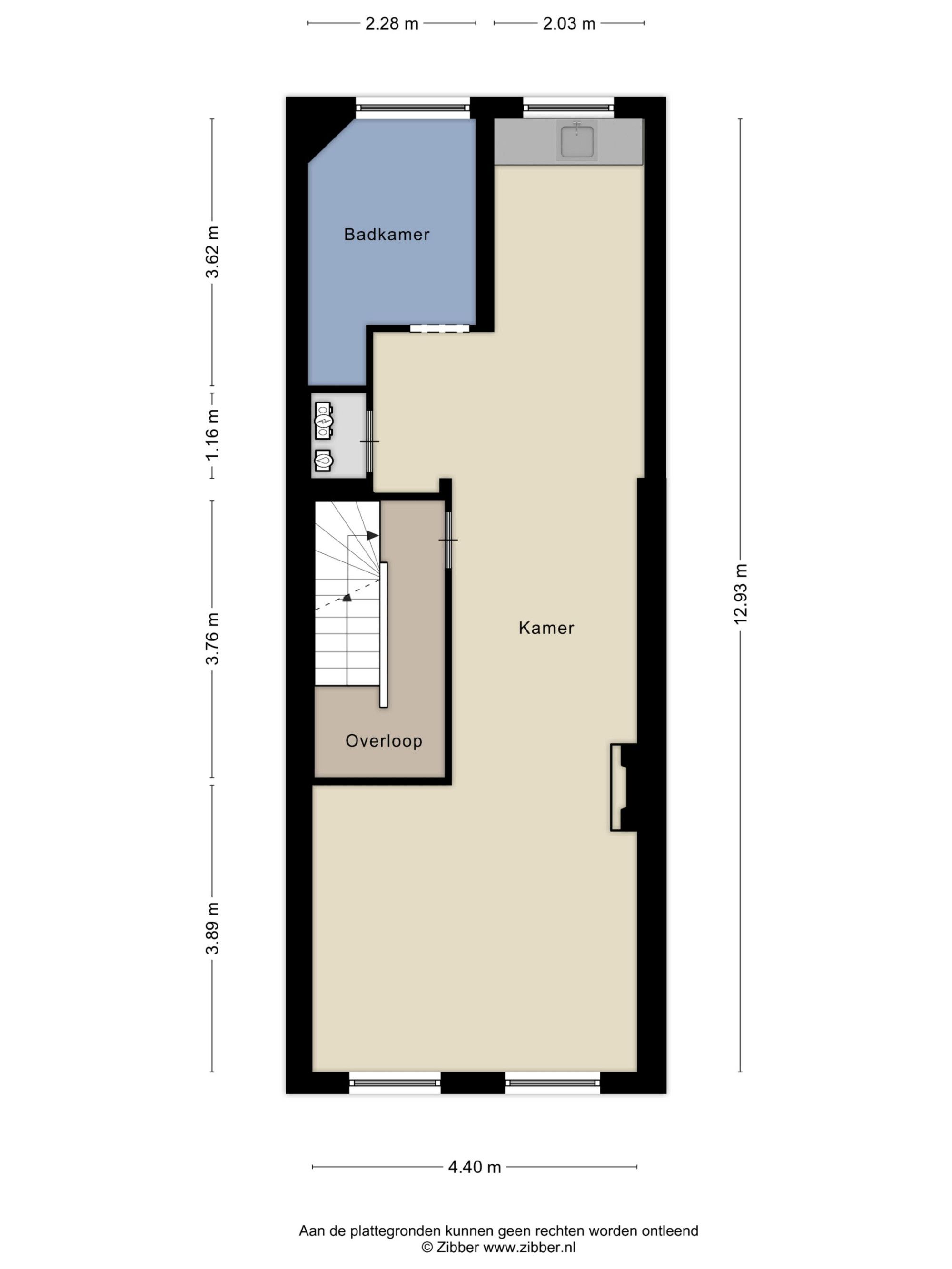 - Twee met elkaar verbonden kamers van respectievelijk ca. 12 m² en ca. 28 m².