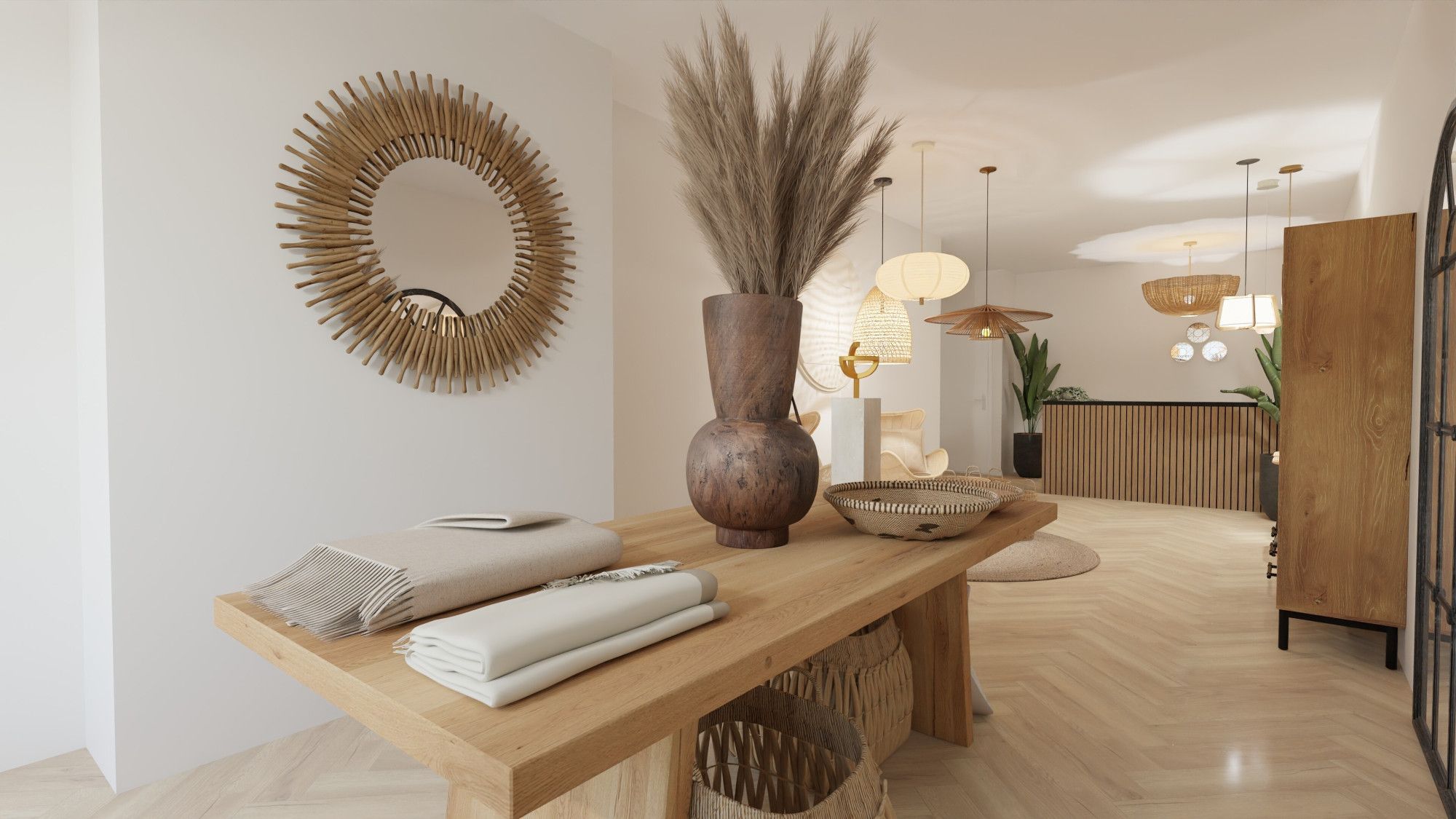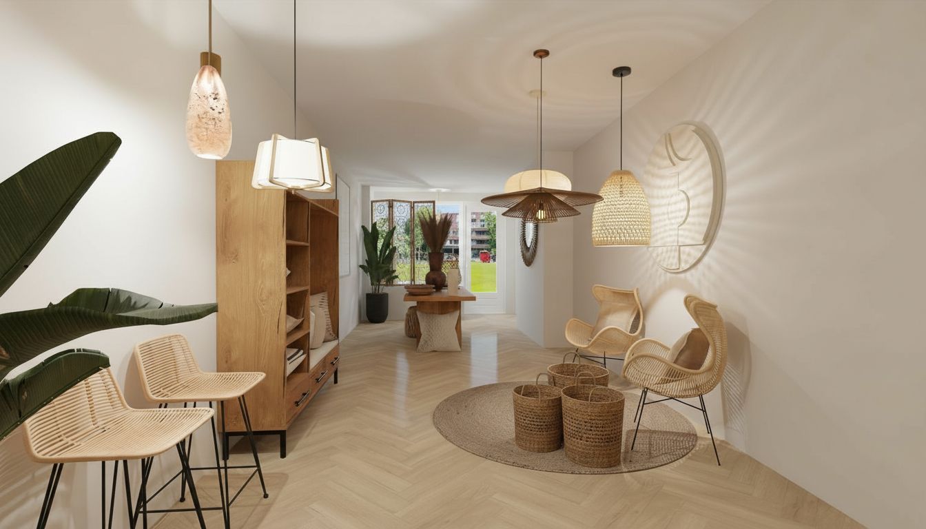 - Ontvangsthal met de meterkast, trappenhuis en toegang tot de woonkamer.