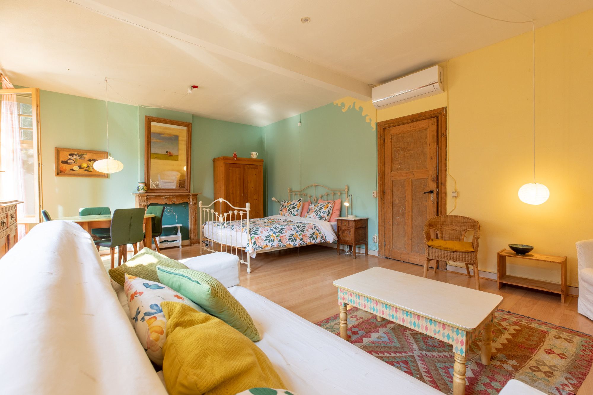 Hal. Zeer ruime slaap-/woonkamer over de volle breedte van de woning, voorzien van airco.