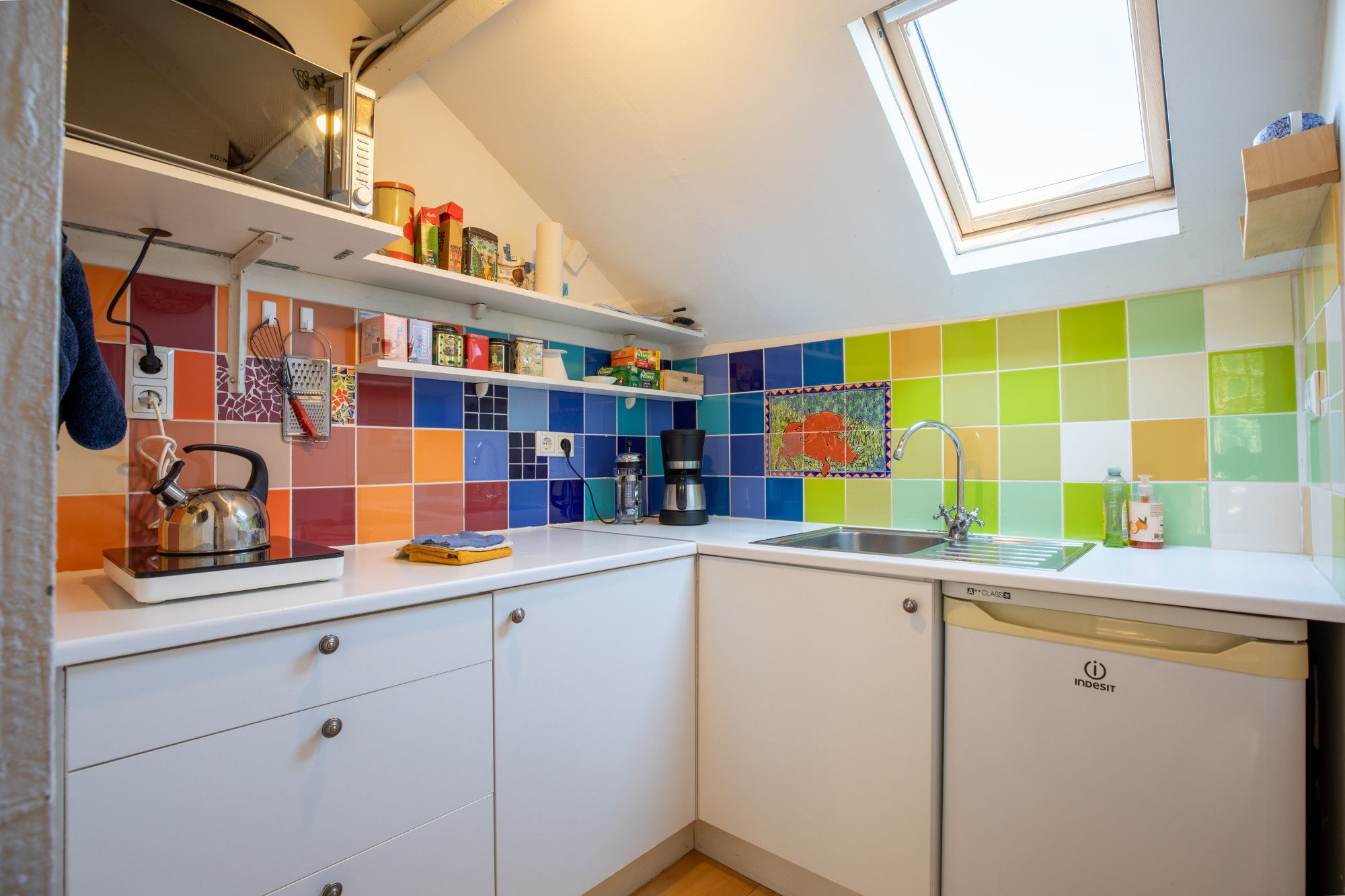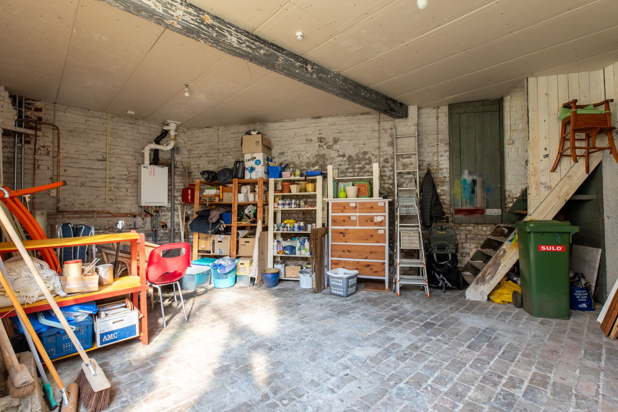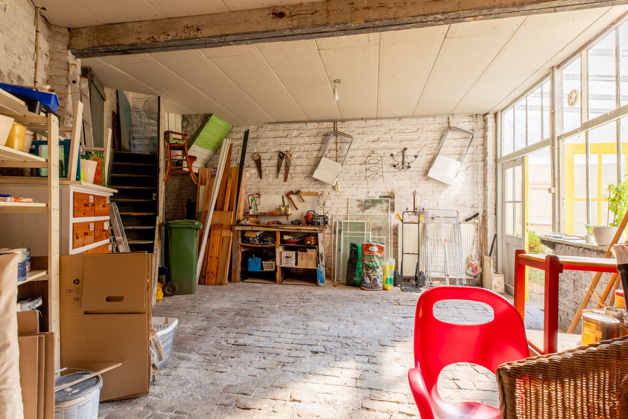 Aan de achterzijde gelegen multifunctionele ruimte (berging/atelier/werkplaats) van circa 32m² met trap naar de eerste verdieping.