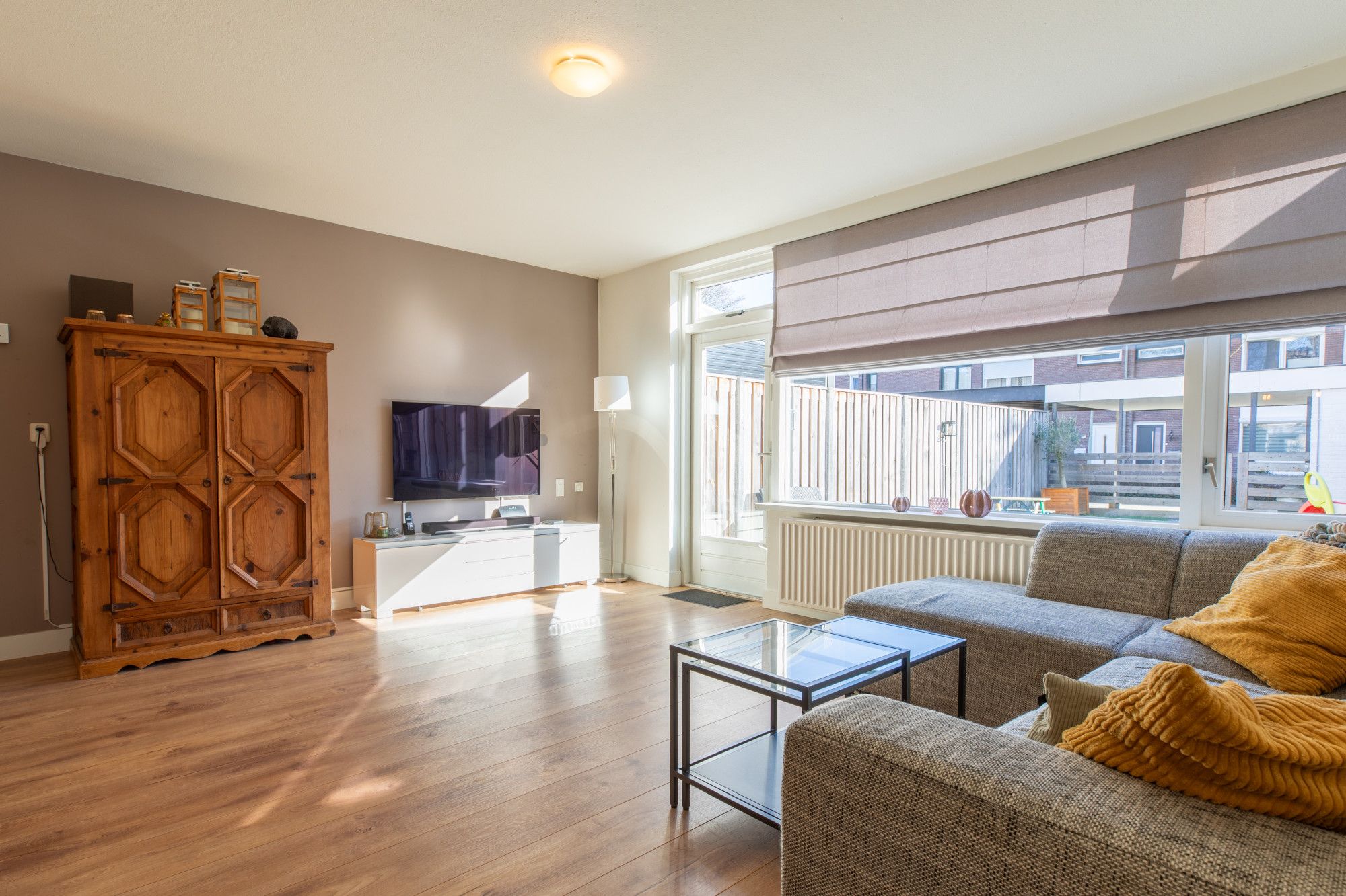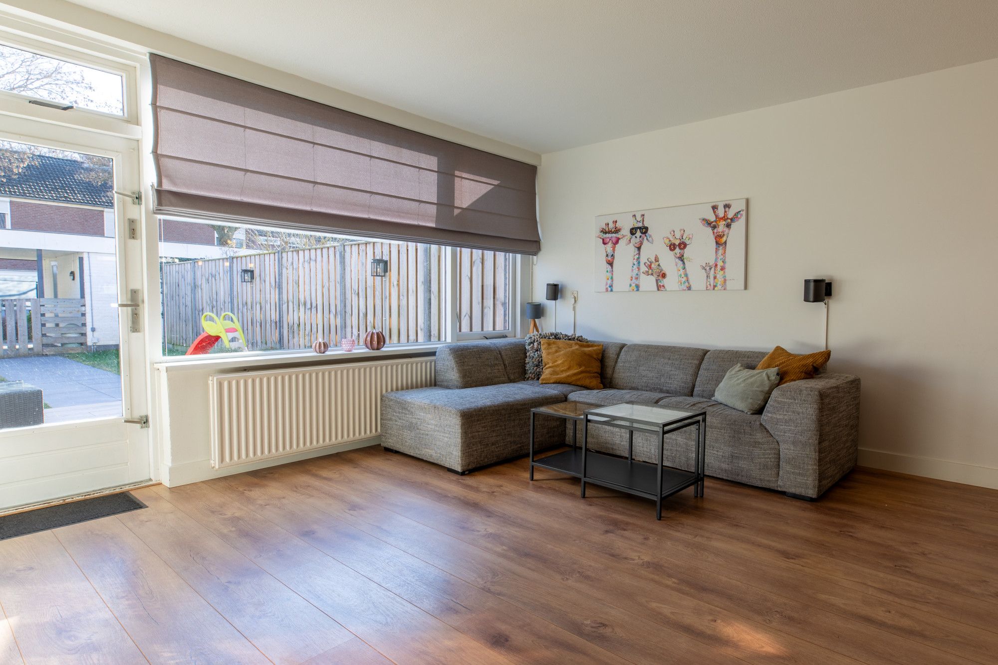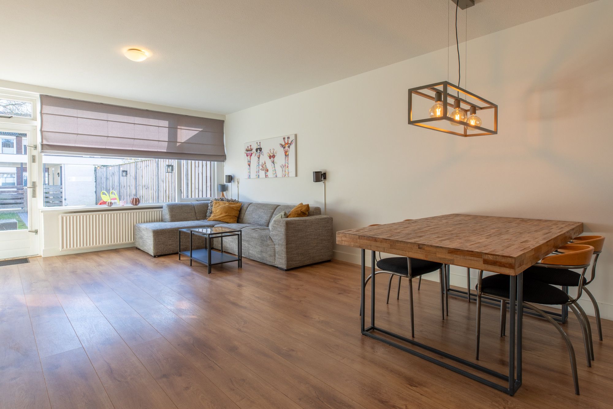 De gehele begane grond is voorzien van een laminaatvloer.