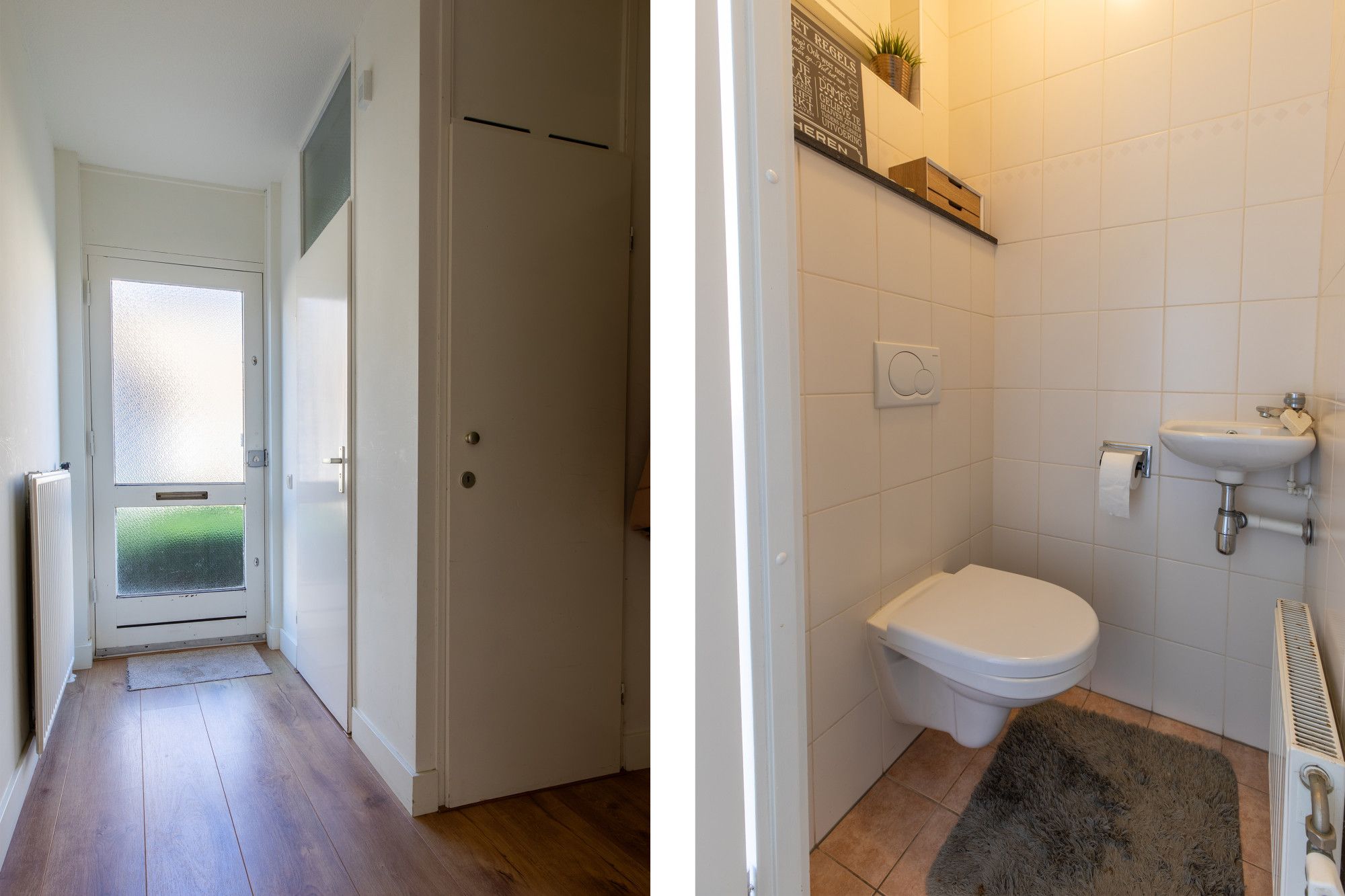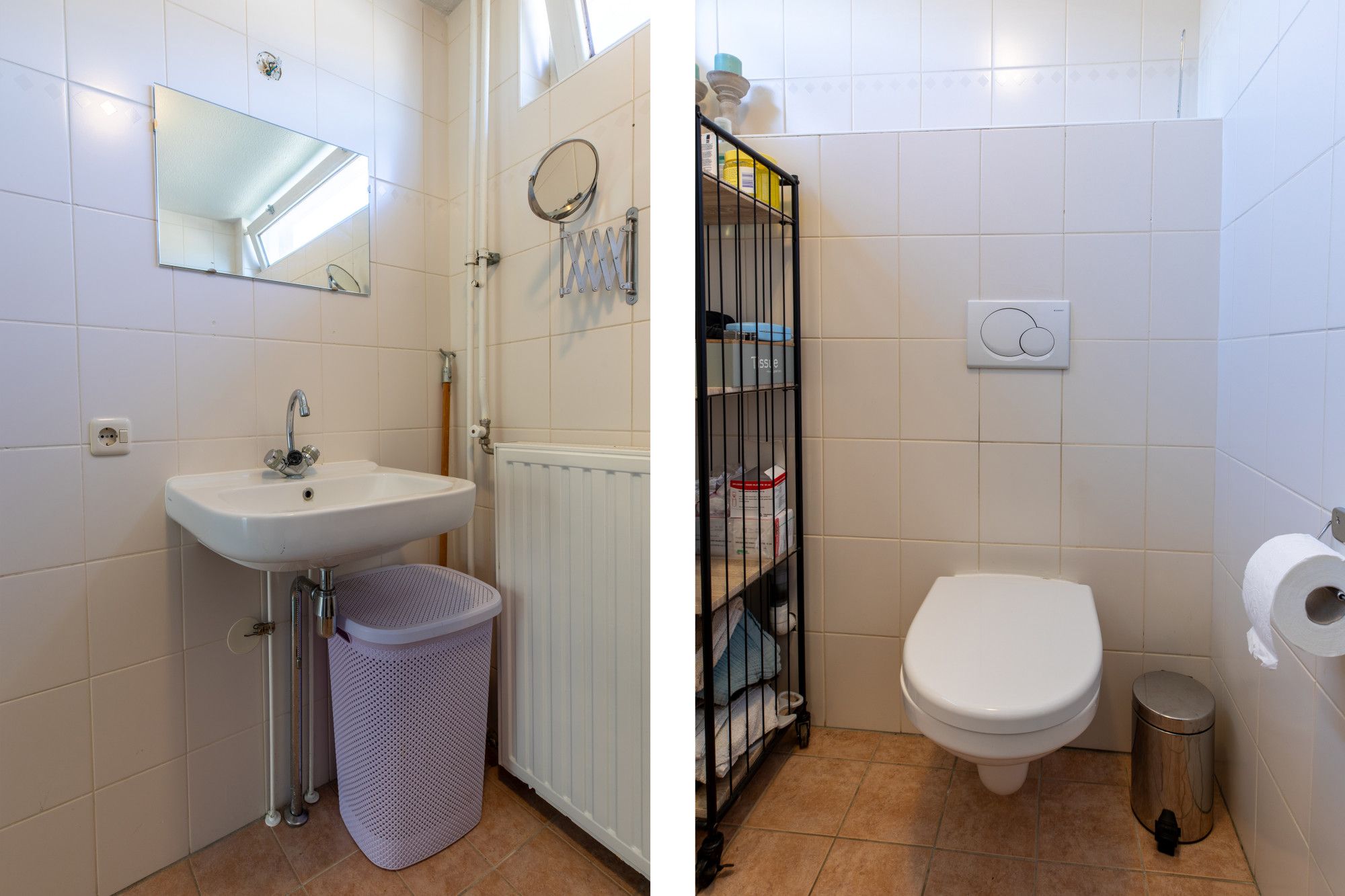 - Betegelde toiletruimte voorzien van zwevend closet en fonteintje.