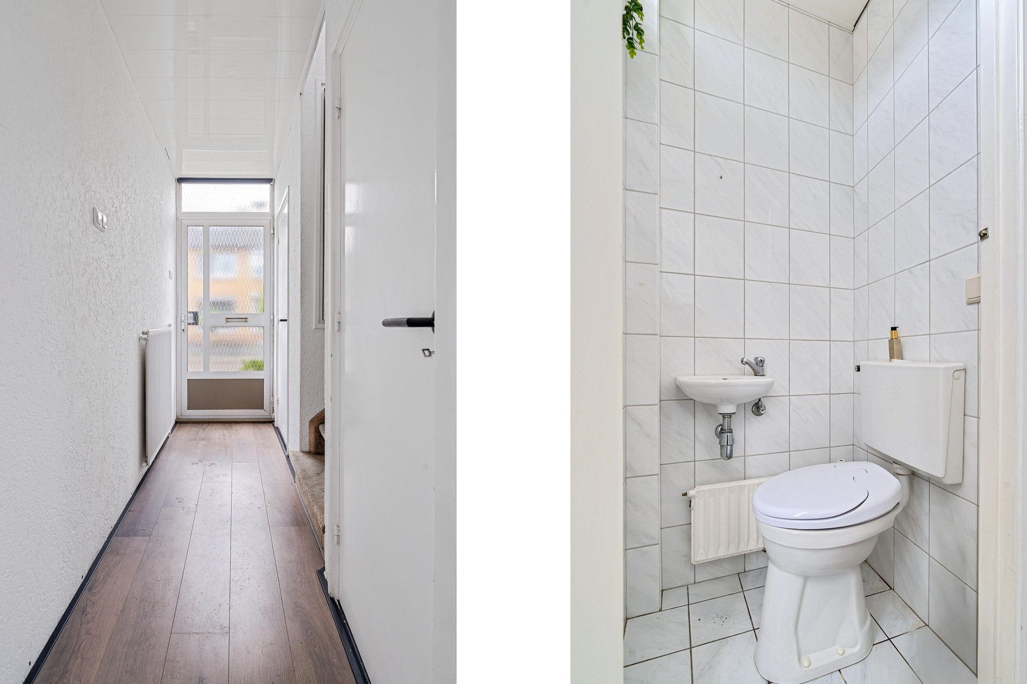 Entree(3.52mx1.06m) met meterkast en volledig betegelde toiletruimte met fonteintje.
