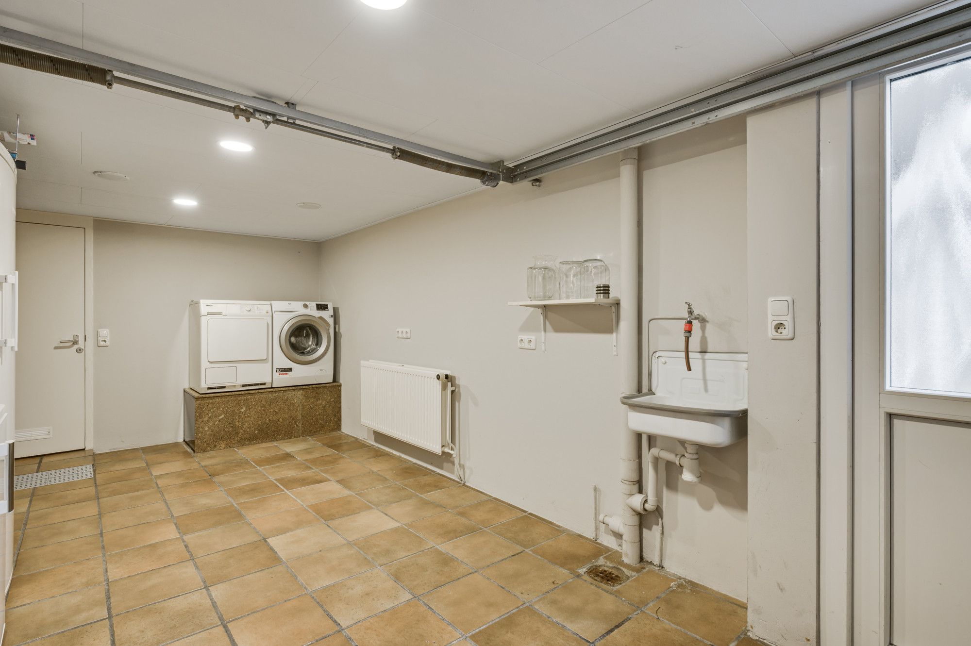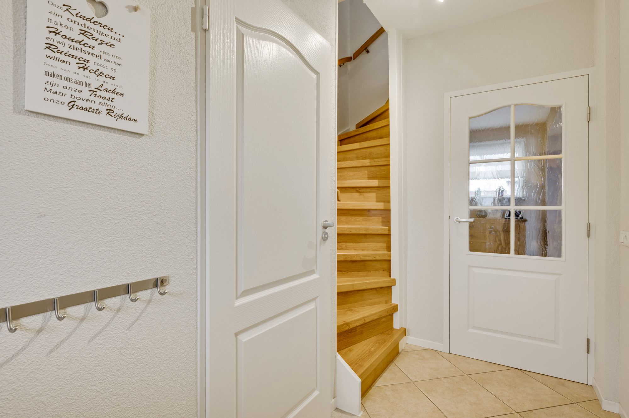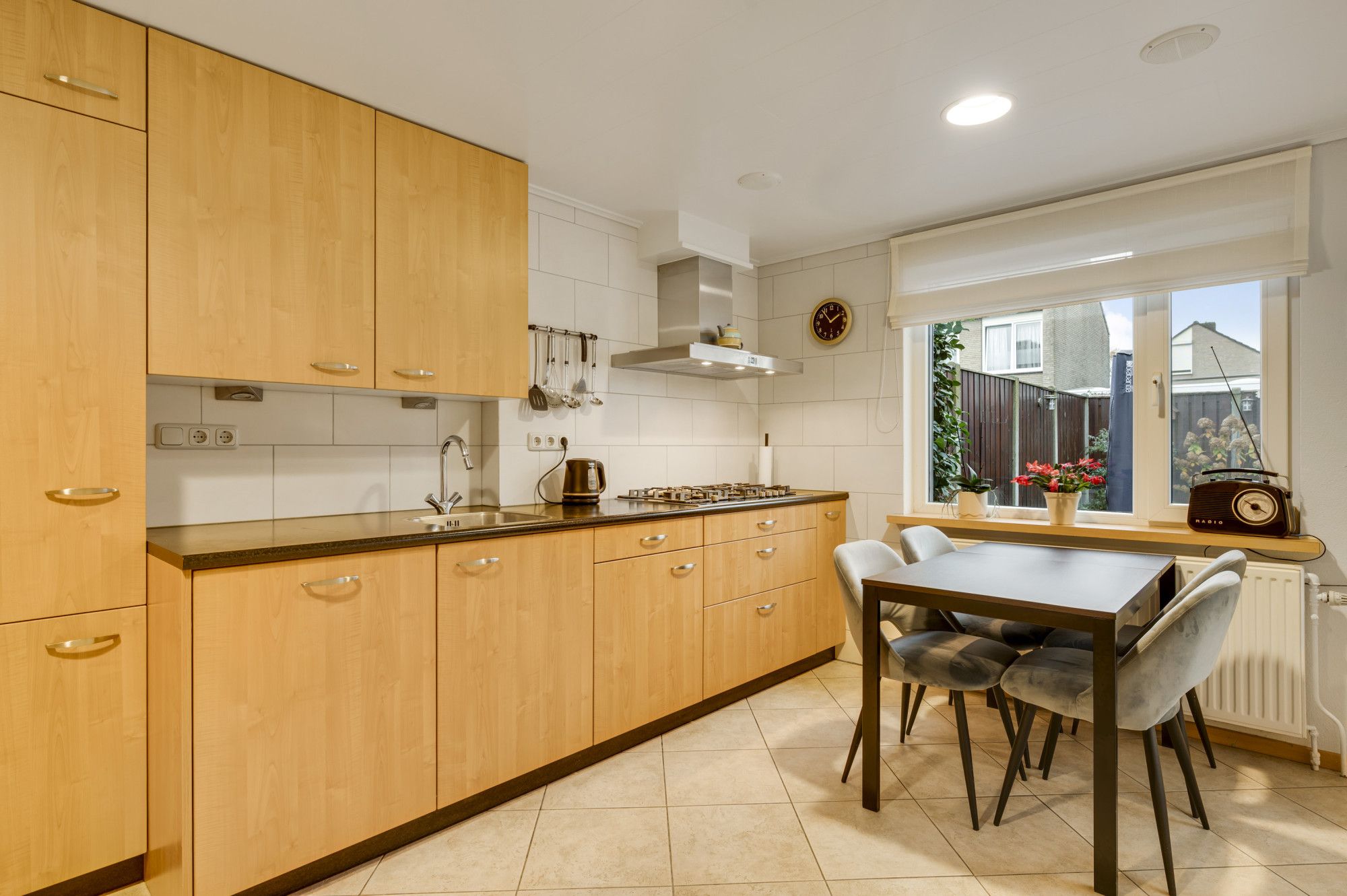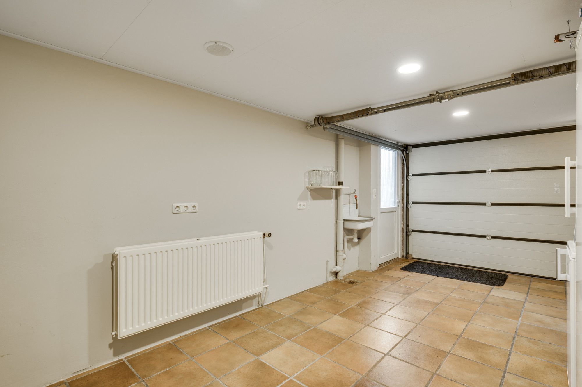 Via de voordeur bereikt u de hal met meterkast, toiletruimte met fonteintje en de trapopgang naar de eerste verdieping. De lichte L-vormige woonkamer is ruim opgezet en biedt een prettig uitzicht op de voorgelegen groenvoorziening. Een praktische trapkast zorgt voor extra opbergruimte. Aangrenzend bevindt zich de aanbouw waar de riante leefkeuken is gerealiseerd. De keuken is opgesteld in twee delen en voorzien van hoogwaardige inbouwapparatuur: een 5-pits gasfornuis, afzuigkap, koelkast, combi-oven, magnetron en een vaatwasser. Vanuit de keuken bereikt u zowel de inpandige garage als de achtertuin. De garage is uitgerust met een elektrische kantelpoort, loopdeur naar de oprit, water, elektra, verwarming en de aansluitingen voor witgoed. Een ideale ruimte voor hobby’s, opslag of het stallen van de auto. De begane grond is voorzien van een tegelvloer.