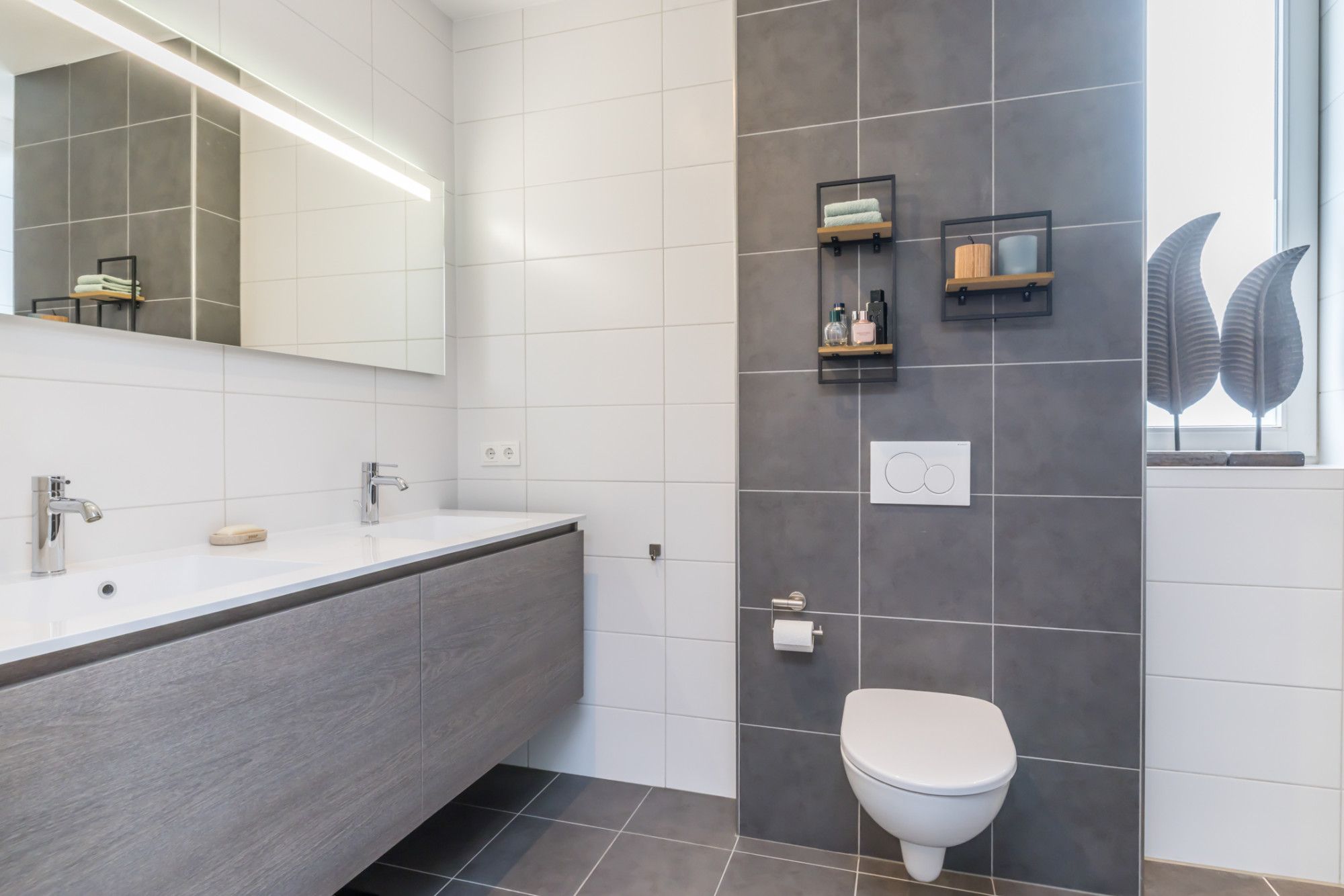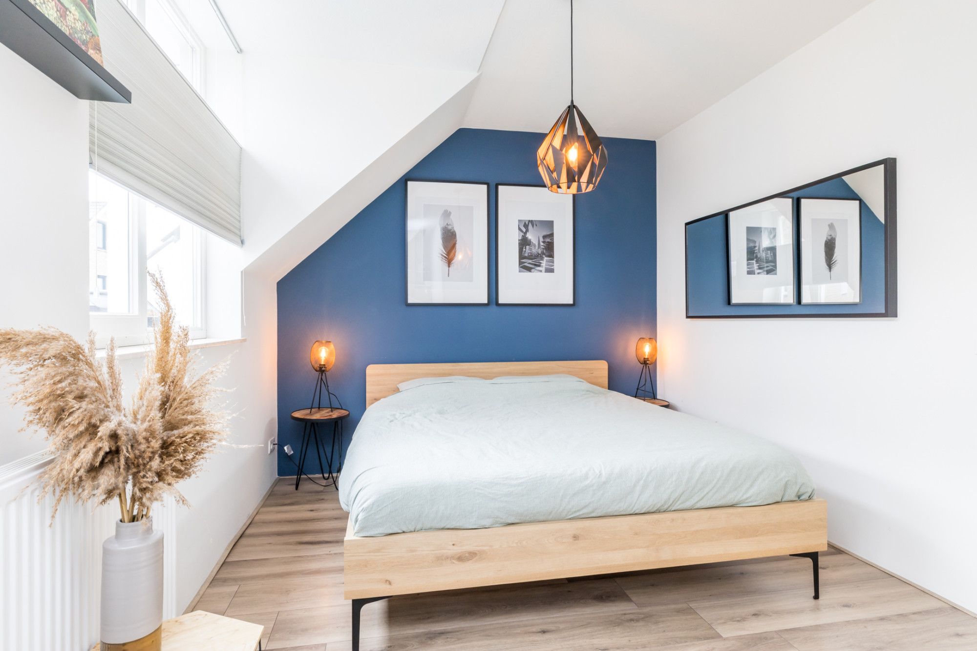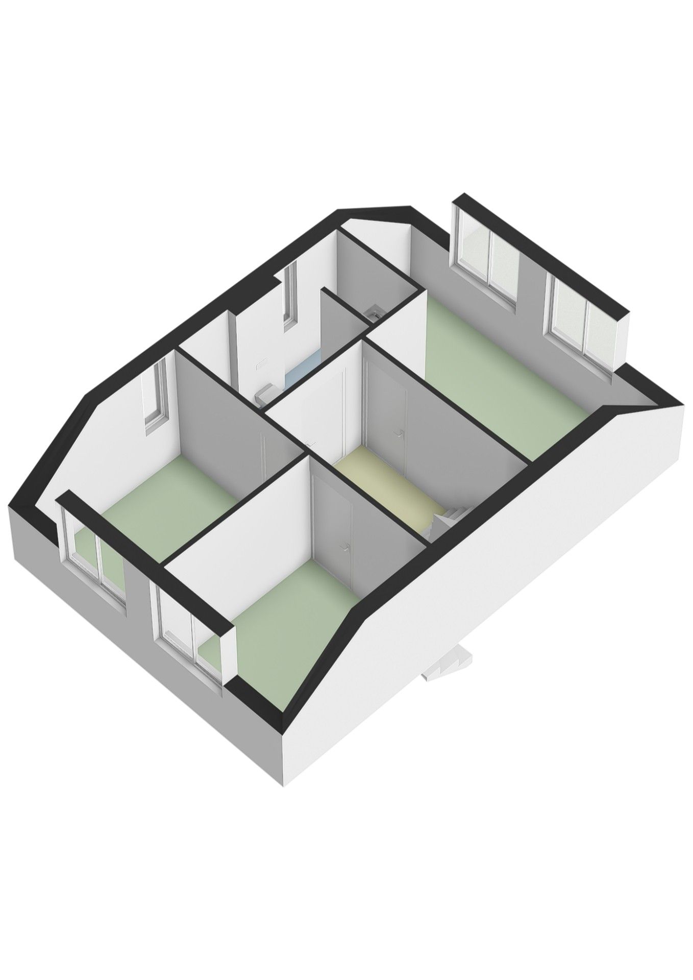 Overloop met toegang tot 3 slaapkamers en moderne badkamer. Slaapkamer I (3,02 m x 2,89 m) is net als slaapkamer II (3,02 m x 2,49 m) aan de voorzijde gelegen. Slaapkamer III (5,48 m/ 3,54 m x 2,98 m/ 1,58 m) is aan de achterzijde gelegen. De moderne badkamer (3,47 m x 1,82 m) v.v. ruime inloopdouche, zwevend closet en dubbele wastafel/ badmeubel.