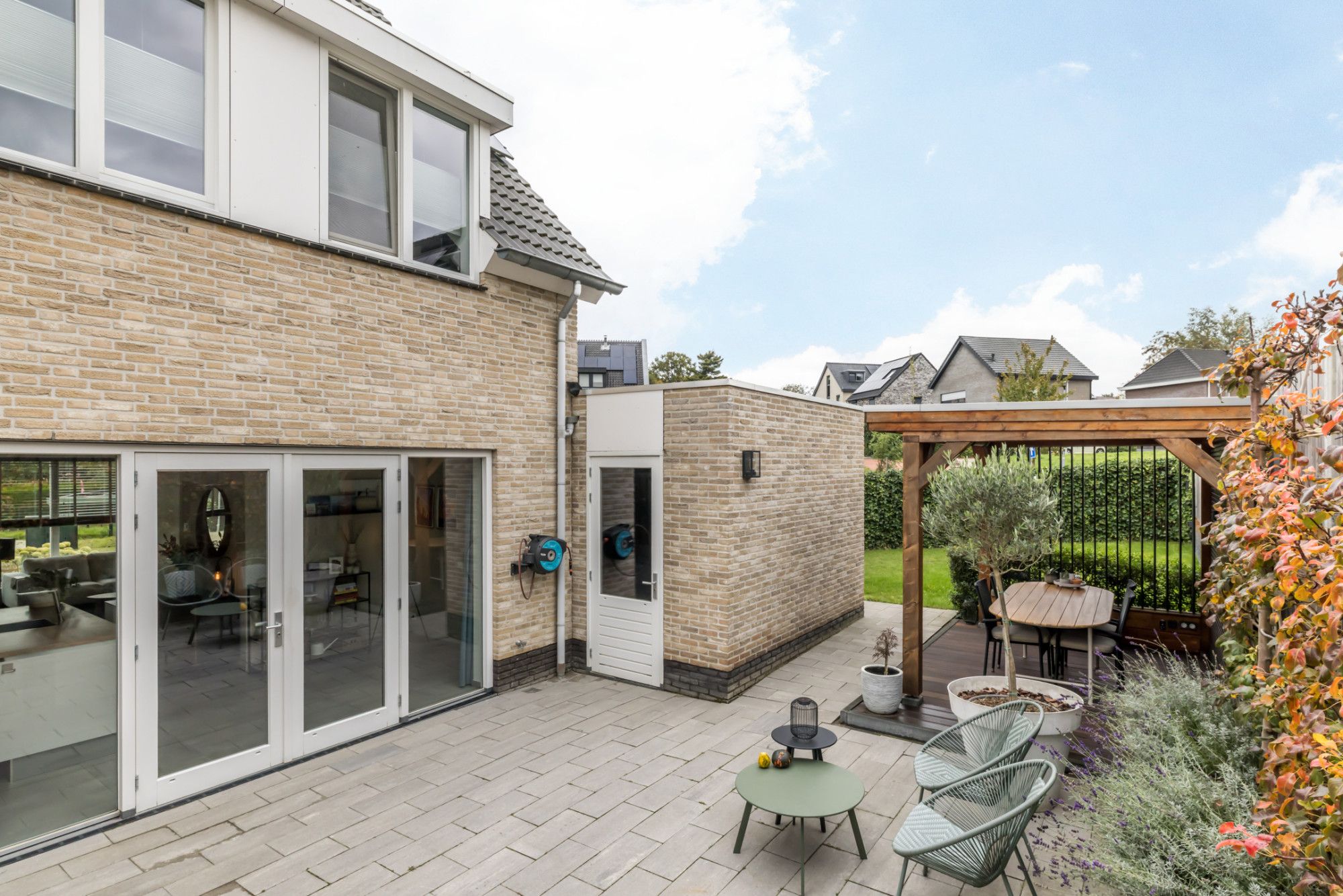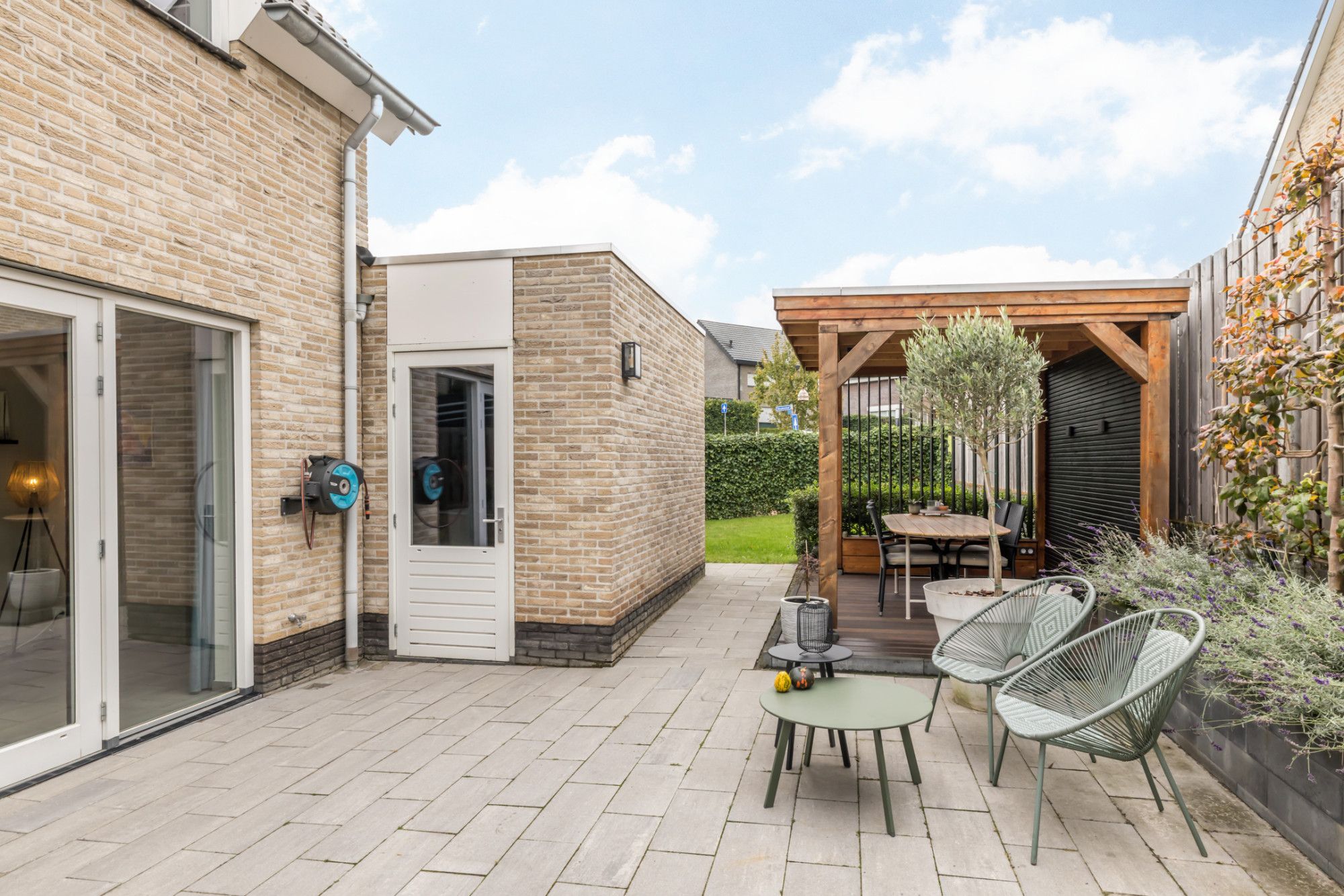 De keurig onderhouden tuin is v.v. een sfeervol overdekt terras (3,13 m x 2,60 m) en aan de zijkant gelegen grasweide. Tevens heeft men toegang tot de garage en middels poort is de tuin achterom bereikbaar.