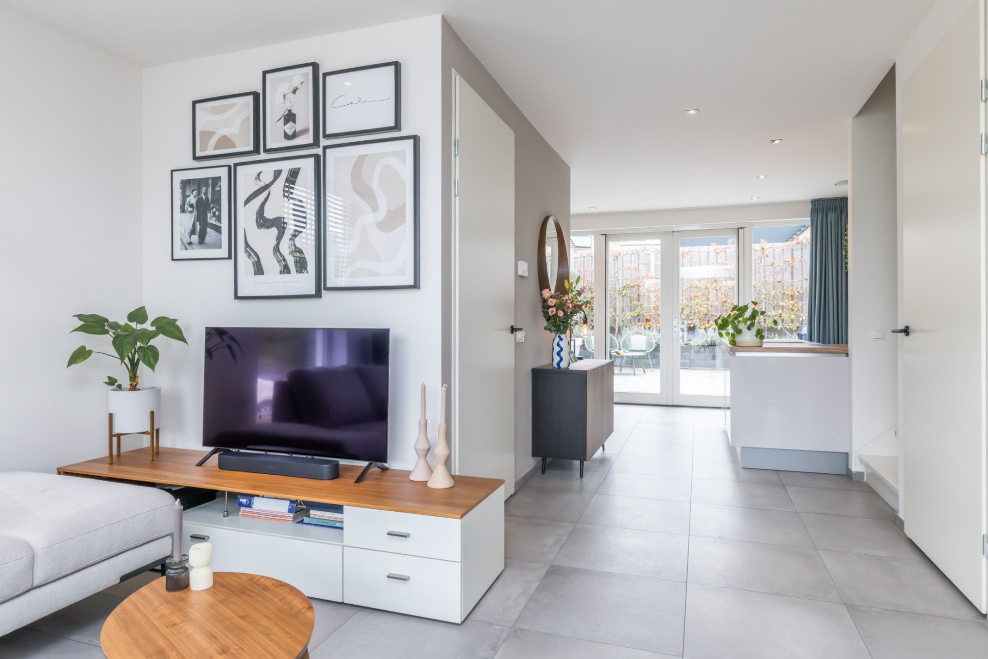 Vanuit de ruime oprit te bereiken entree, de hal-entree biedt toegang tot moderne toiletruimte en living. De sfeervolle living is verdeeld in woonkamer en openkeuken. De aan de voorzijde gelegen woonkamer (5,50 m x 3,00 m) kenmerkt zich de door vele daglichttoetreding en heeft een open verbinding met de keuken. Tevens heeft men toegang tot een ruime bergkast.