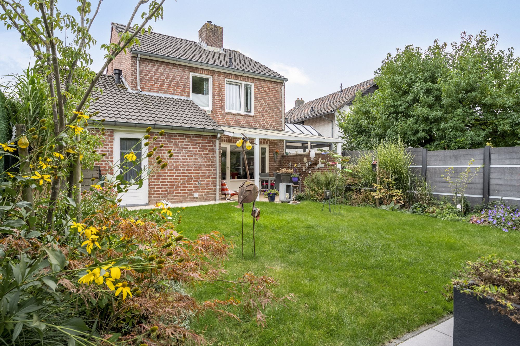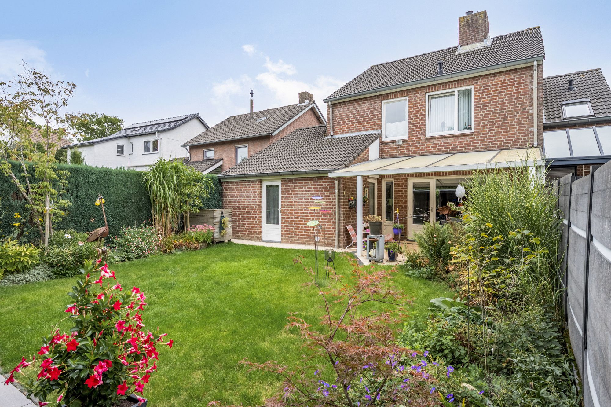 Goed omheinde en keurige aangelegde achtertuin. De achtertuin is aan de achterzijde volledig vrij gelegen waardoor er optimale privacy aanwezig is.