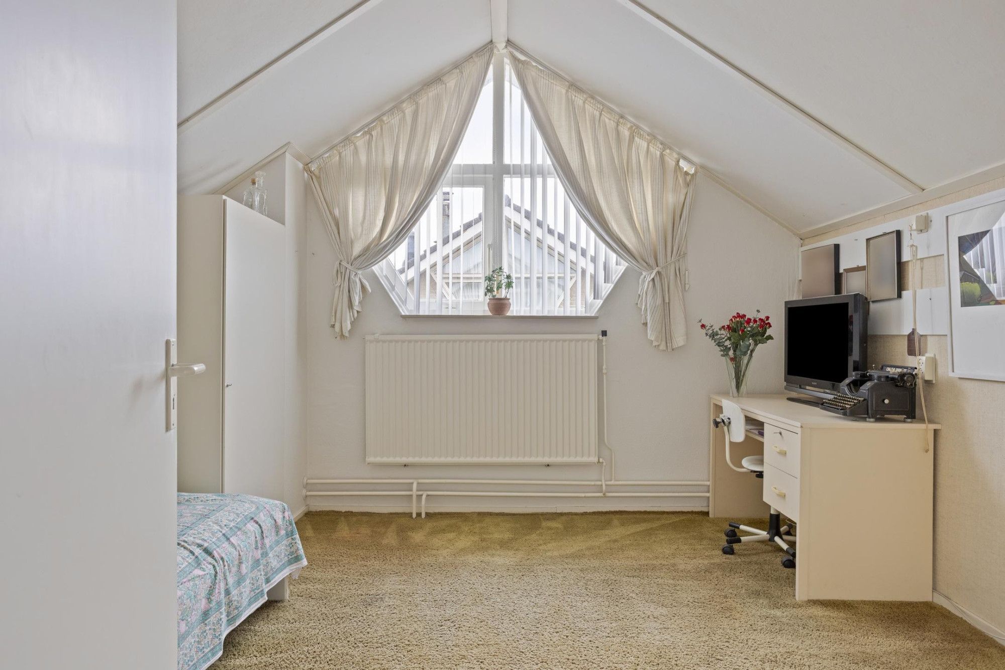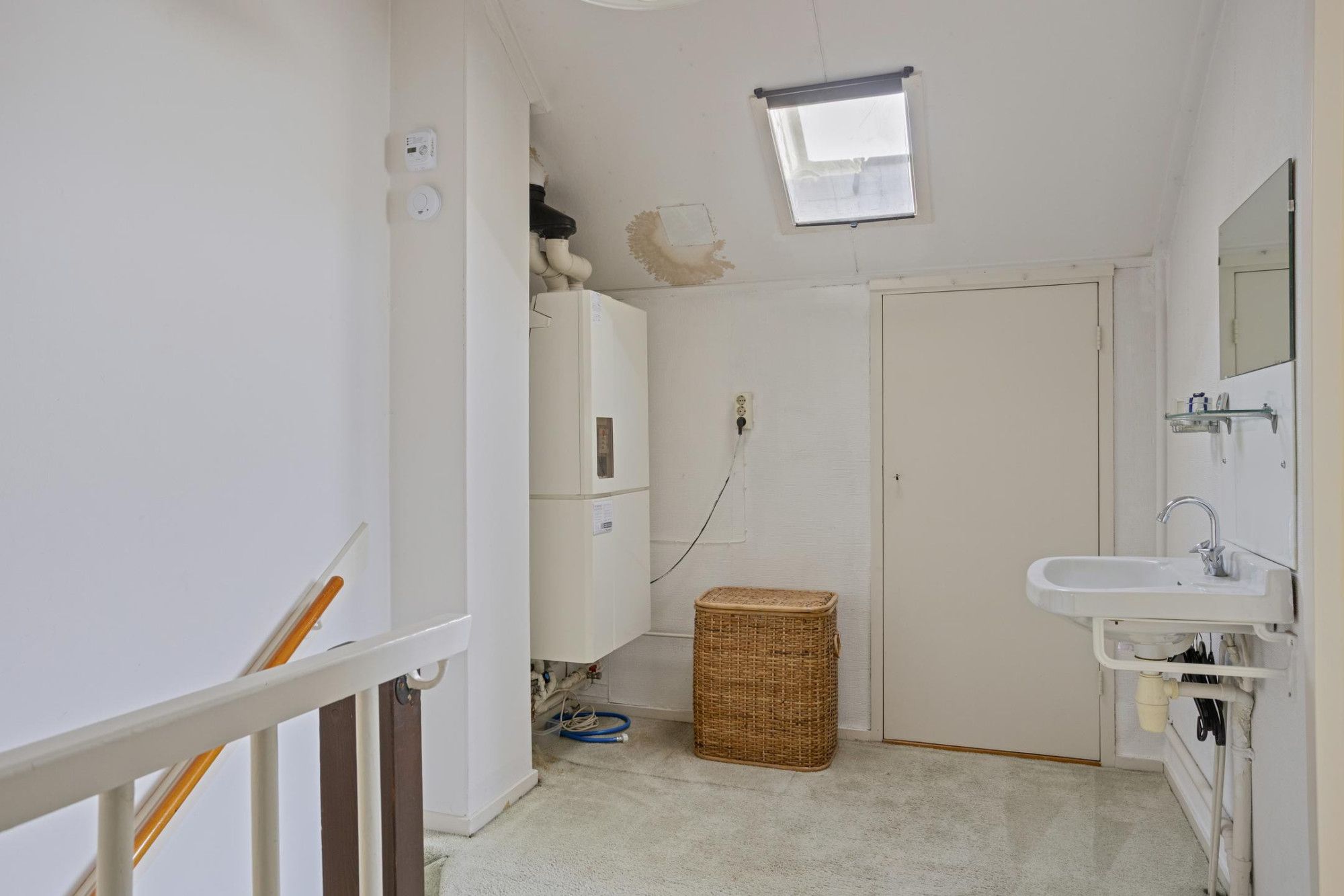 Via de vaste trap kom je op de zolder, hier is de technische ruimte met de CV ketel, hier is eventueel ook de mogelijkheid voor een extra slaap- of werkkamer te maken.