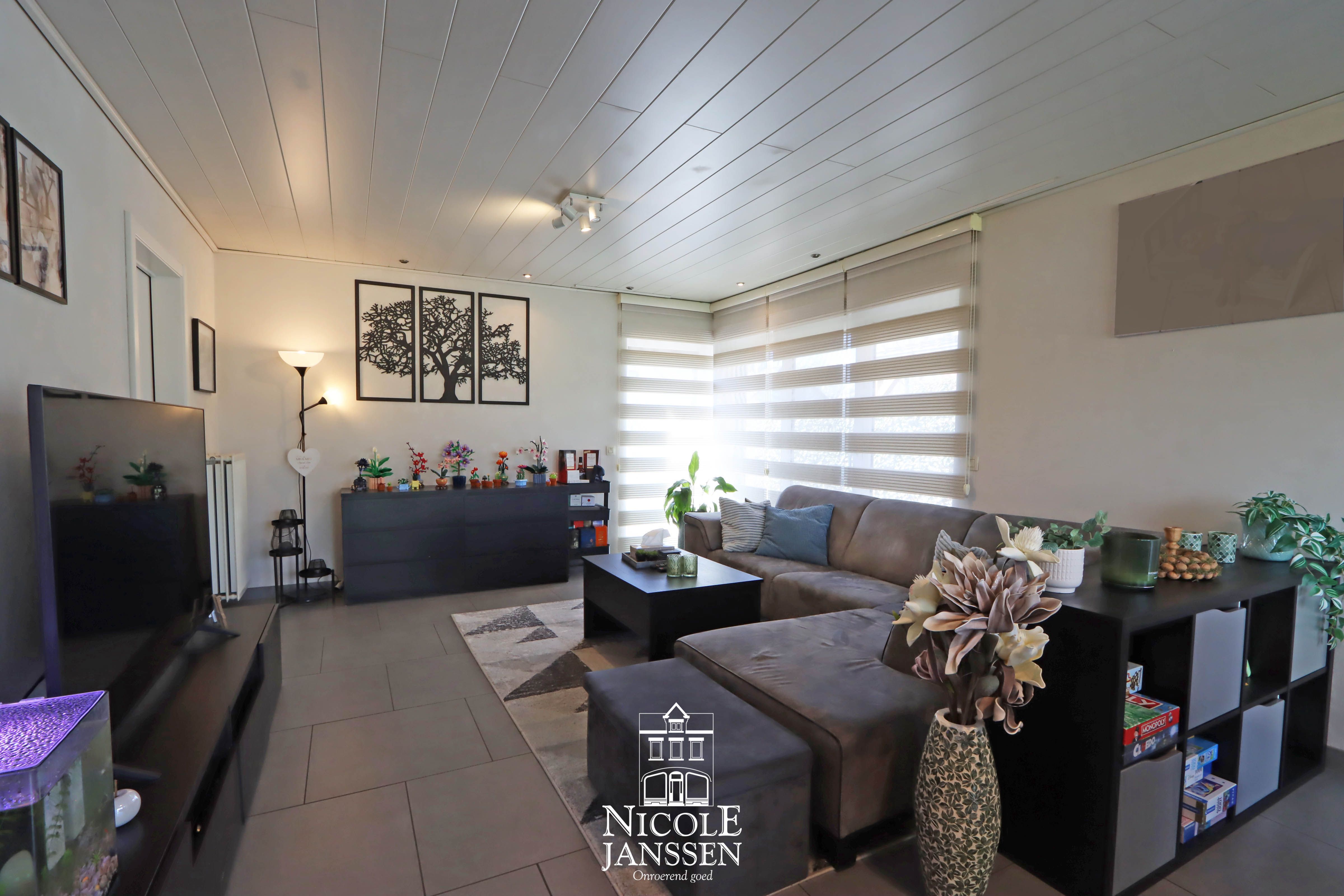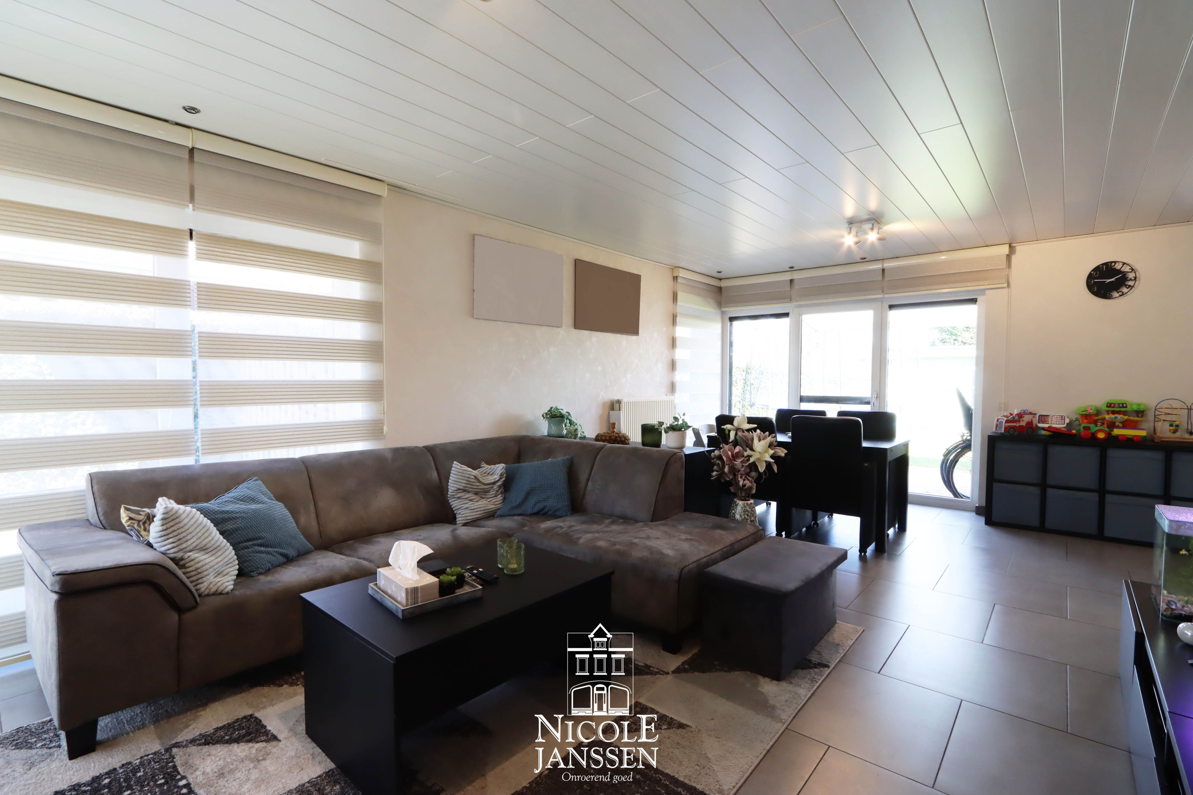 - Leefruimte met tegelvloer, veel licht en zicht op de tuin