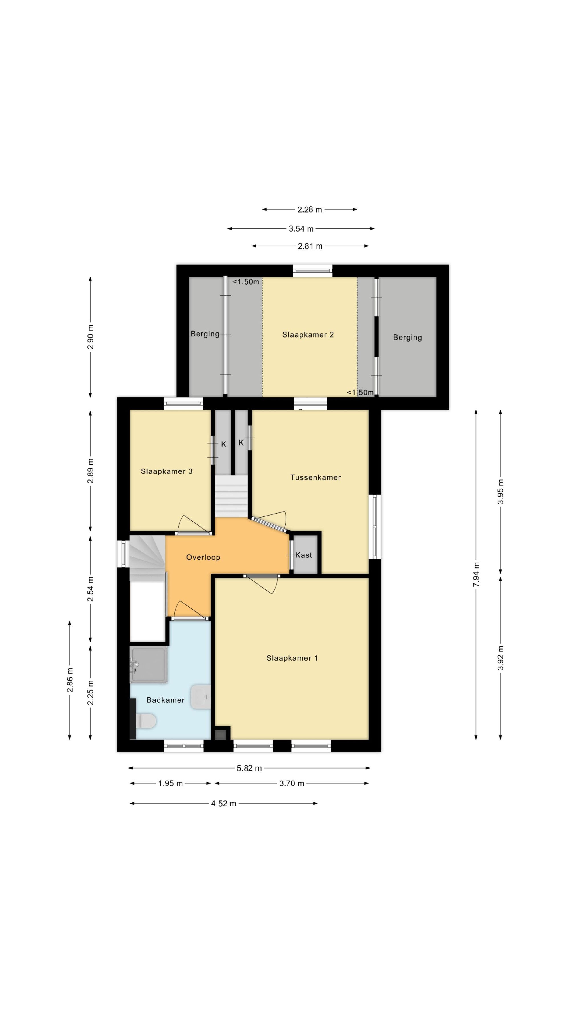 Drie slaapkamers, waaronder een royale ouderslaapkamer (in twee delen opgedeeld)