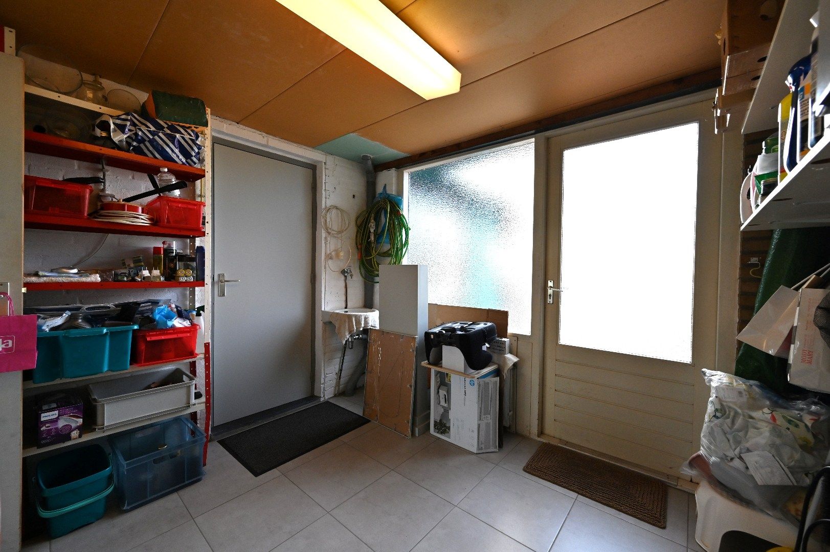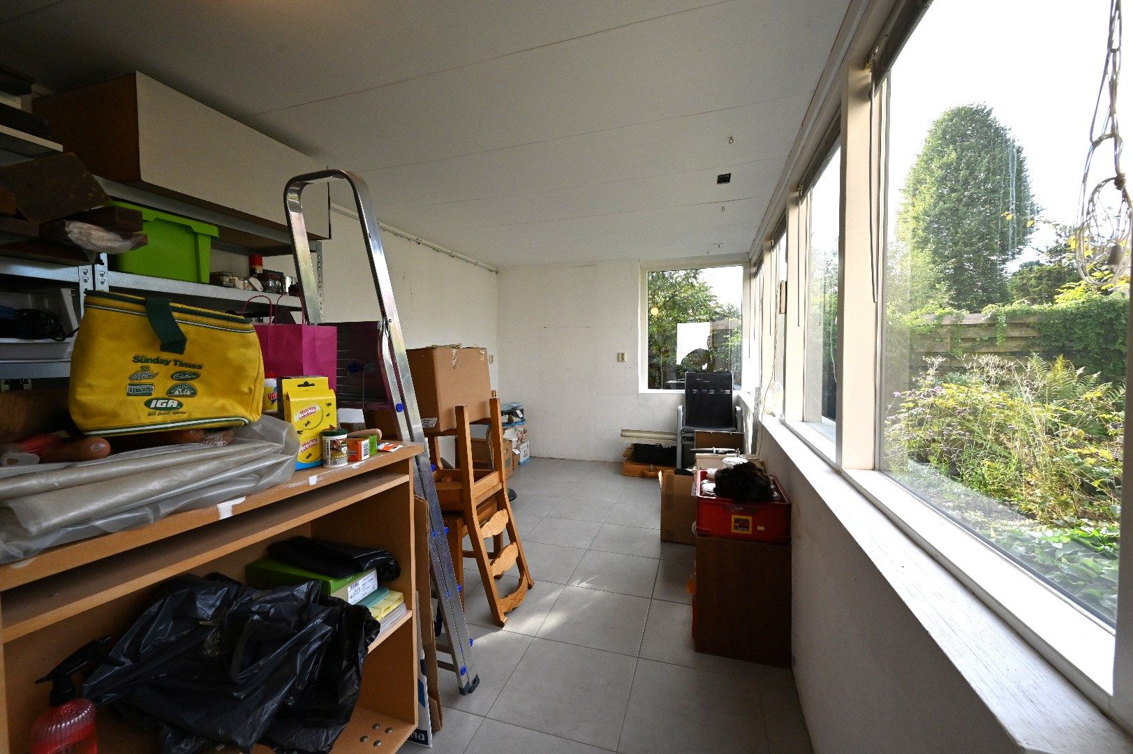 - De multifunctionele ruimte heeft houten kozijnen met zowel enkele als dubbele beglazing;
