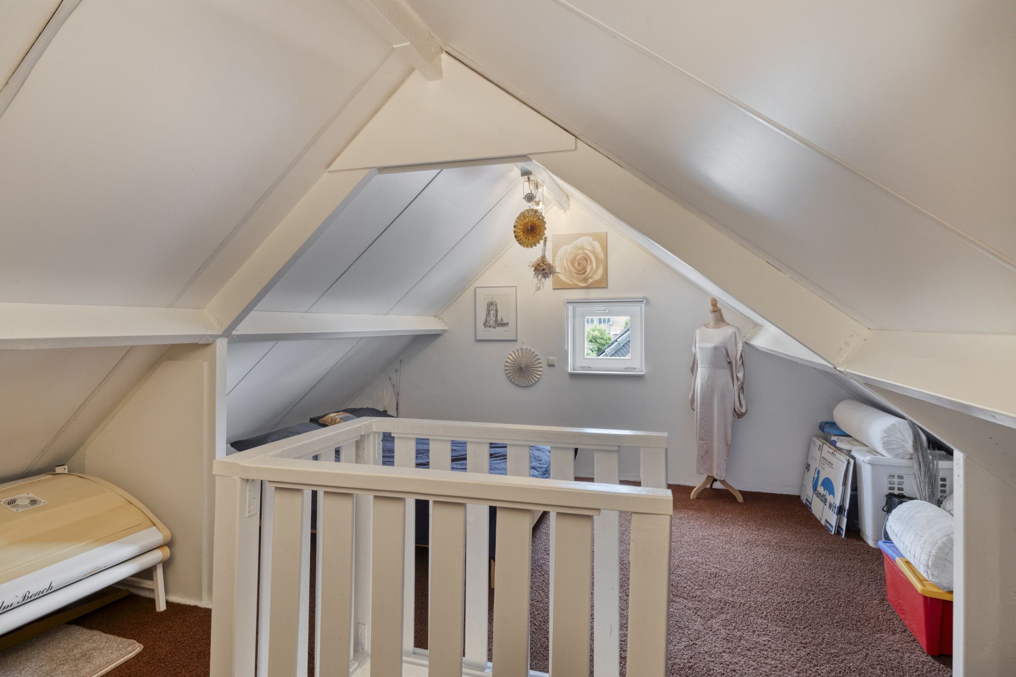 Separaat toilet op de verdieping voor extra gemak. Vlizotrap naar de ruime zolder, die tal van mogelijkheden biedt voor opslag of uitbreiding.