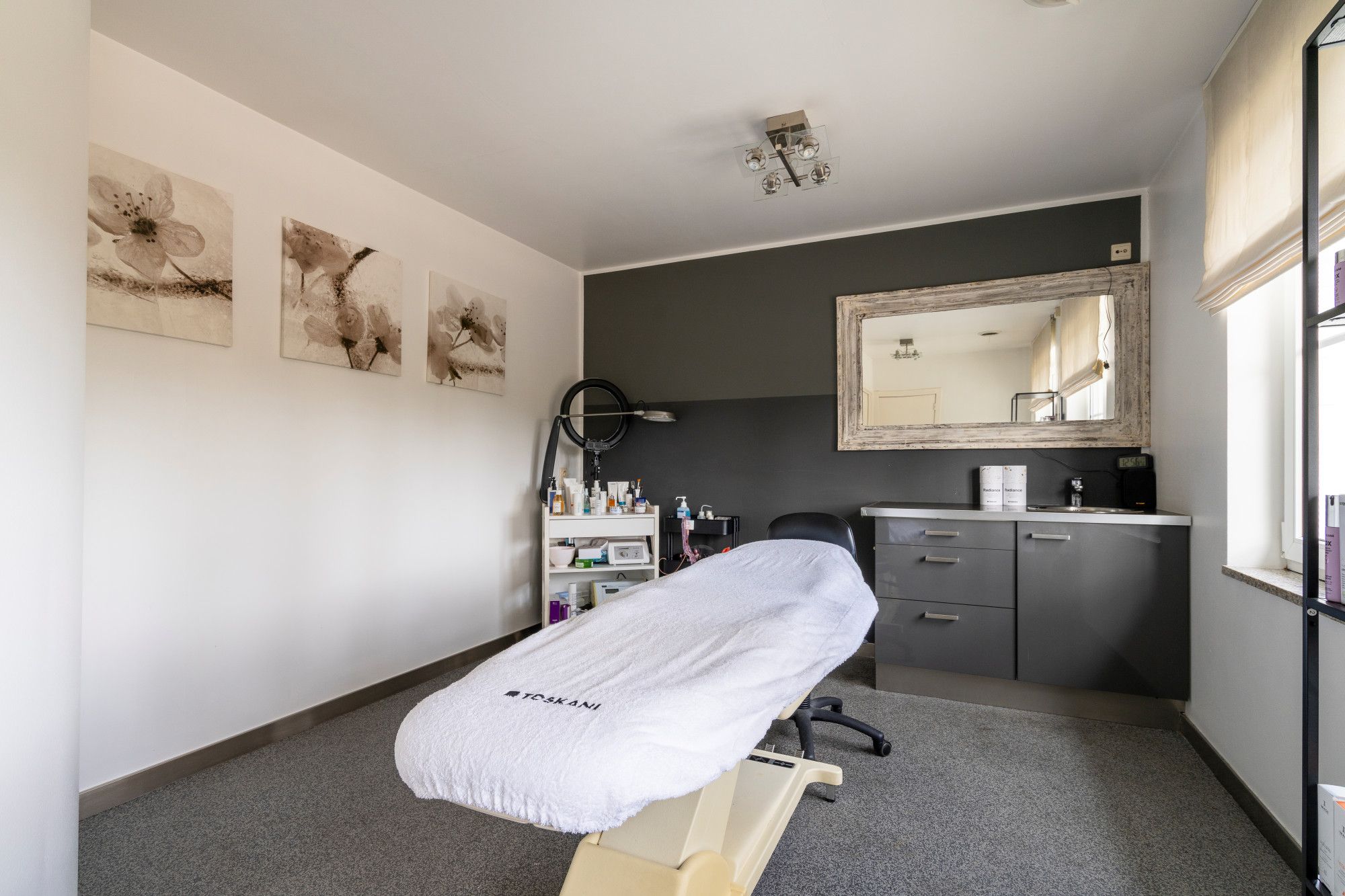 This villa with professional practice space in Riemst is situated on a 1,672 m² plot and offers countless possibilities, allowing you to perfectly combine living and working thanks to its well-thought-out layout and generous space. The home features three bedrooms and two bathrooms. The practice area currently comprises five spacious treatment rooms, and there is ample parking available. The residential and practice areas are currently separated but can easily be merged again.