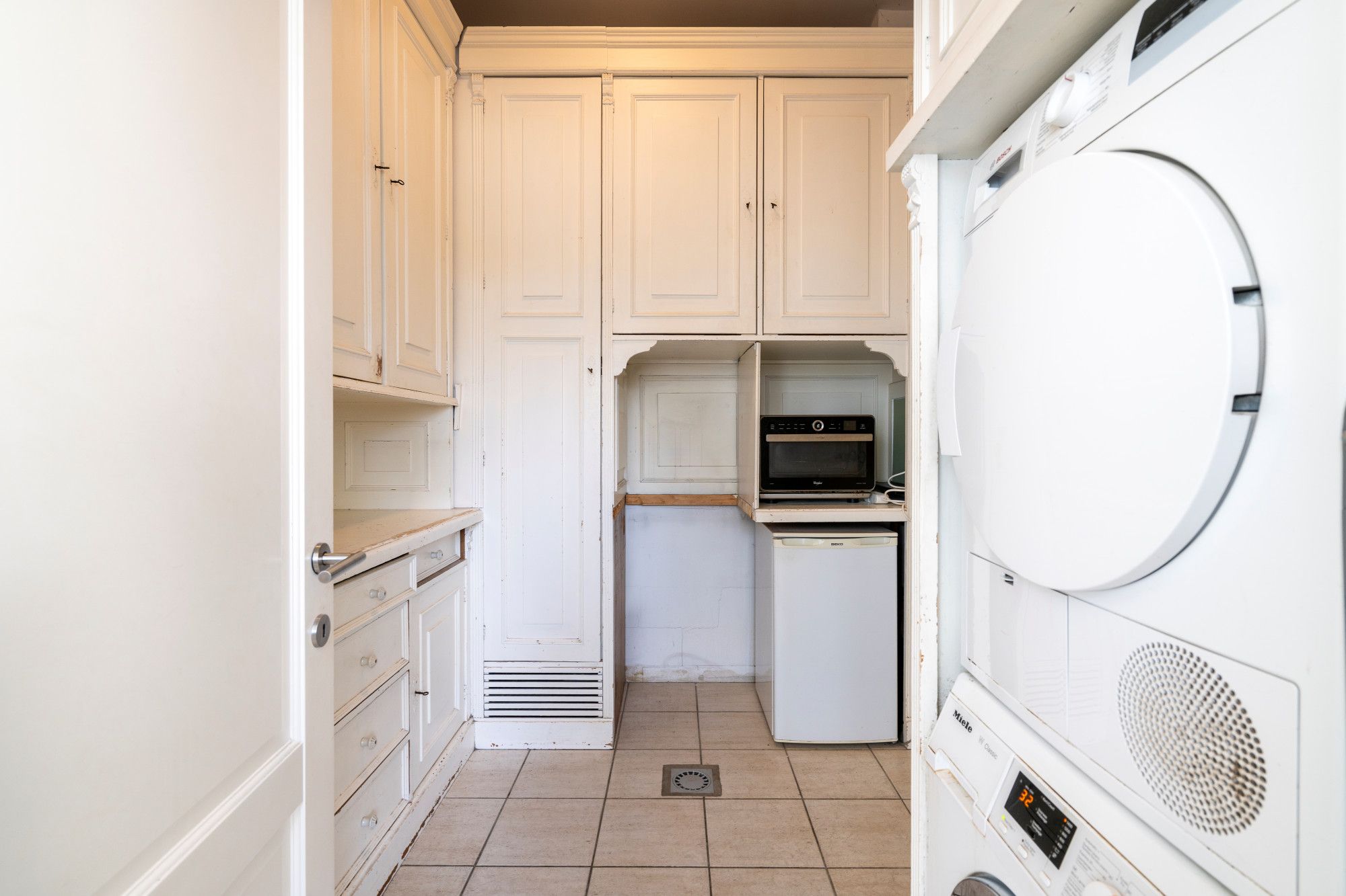 On the ground floor, you are welcomed by a spacious entrance hall with two guest toilets: one for private use and one for professional use. Through two sets of double doors, there is access to both the residential area and the professional area.