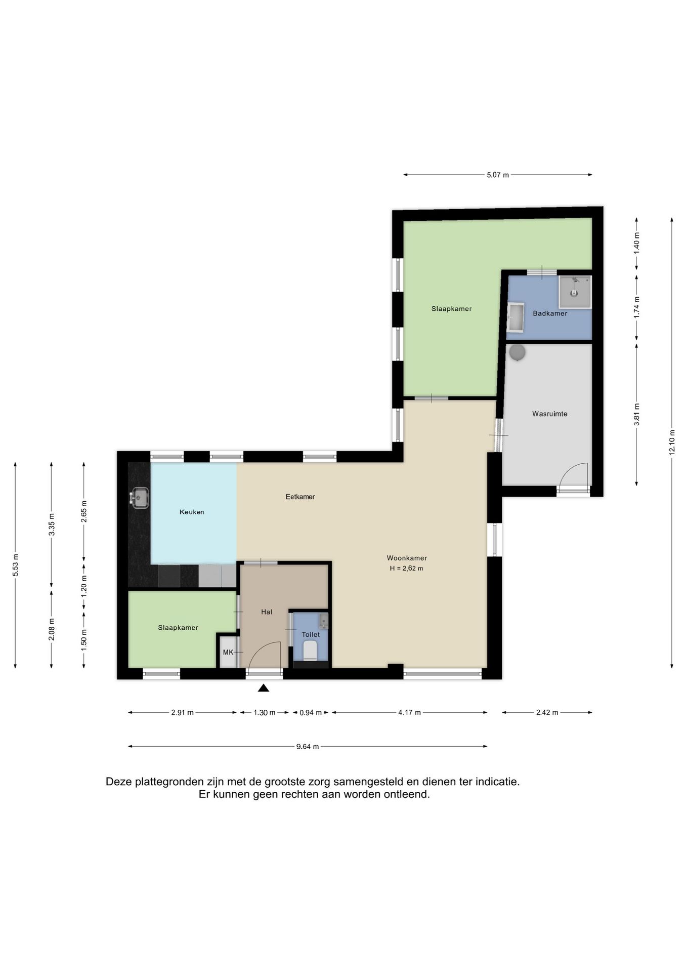 Alle door ons kantoor verstrekte informatie omtrent onroerende zaken, moet beschouwd worden als een uitnodiging om in onderhandeling te treden, en is geheel vrijblijvend! Alle vermelde maten en afmetingen zijn slechts bij benadering. Aan deze beperkte info kunnen geen rechten worden ontleend. Indien in enige documentatie of op enige website informatie staat die niet overeen komt met de werkelijkheid, dan geldt de feitelijke situatie waarin de woning zich bevindt, zoals koper deze tijdens de bezichtiging heeft kunnen waarnemen, en wordt de woning in deze feitelijke situatie/staat verkocht. Een (eventueel) bijgevoegde plattegrond dient uitsluitend als globale indicatie/visualisatie. Hieraan kunnen uitdrukkelijk geen rechten worden ontleend.