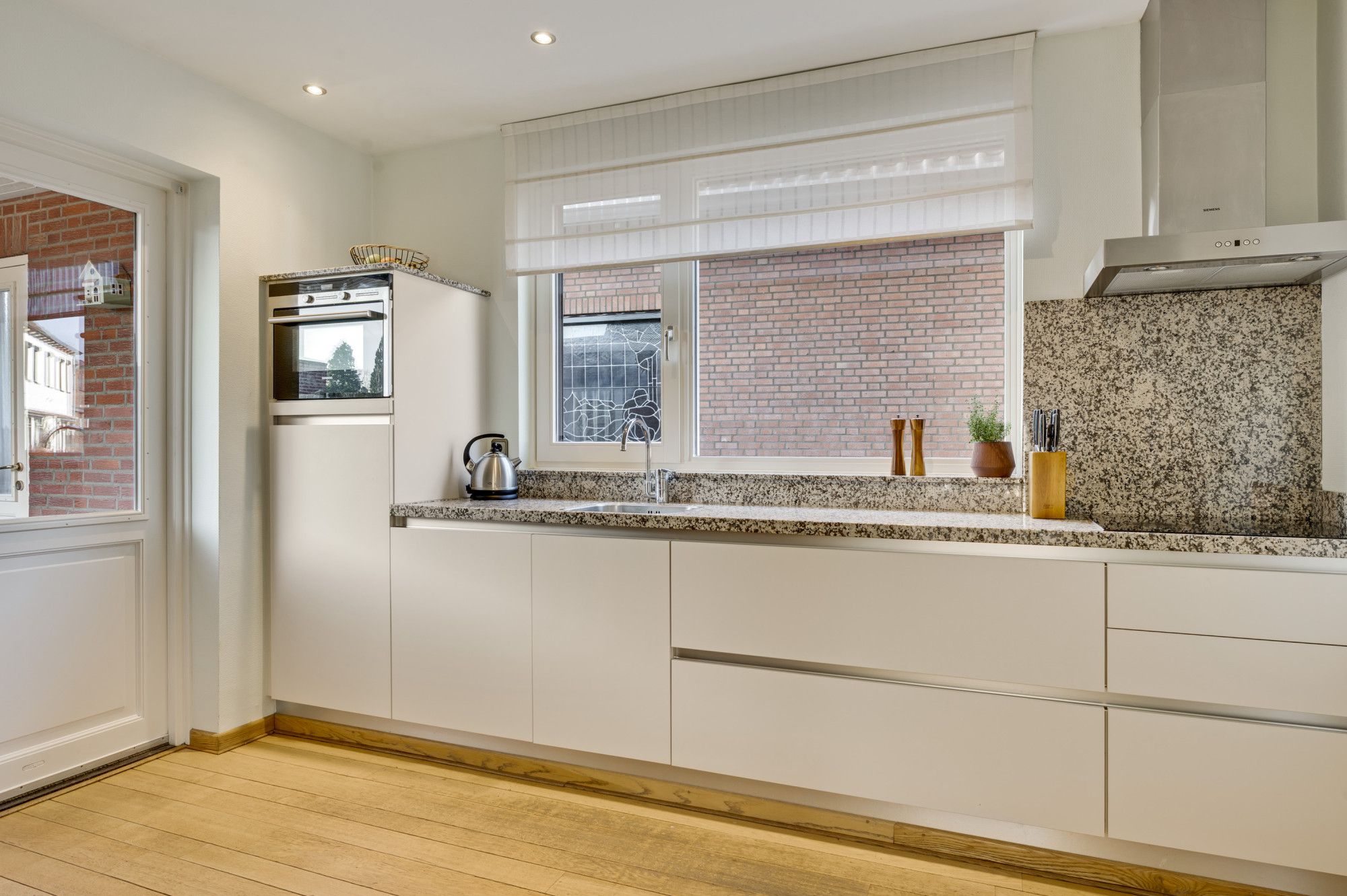 De woning biedt onder meer een sfeervolle, zonnige woonkamer met massief eiken parketvloer en schouwpartij, een comfortabele woonkeuken, drie volwaardige slaapkamers, een moderne badkamer en een ruime tweede verdieping met volop mogelijkheden voor het realiseren van een extra slaapkamer. De royale garage, bereikbaar via een overdekte doorgang vanuit de woning, maakt het geheel extra praktisch en multifunctioneel.