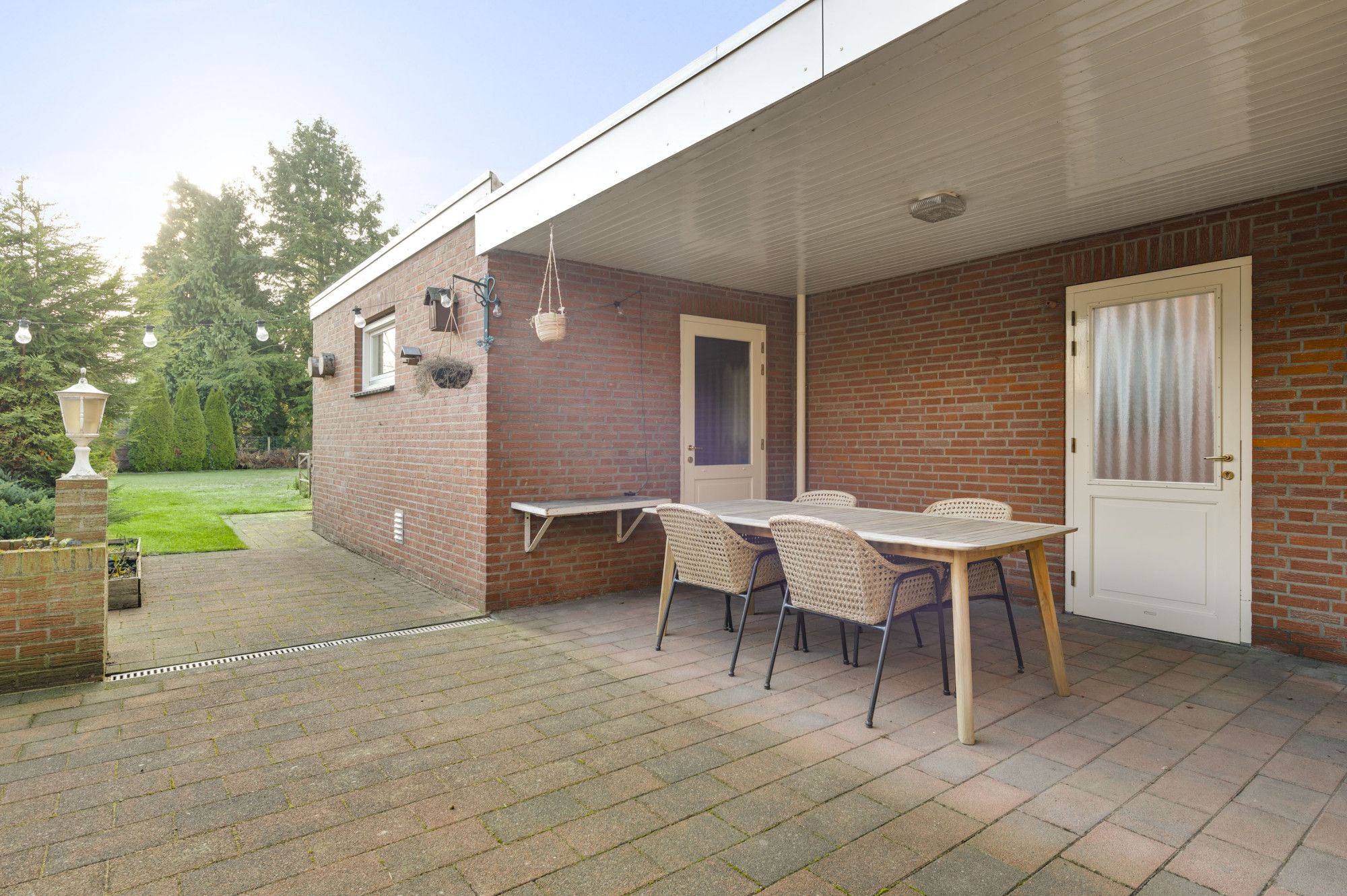 De fijne en diepe achtertuin is een absoluut pluspunt van deze woning. Met een diepte van circa 28 meter, een ligging op het zuidoosten en een heerlijk vrij gevoel aan de achterzijde geniet u hier de hele dag van zon, rust en privacy. Het terras is deels overdekt, waardoor u hier al vroeg in het voorjaar en tot laat in het najaar heerlijk buiten kunt zitten. Daarnaast is er een zonneluifel aanwezig. De tuin is tevens via de oprit bereikbaar, wat extra praktisch is. De royale garage is bereikbaar via de ruime oprit en beschikt over spouwmuren, verwarming, aansluitingen voor witgoed, een spoelbak en een elektrische sectionaalpoort. Een ideale ruimte voor hobby, opslag, werk aan huis of het stallen van meerdere voertuigen. Achter de garage bevindt zich bovendien nog een berging.