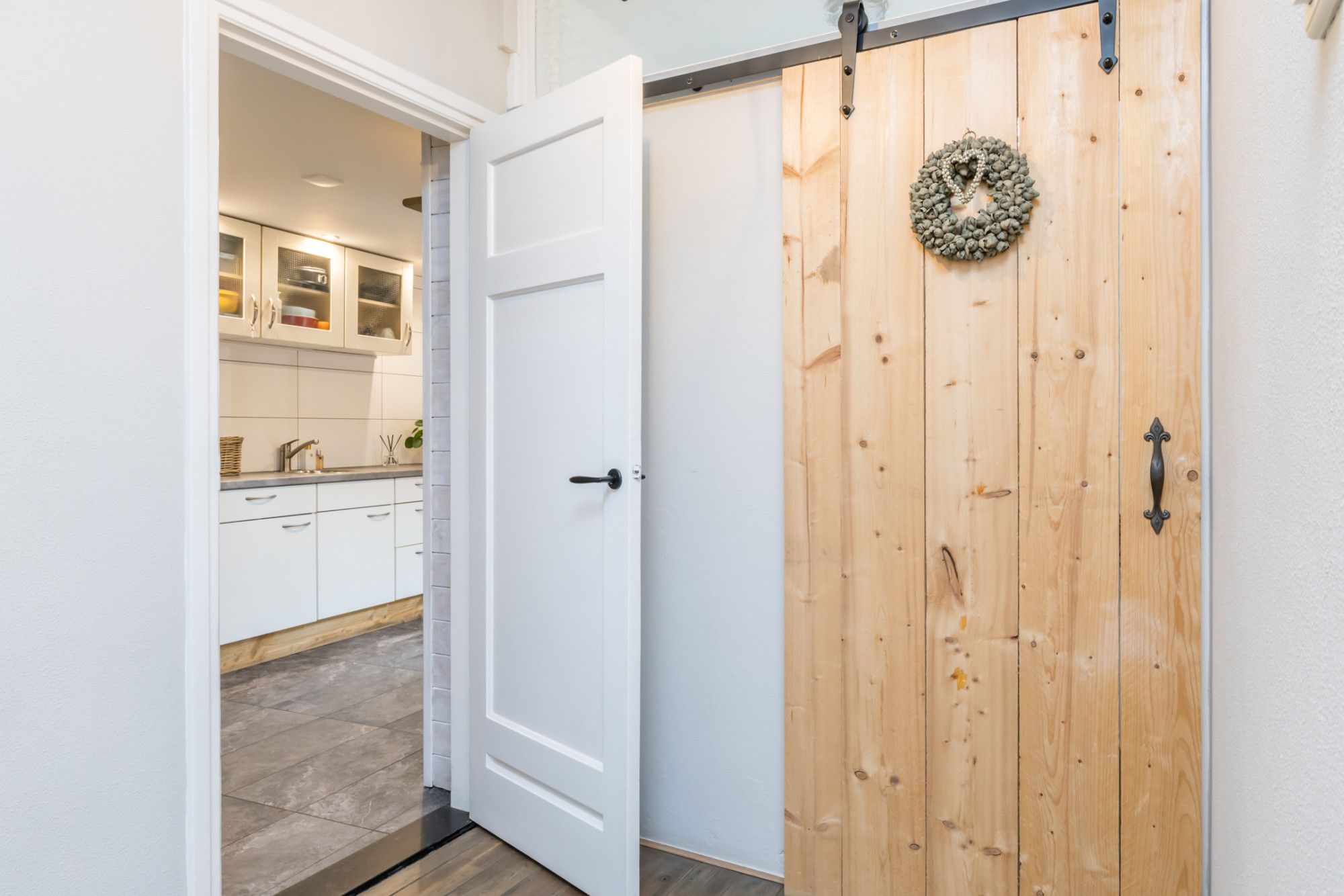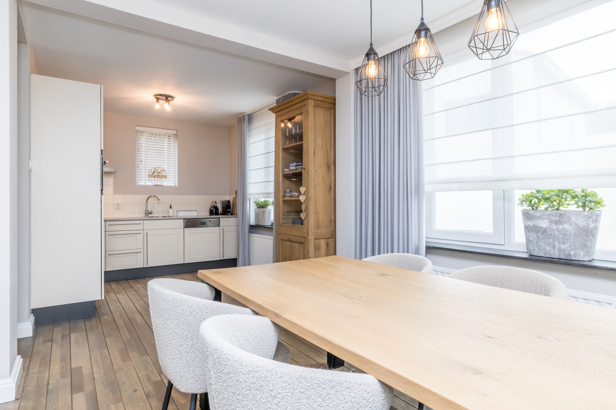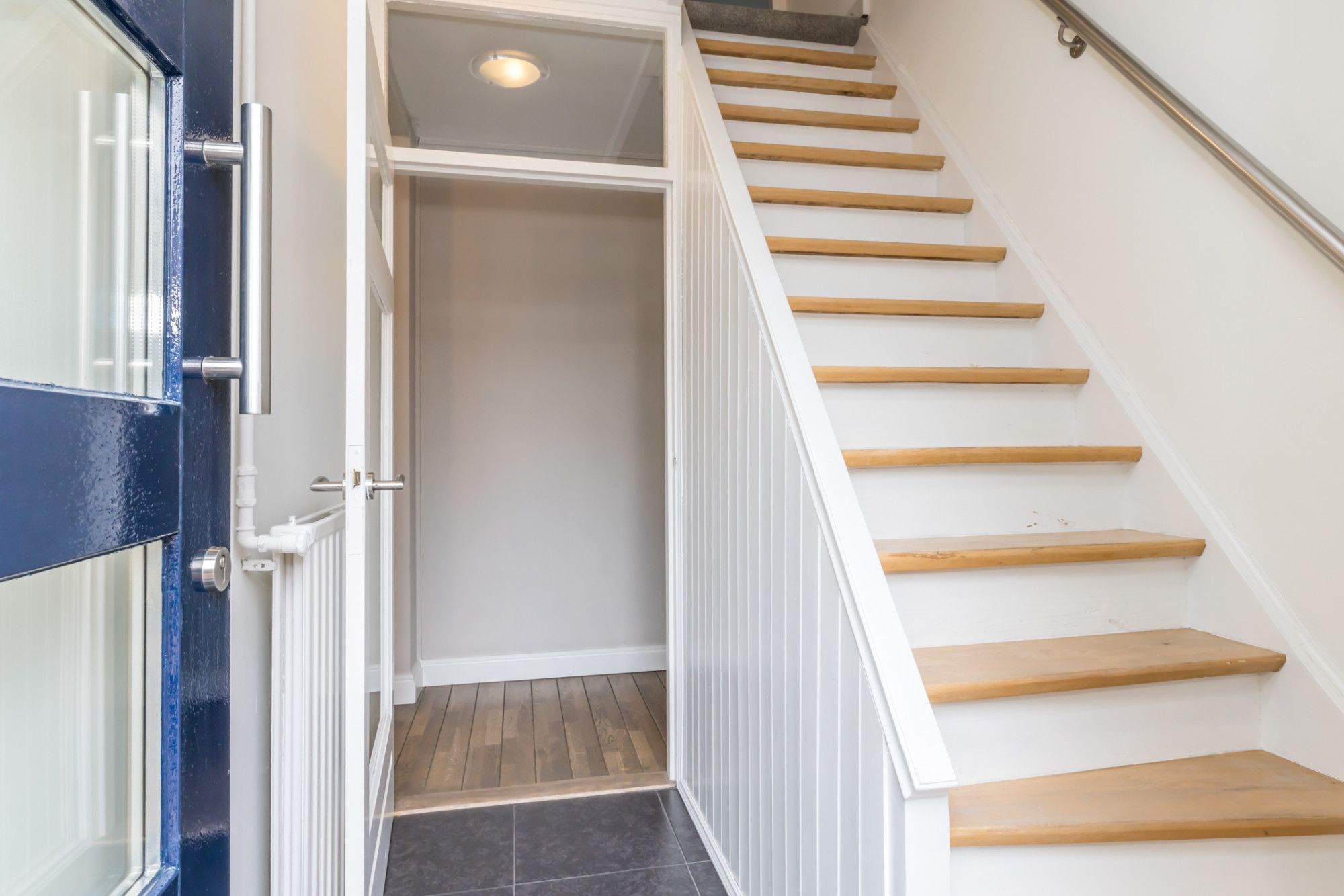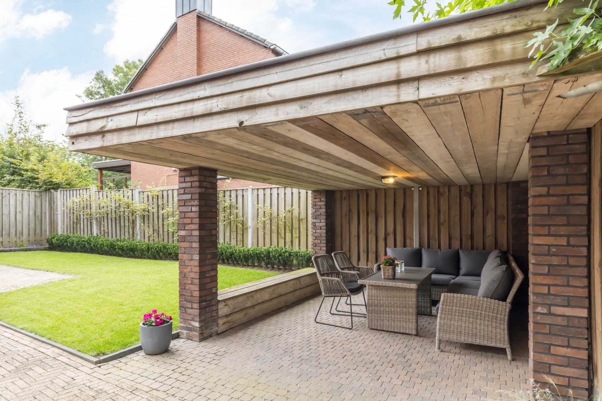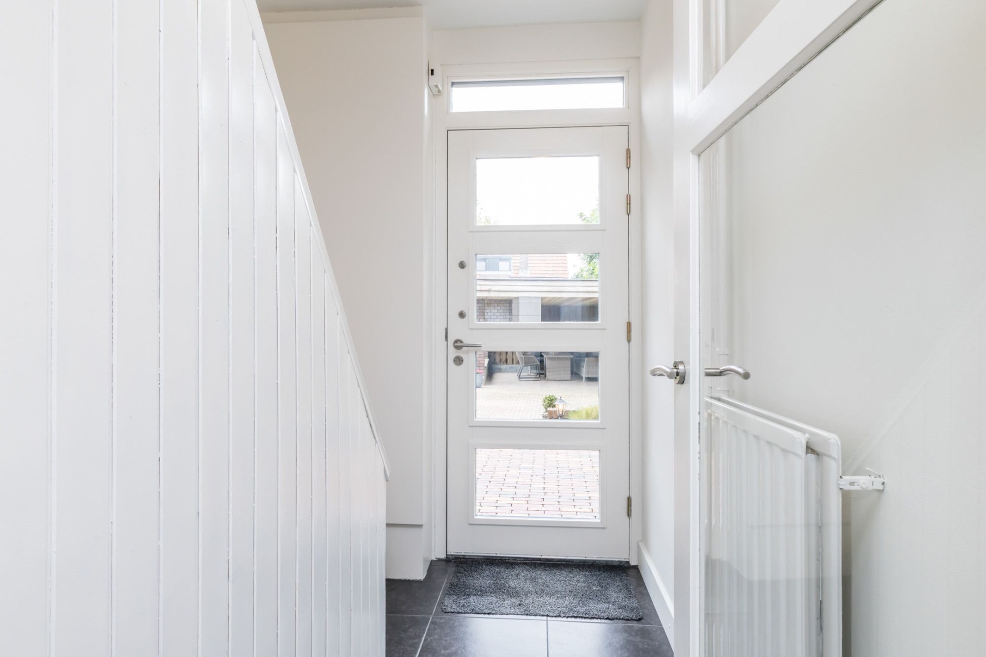 Via een poortje te bereiken voordeur. Entree. Hal met moderne meterkast, trappartij en toegang naar de woonkamer. De gezellige woonkamer is voorzien van een fraaie parketvloer en een open keuken. De keuken verkeert in een goede staat en is uitgevoerd met een apothekerskast, diverse ladekasten en de volgende inbouwapparatuur: vaatwasser, koelkast, combi-oven en RVS schouwkap. Vanuit de woonkamer toegang naar de toiletruimte met houten schuifdeur. Tevens via de woonkamer toegang naar de bijkeuken met voldoende bergruimte, aansluitpunten voor de wasapparatuur en deur naar de tuin. De tuin is fraai aangelegd, ligt zeer gunstig ten opzichte van de zon en is aangelegd met een looppad, oprit, terras en terrasoverkapping. De tuin is omheind en geniet veel privacy. In de tuin bevindt zich een dubbele garage met elektrische sectionaal poorten. De garage is uitgevoerd in spouwmuren en voorzien van een zolderberging. Er is tevens voldoende parkeergelegenheid op de oprit aanwezig.