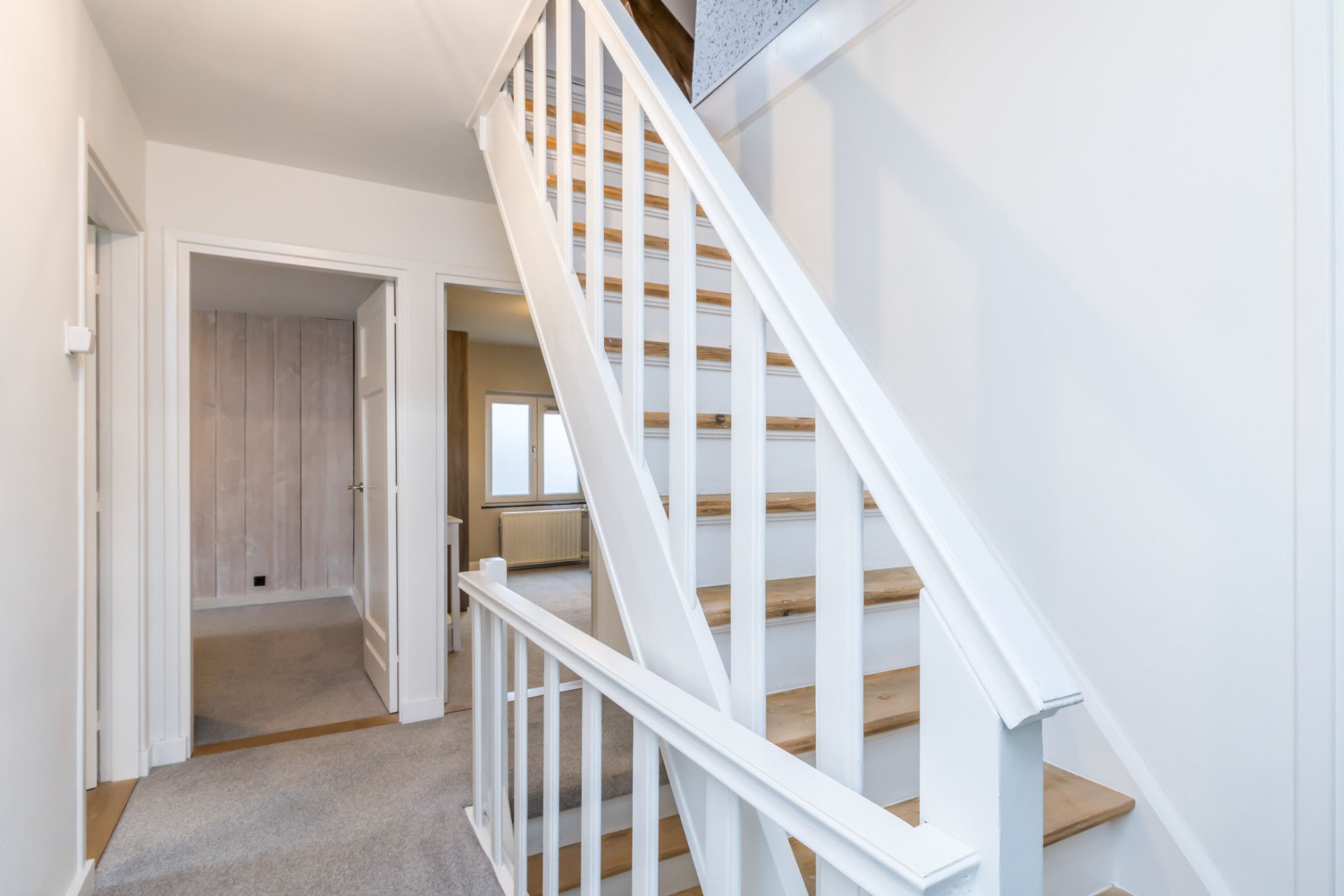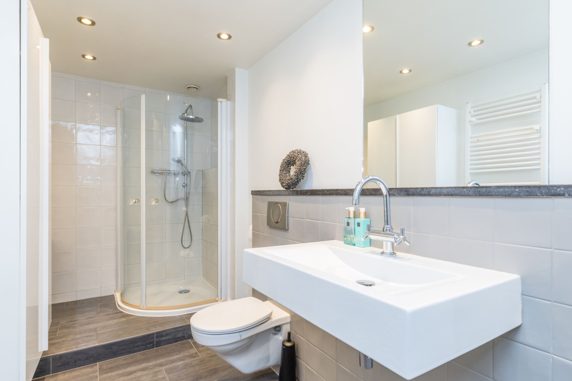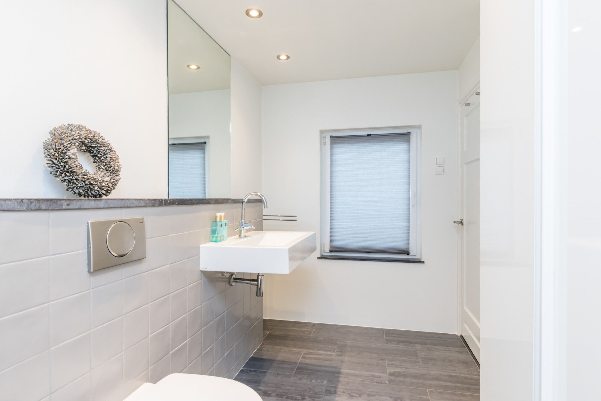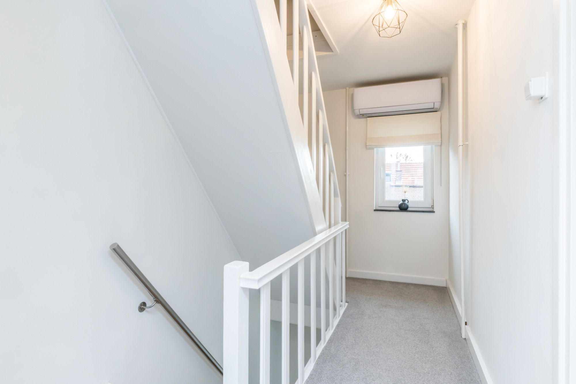 Op de eerste verdieping bevinden zich drie slaapkamers en de badkamer. De vloeren van de overloop en slaapkamers zijn voorzien van een mooie vloerbedekking. Het niveau van afwerking is, evenals in de rest van de woning, van goede kwaliteit. De badkamer met tegelvloer is uitgevoerd met een douchecabine, vaste wastafel, wandmeubel en zwevend toilet. Op de overloop is een airco installatie geïnstalleerd.