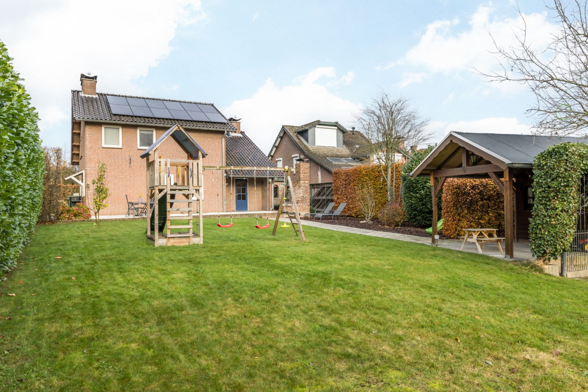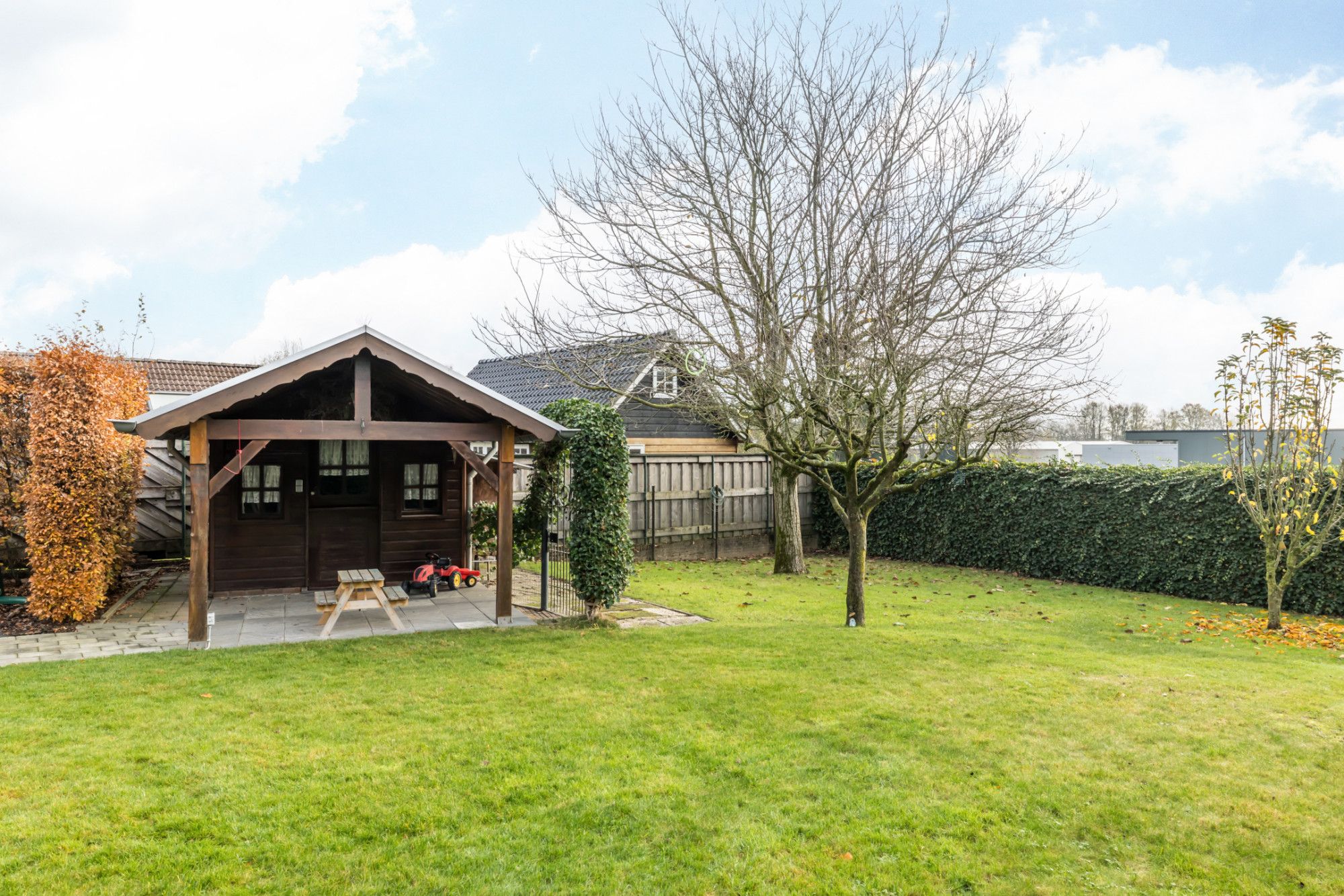 Goed onderhouden vrijstaand landhuis met ruime inpandige garage, eigen oprit, voortuin en royale achtertuin met tuinhuis.